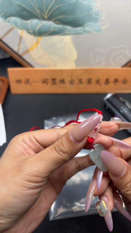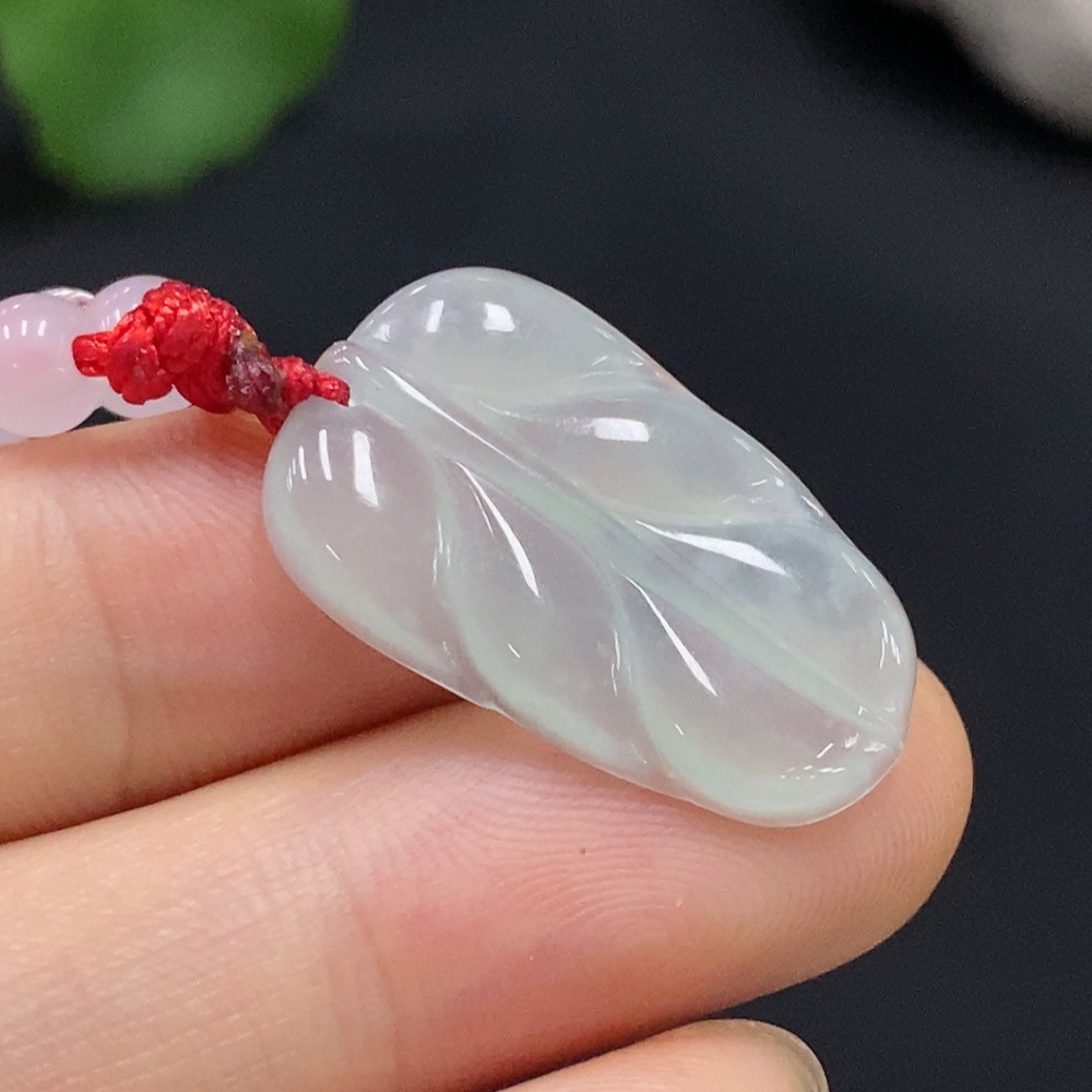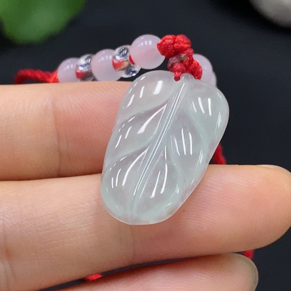 Jadeite Leaf Pendant Total Weight Approx. 4.52g (including rope weight)