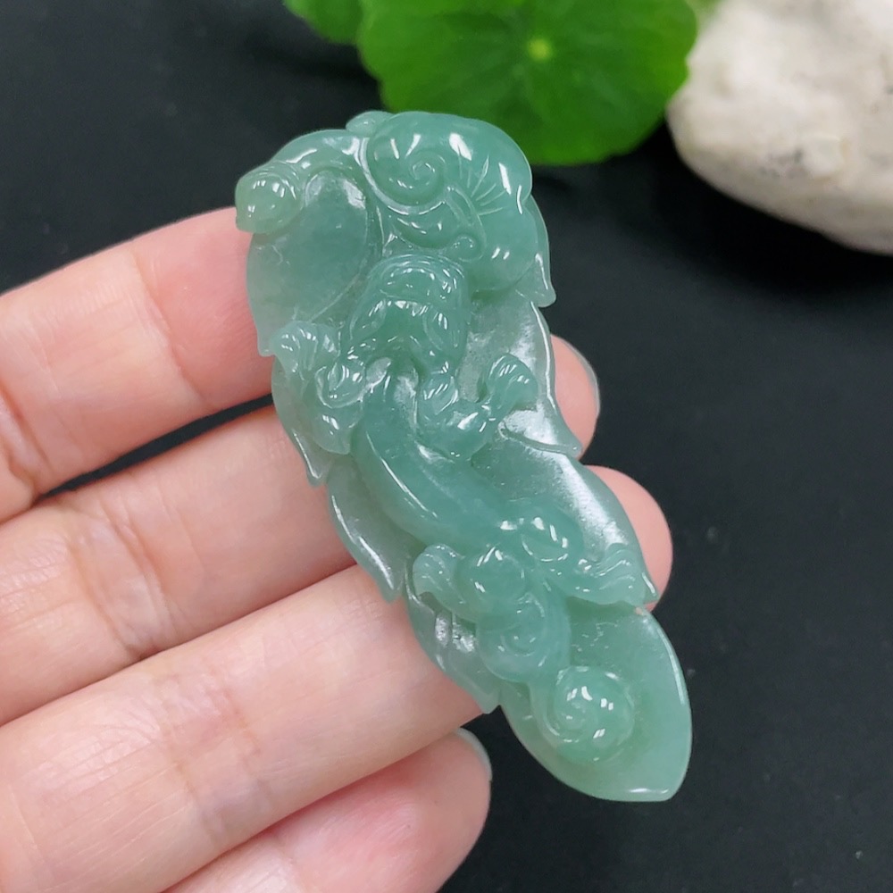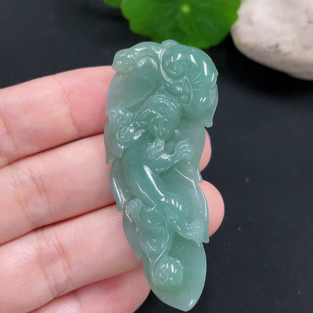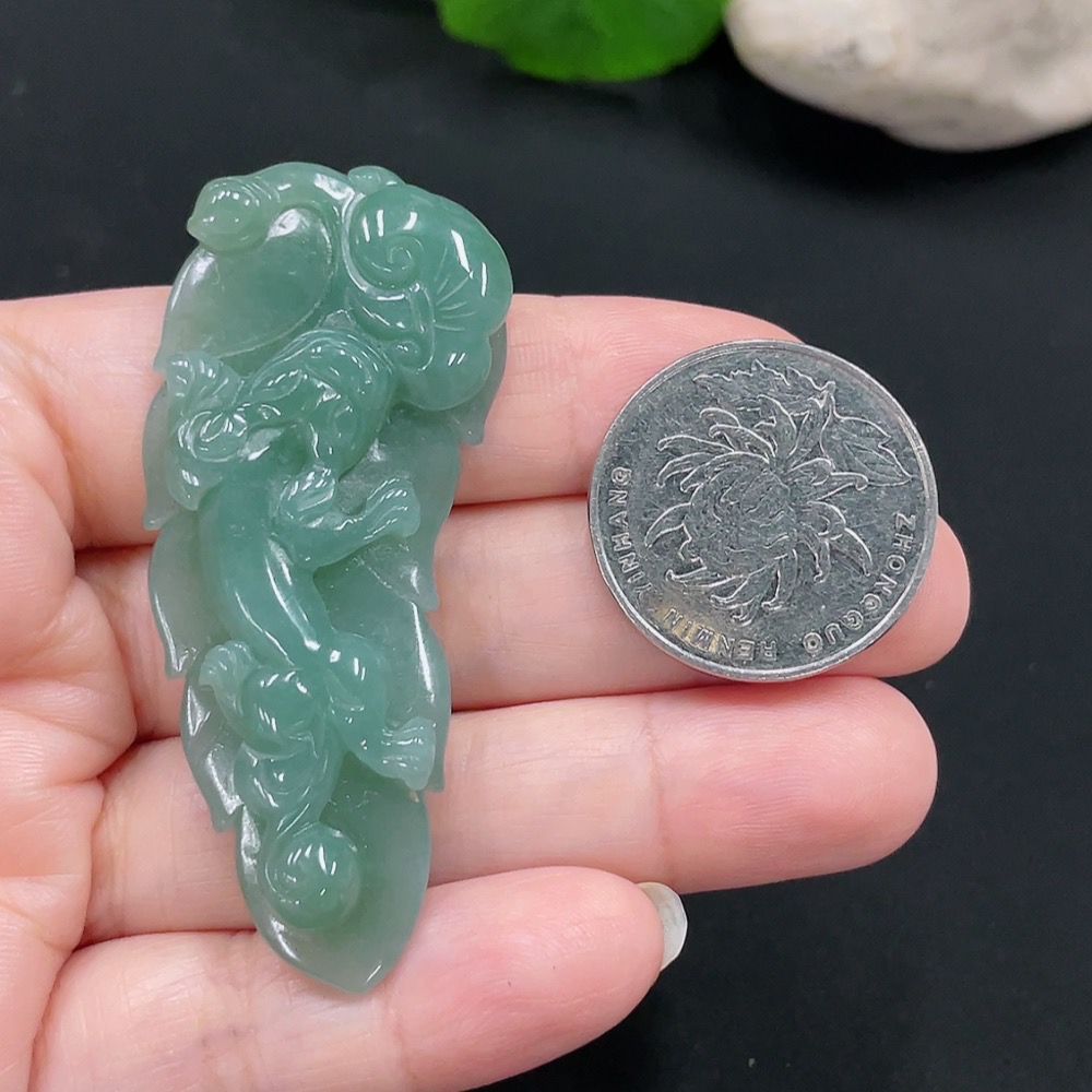 Jadeite Chi-Dragon Pendant, Total Weight Approx. 17.2g