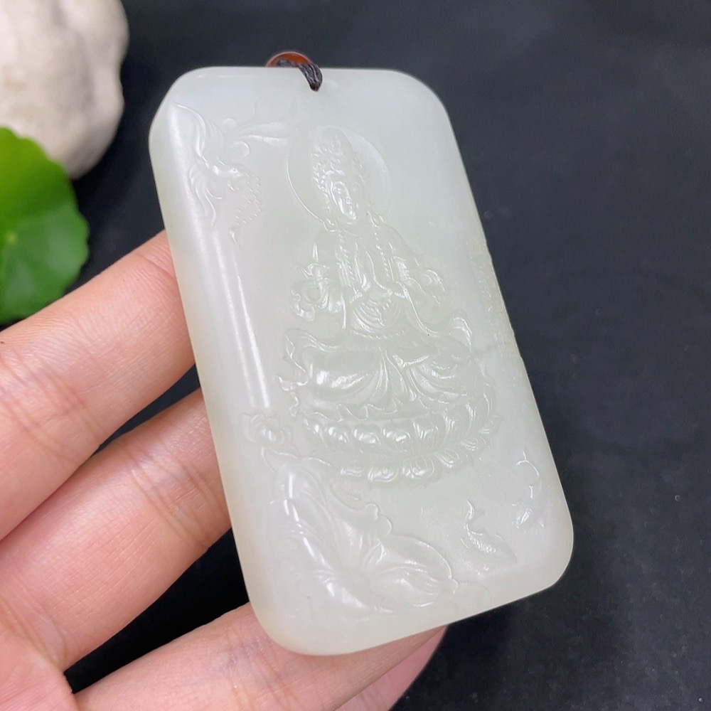 Hetian Jade Pendant, Guanyin, Total Weight (including rope) 108.3g