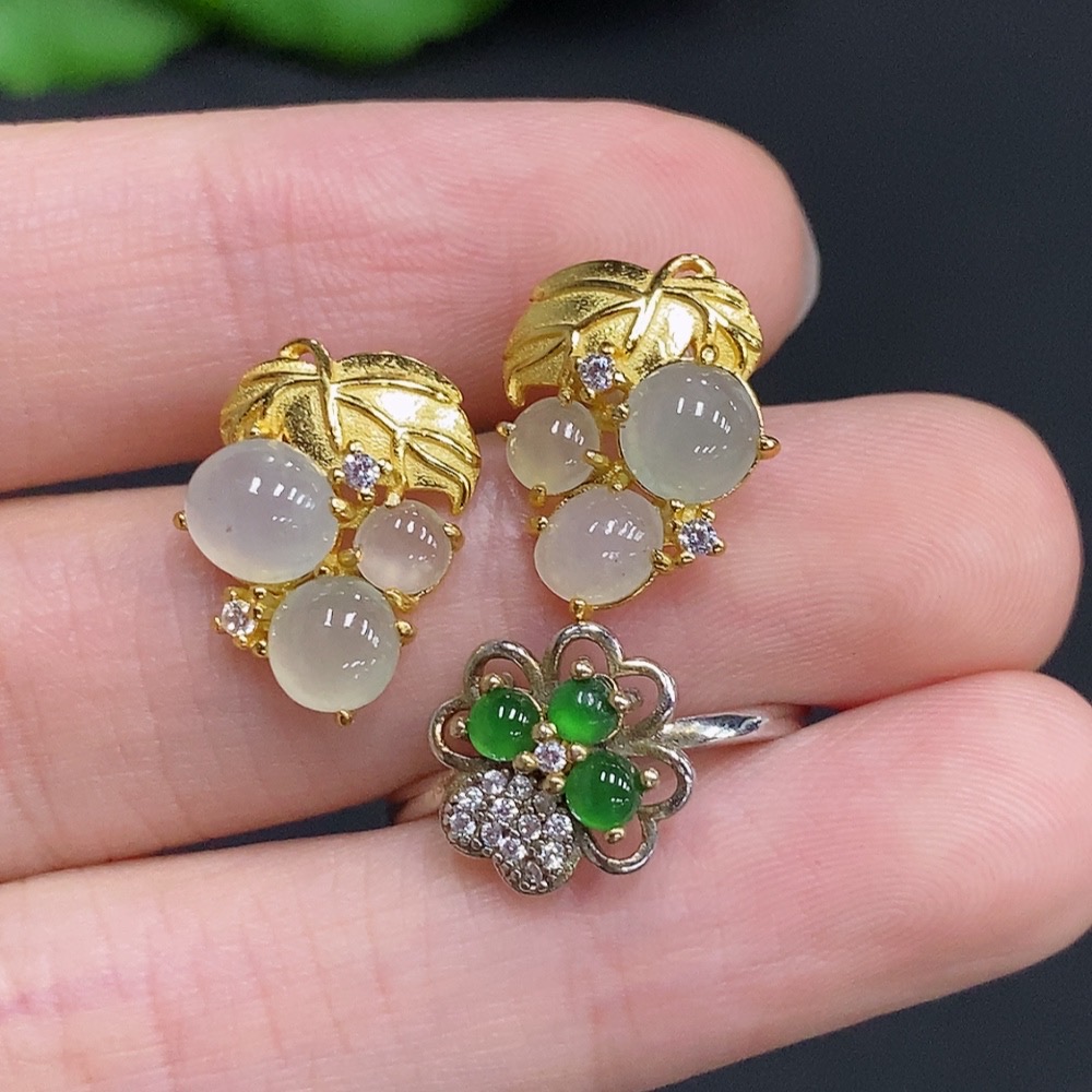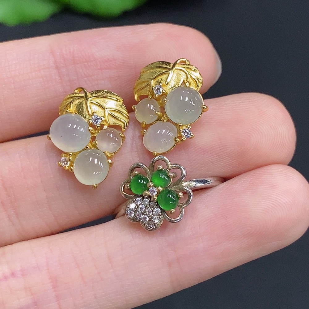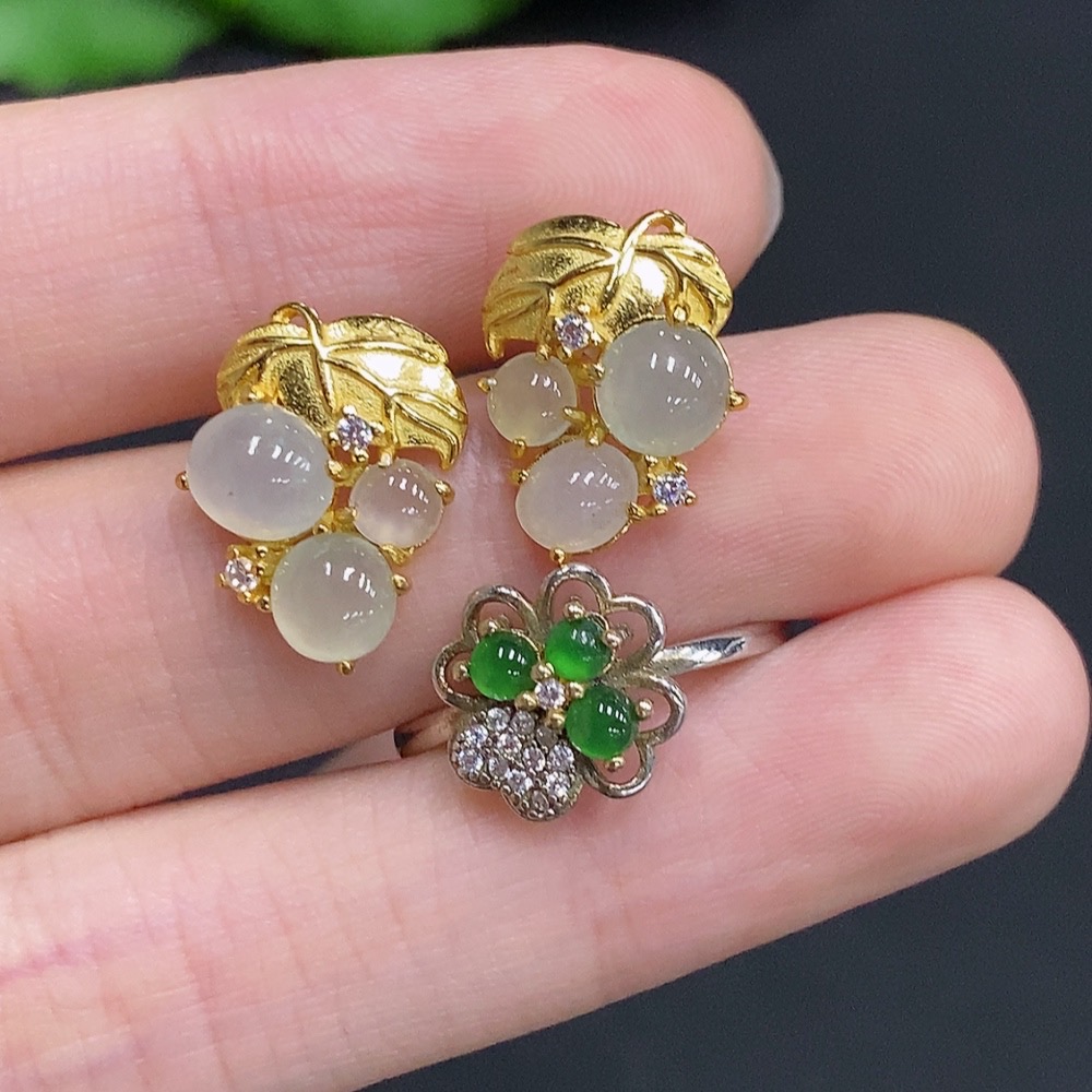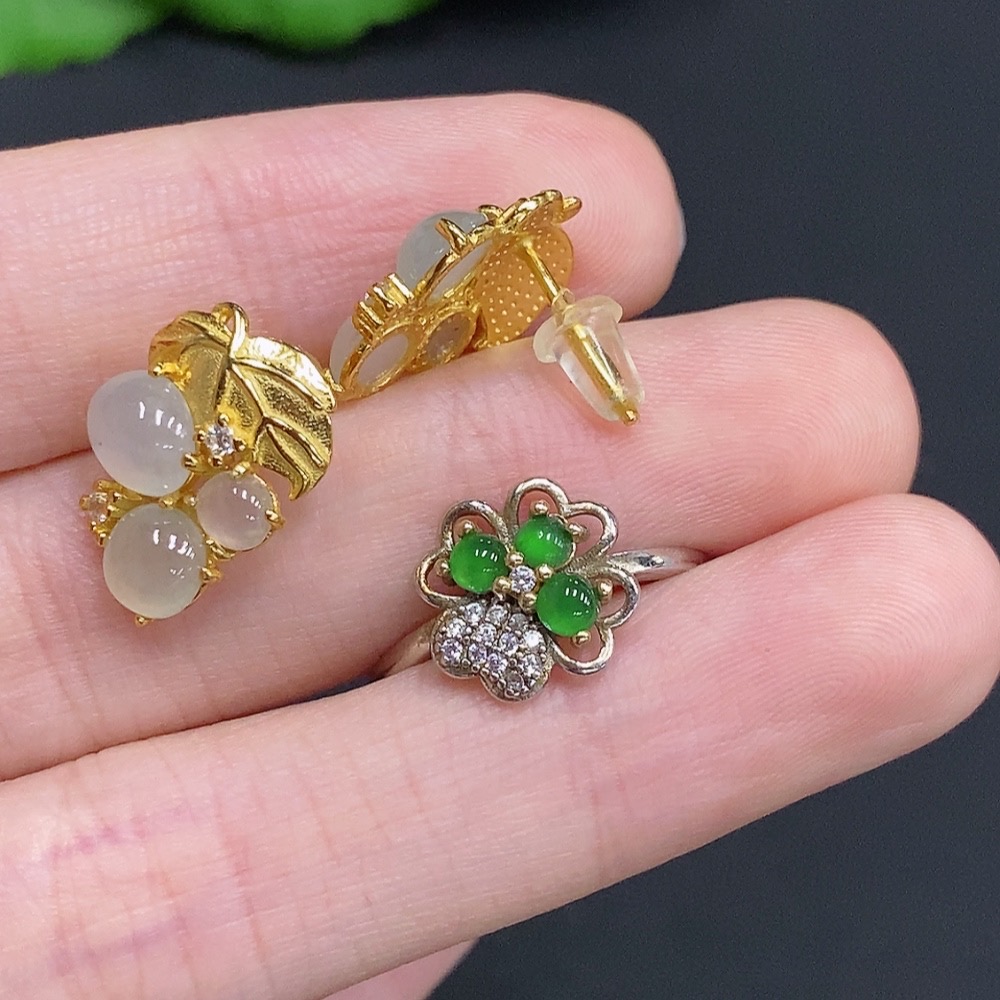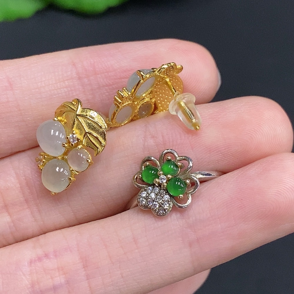 Jadeite Inlay Non-Gold Setting Adjustable Size