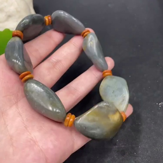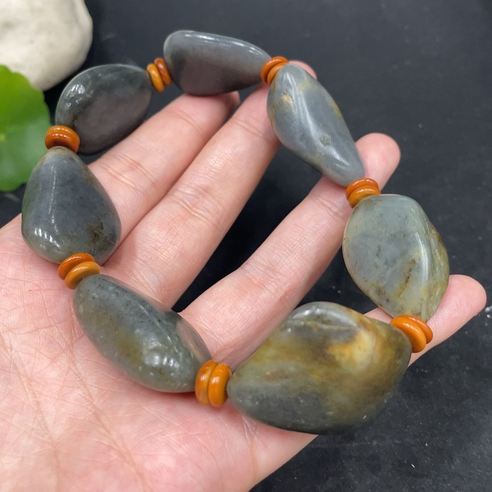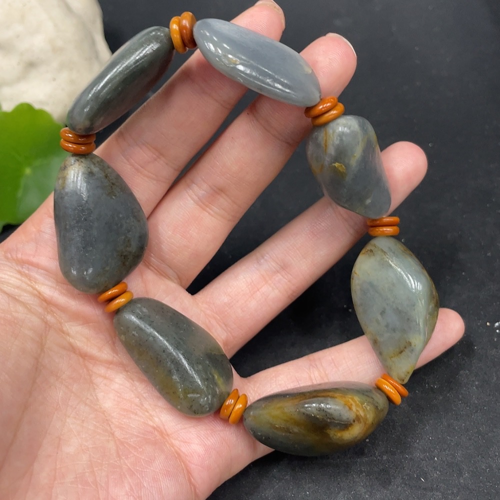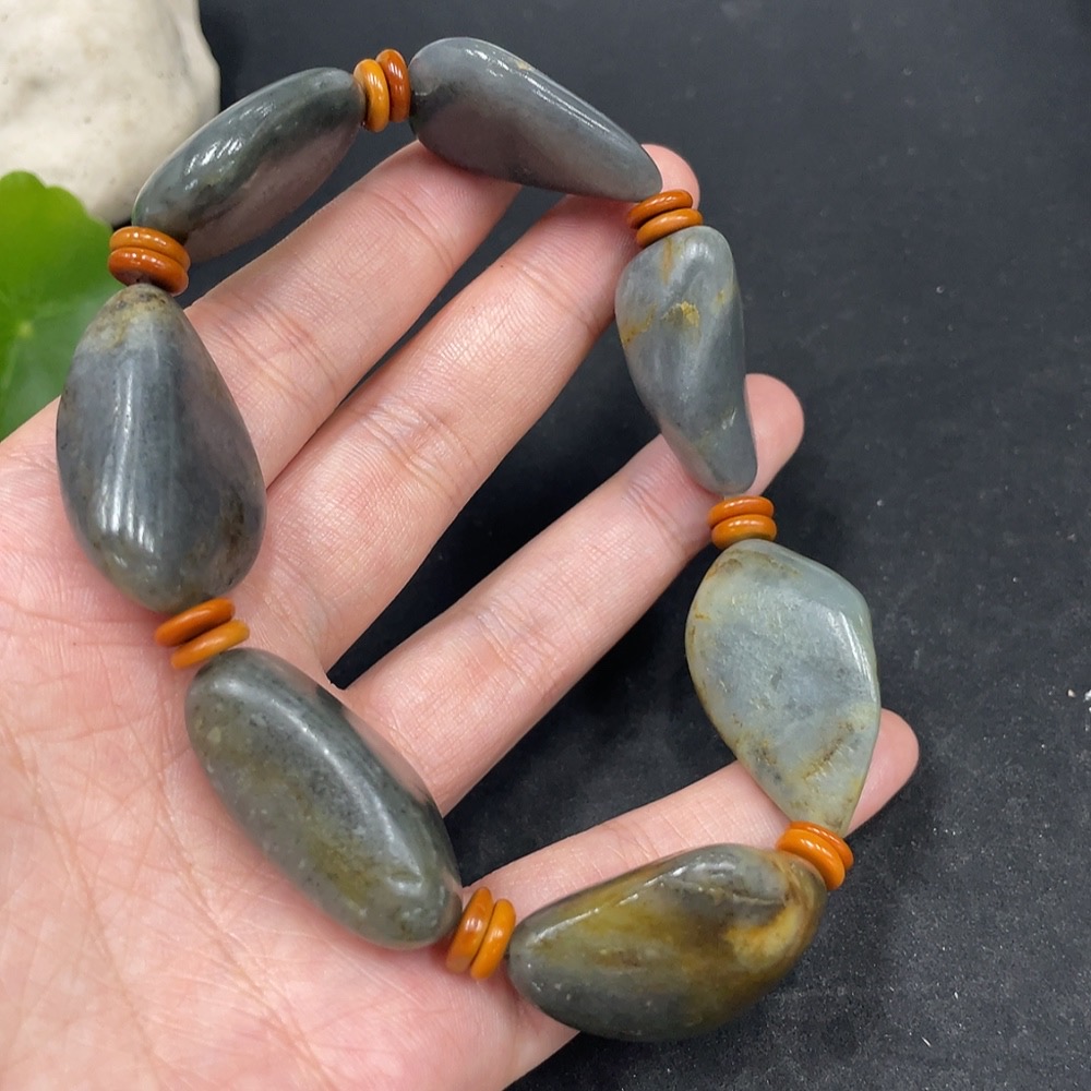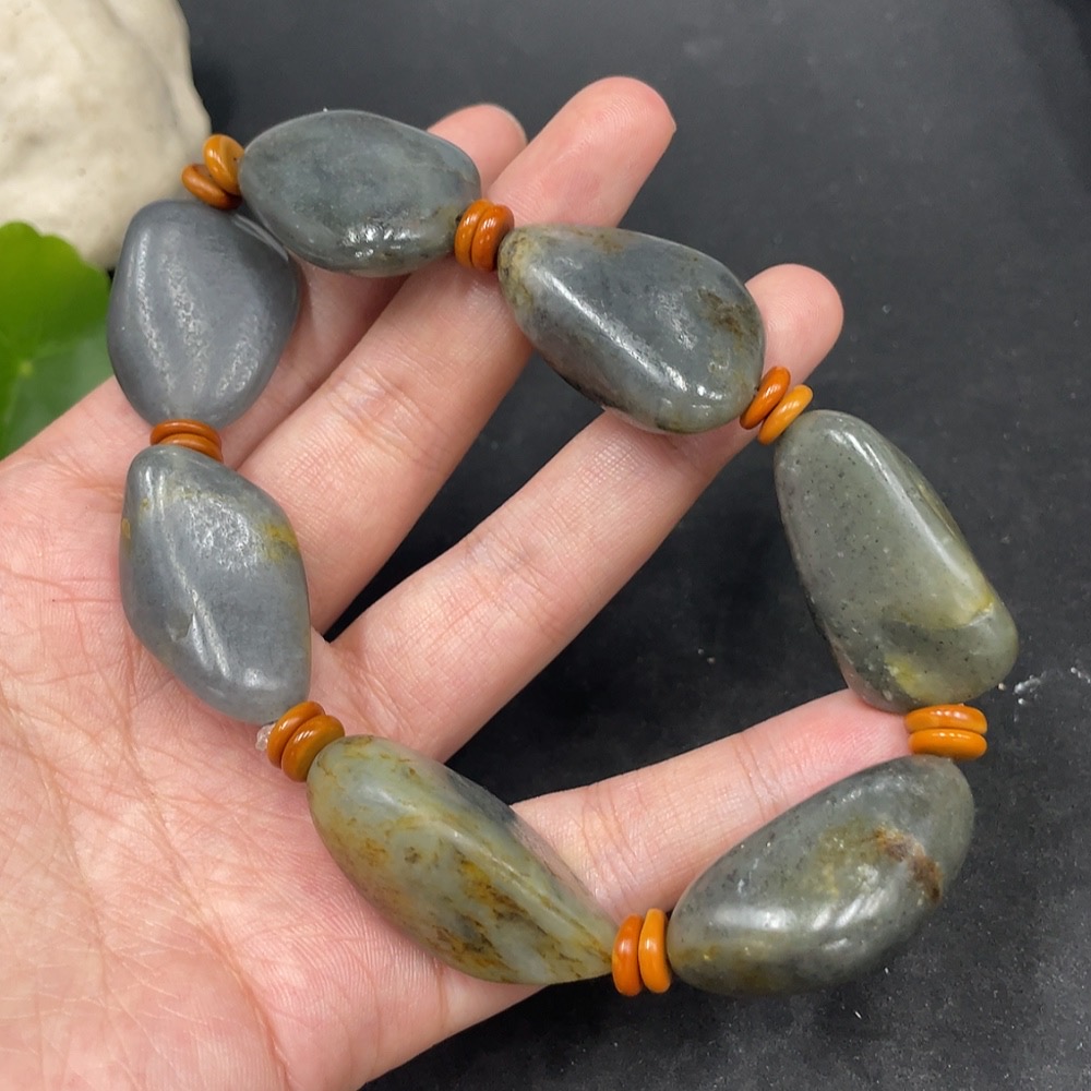 Hetian Jade Bracelet with Non-Hetian Jade Beads, Undetermined Skin Color Origin, Total Weight Approximately 93g