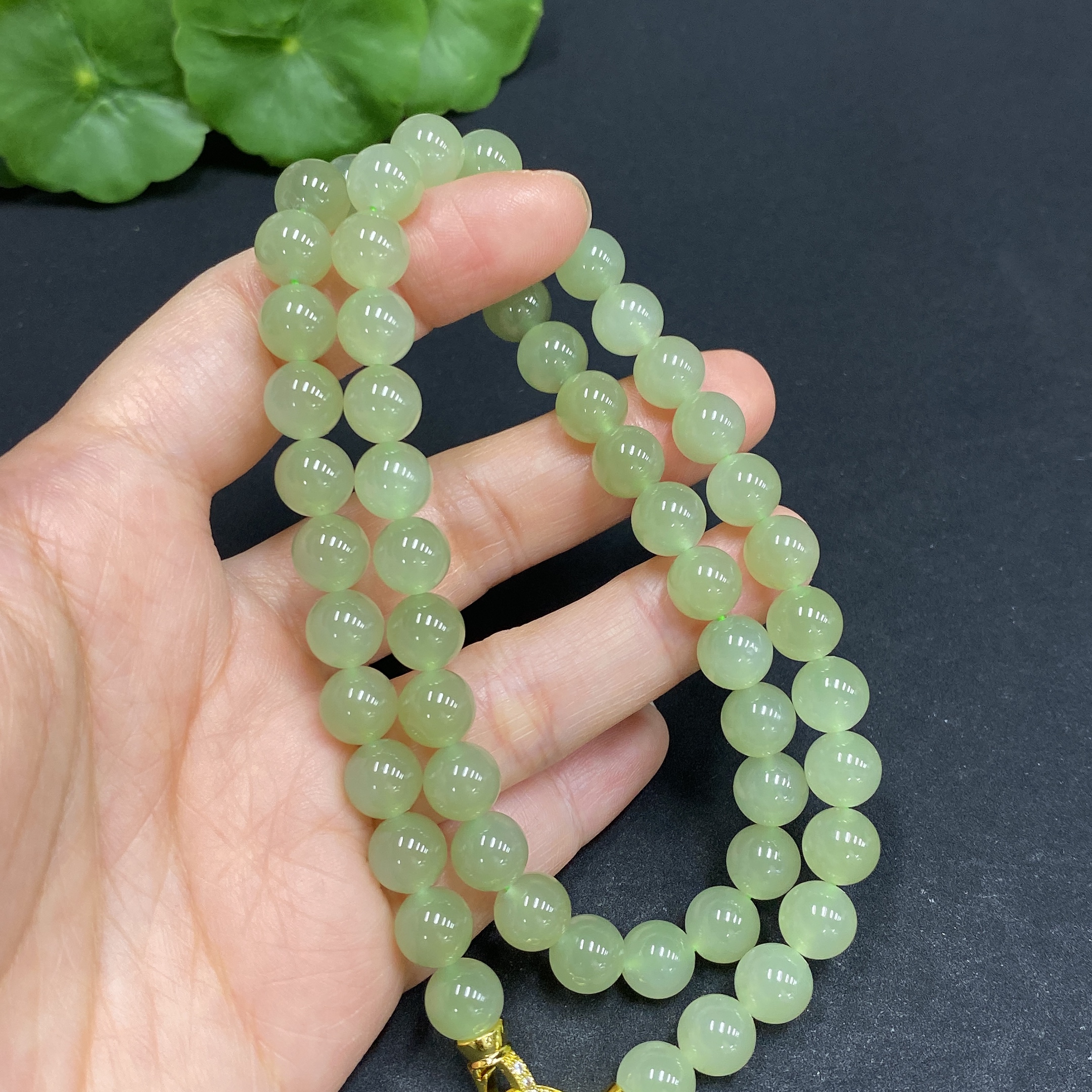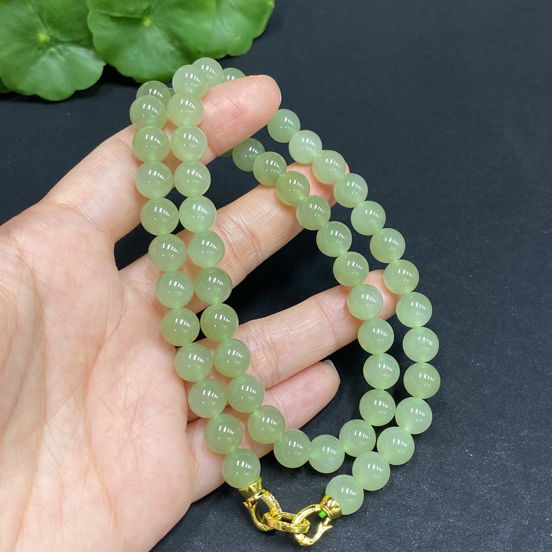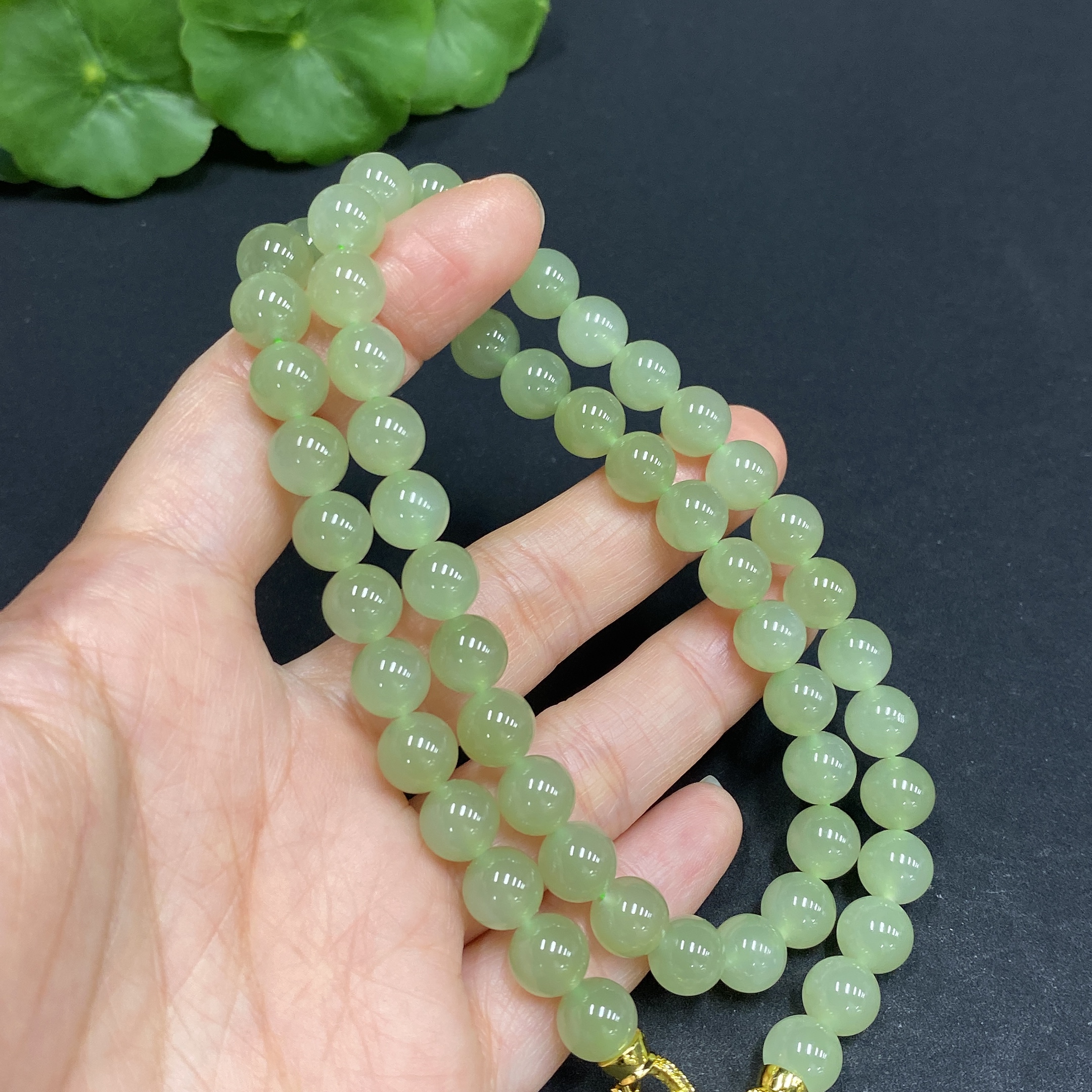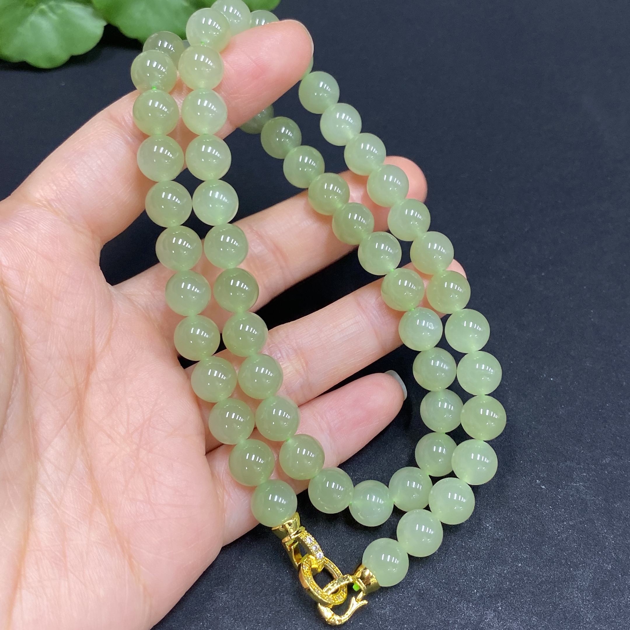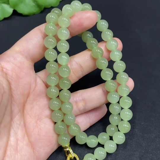 Hetian Jade Bead Necklace, Approx. 7.8mm, Non-Gold Inlaid, Total Weight Approx. 45.1g