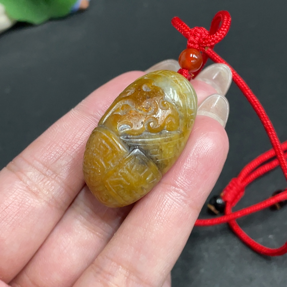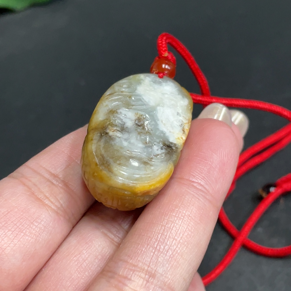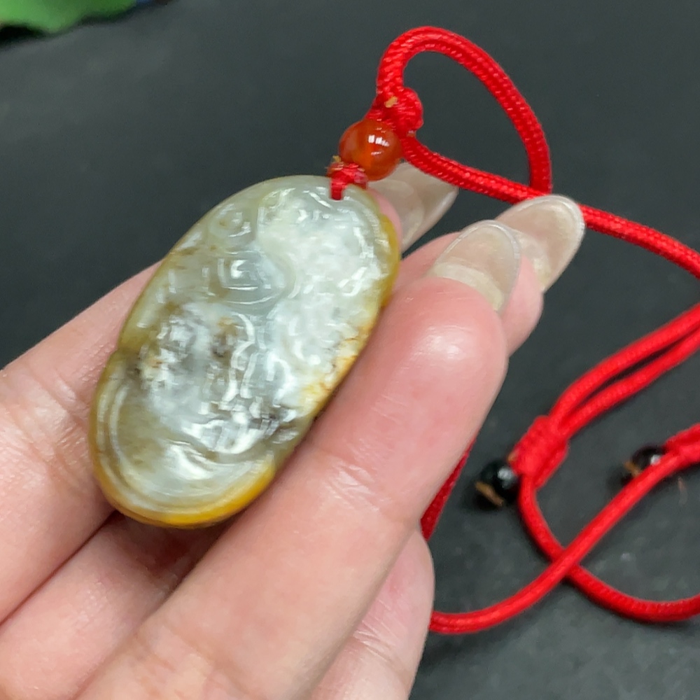 Hetian Jade Pendant, Antique-style Piece, Containing Other Mineral Components, Undetermined Skin Color Origin, Total Weight Approximately (Including Cord) 25.5g