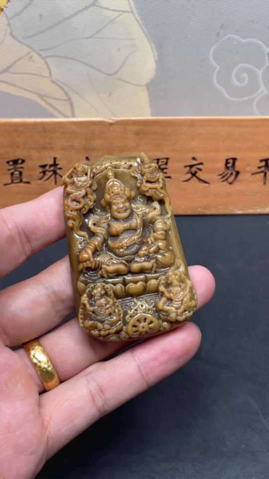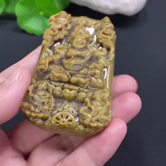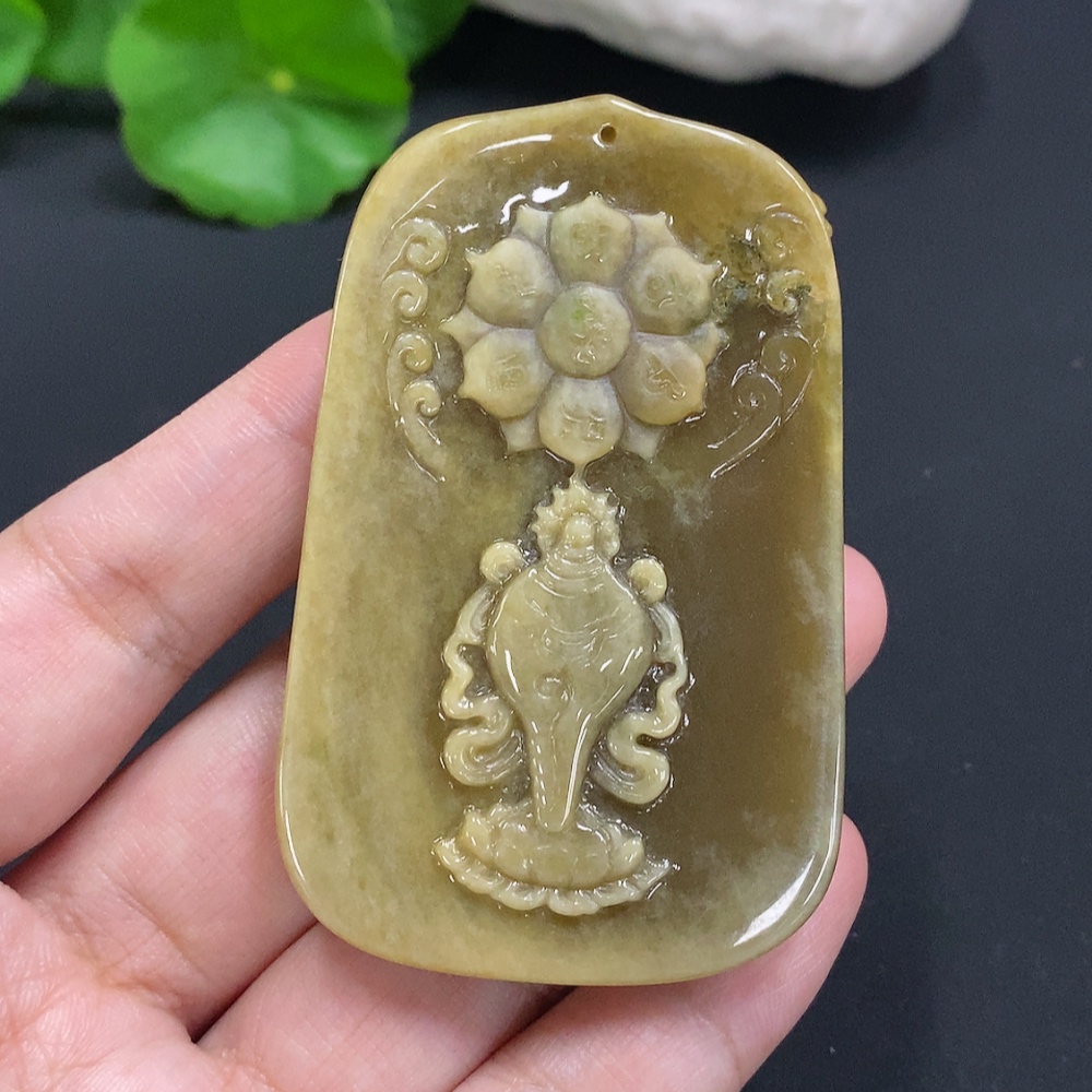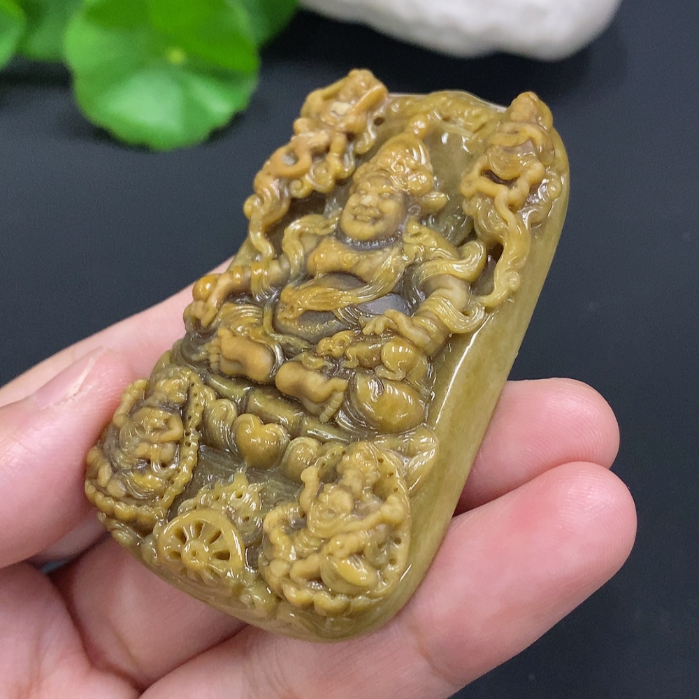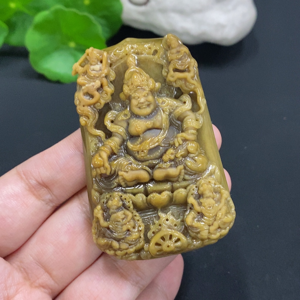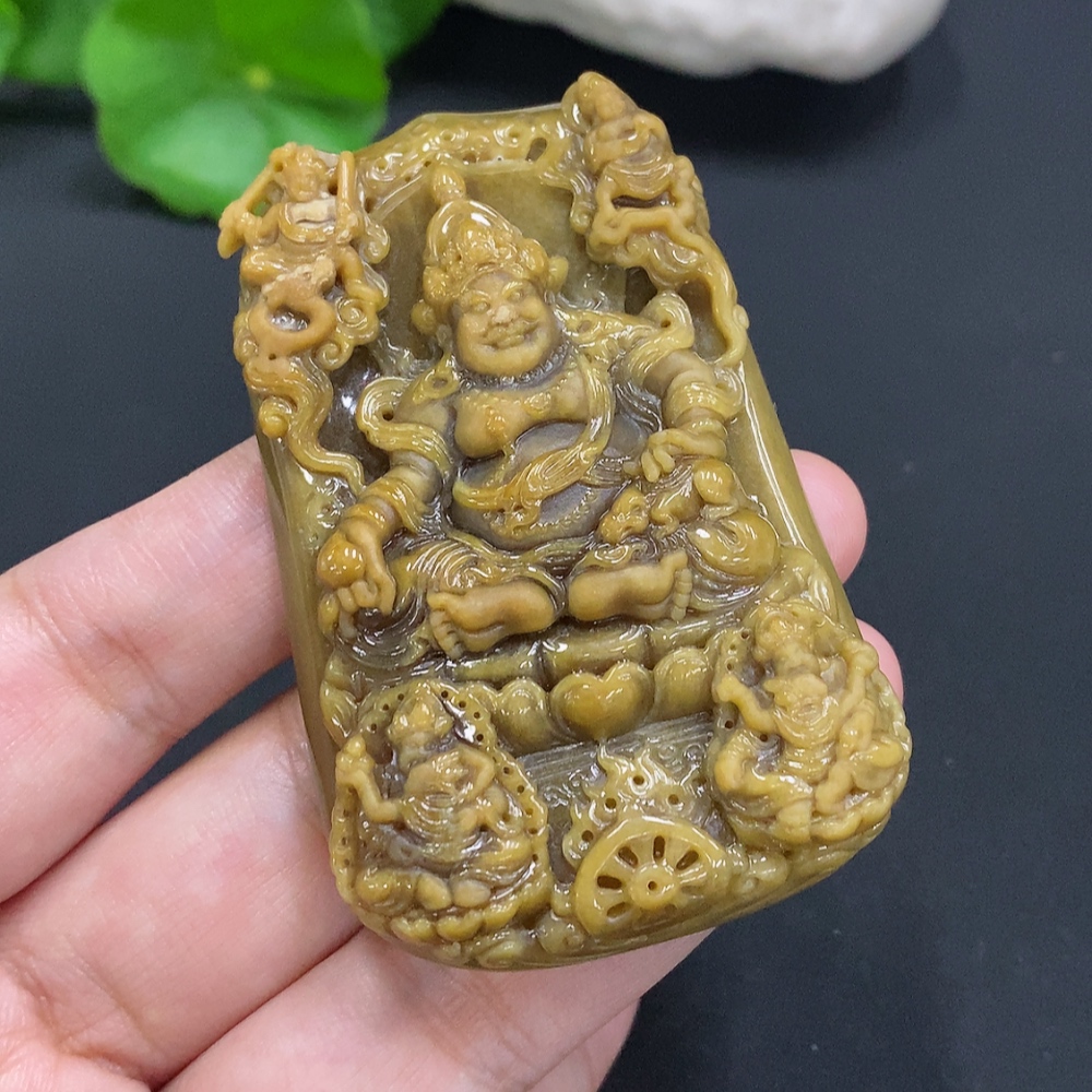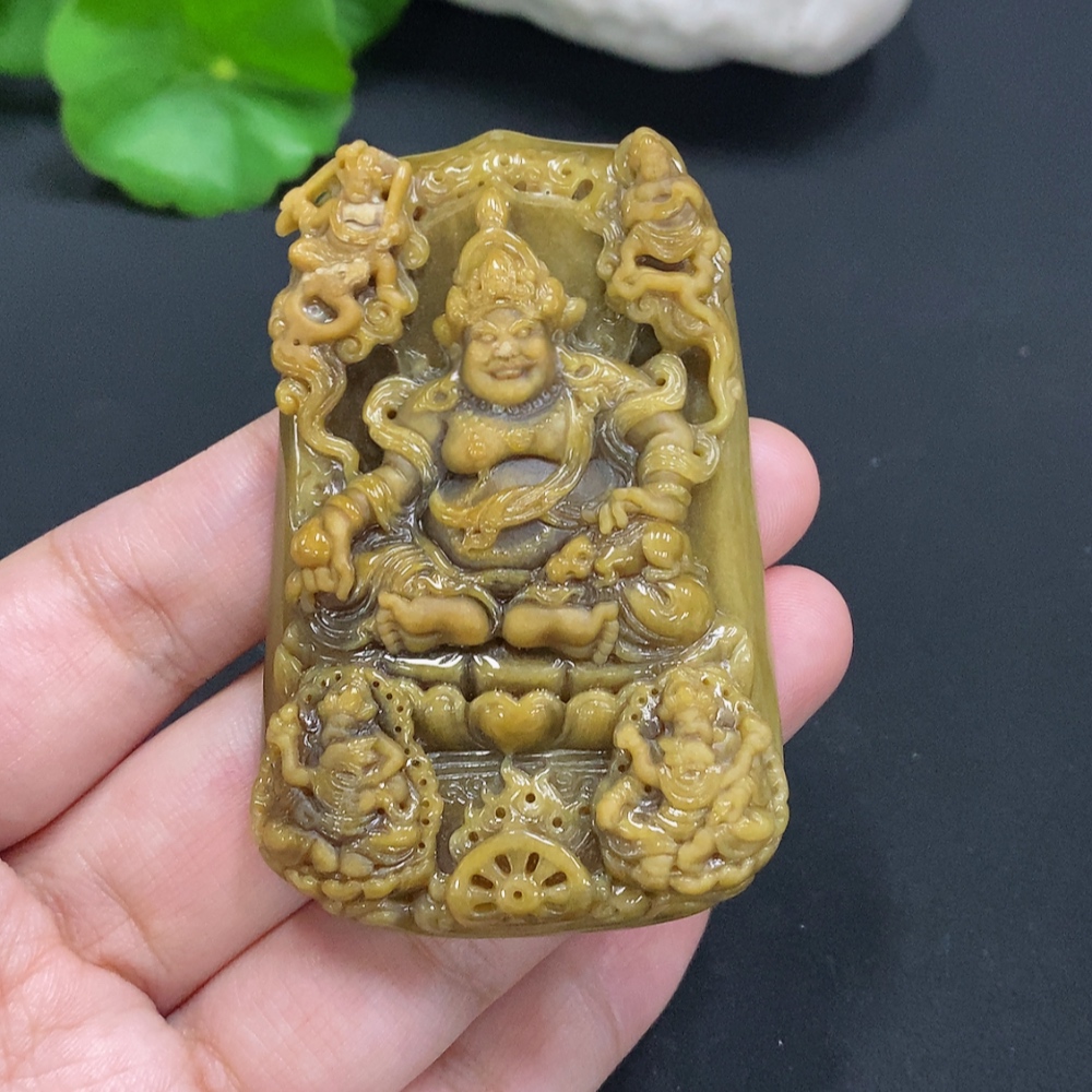 Jadeite Yellow Jambhala Pendant, total weight approx. 56.8g (color origin undetermined)