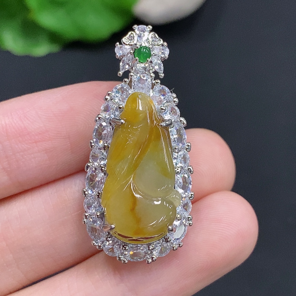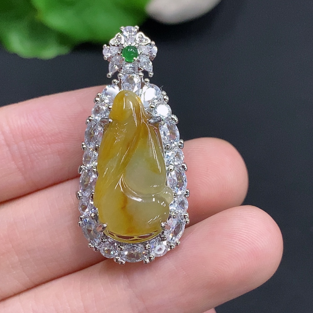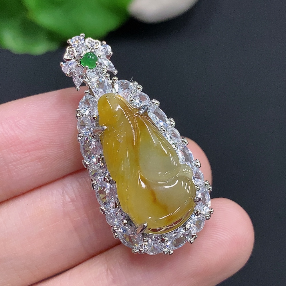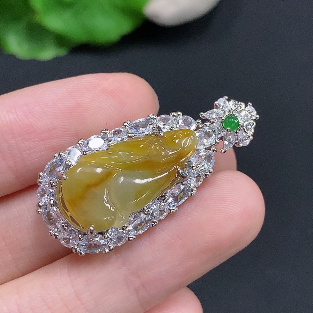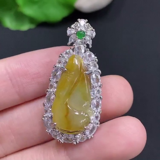 Jadeite inlaid pendant, non-gold setting, total weight approx. 6.5g (color origin undetermined)