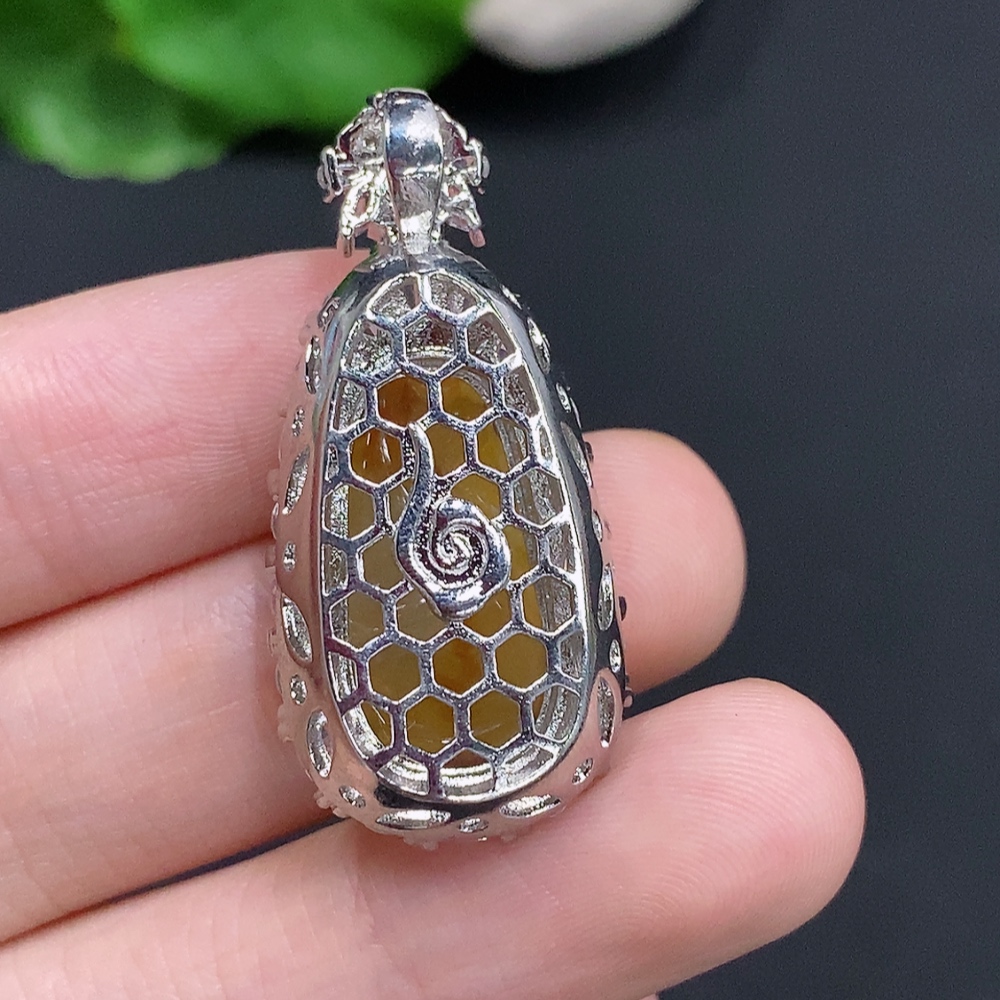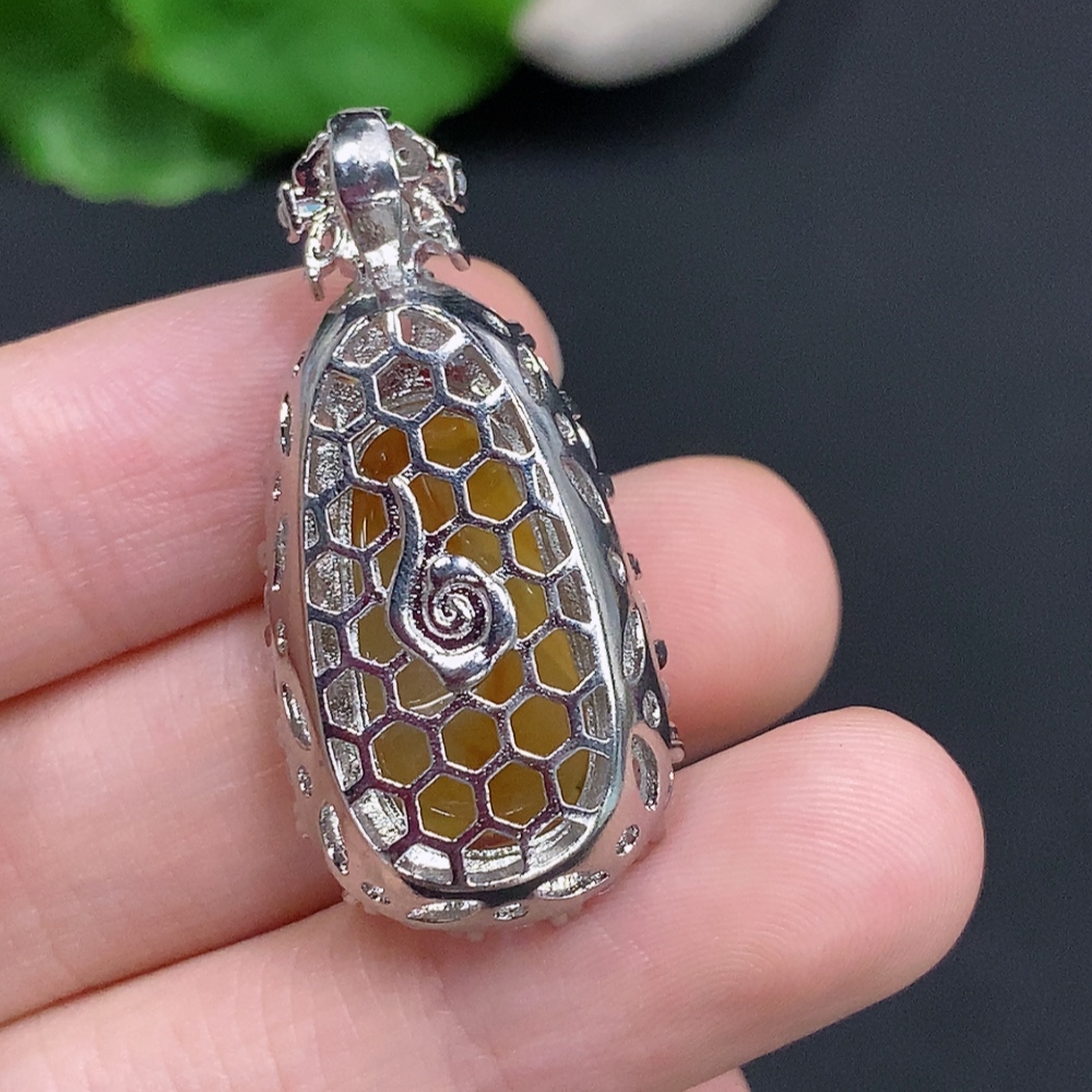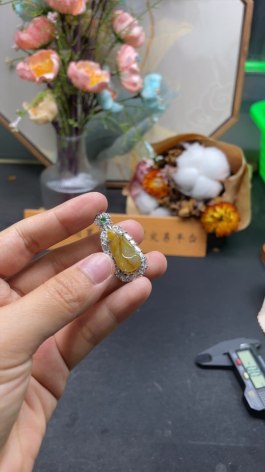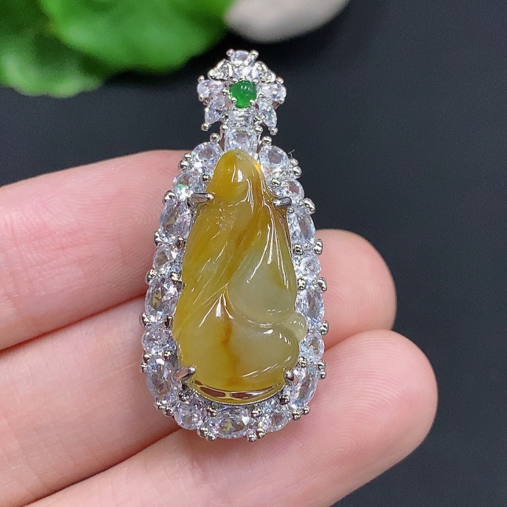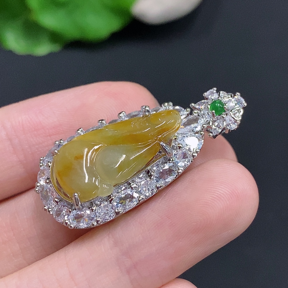 Jadeite inlaid pendant, non-gold setting, total weight approx. 6.5g (color origin undetermined)