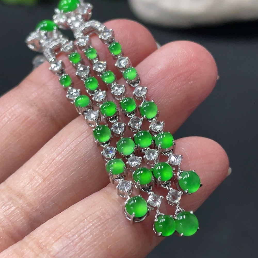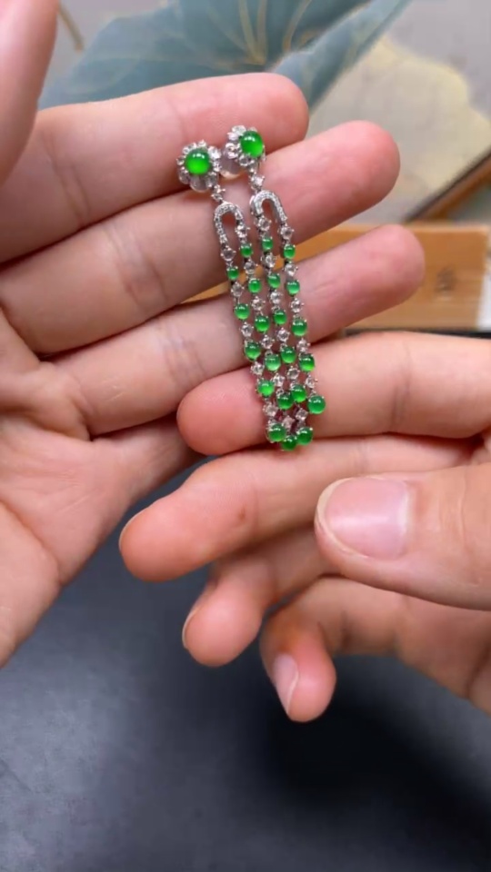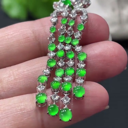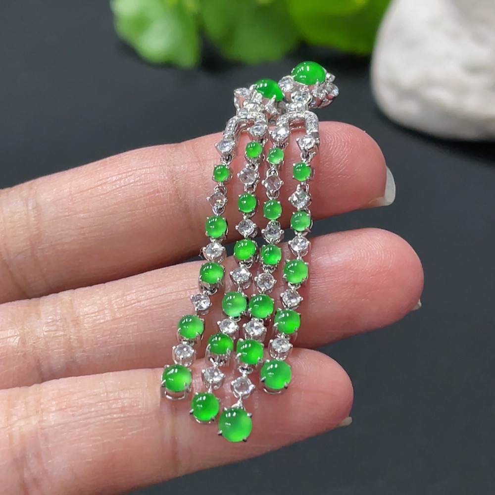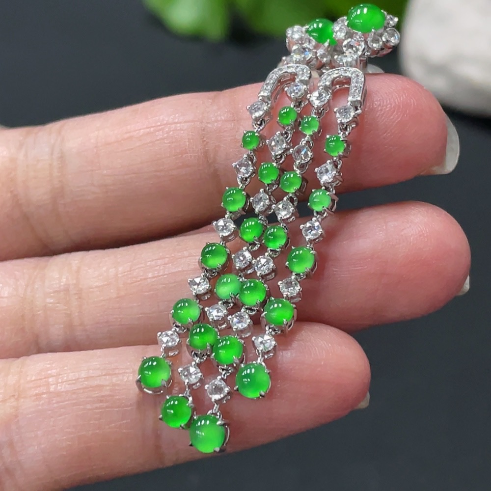A pair of Jadeite cabochon earrings set in 18k gold with diamond accents, total weight approximately 6.63g