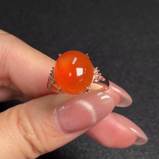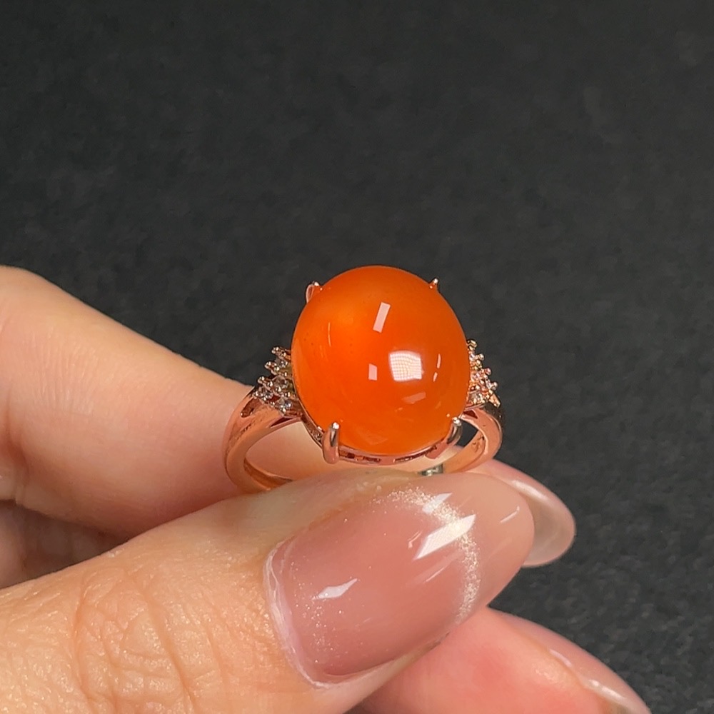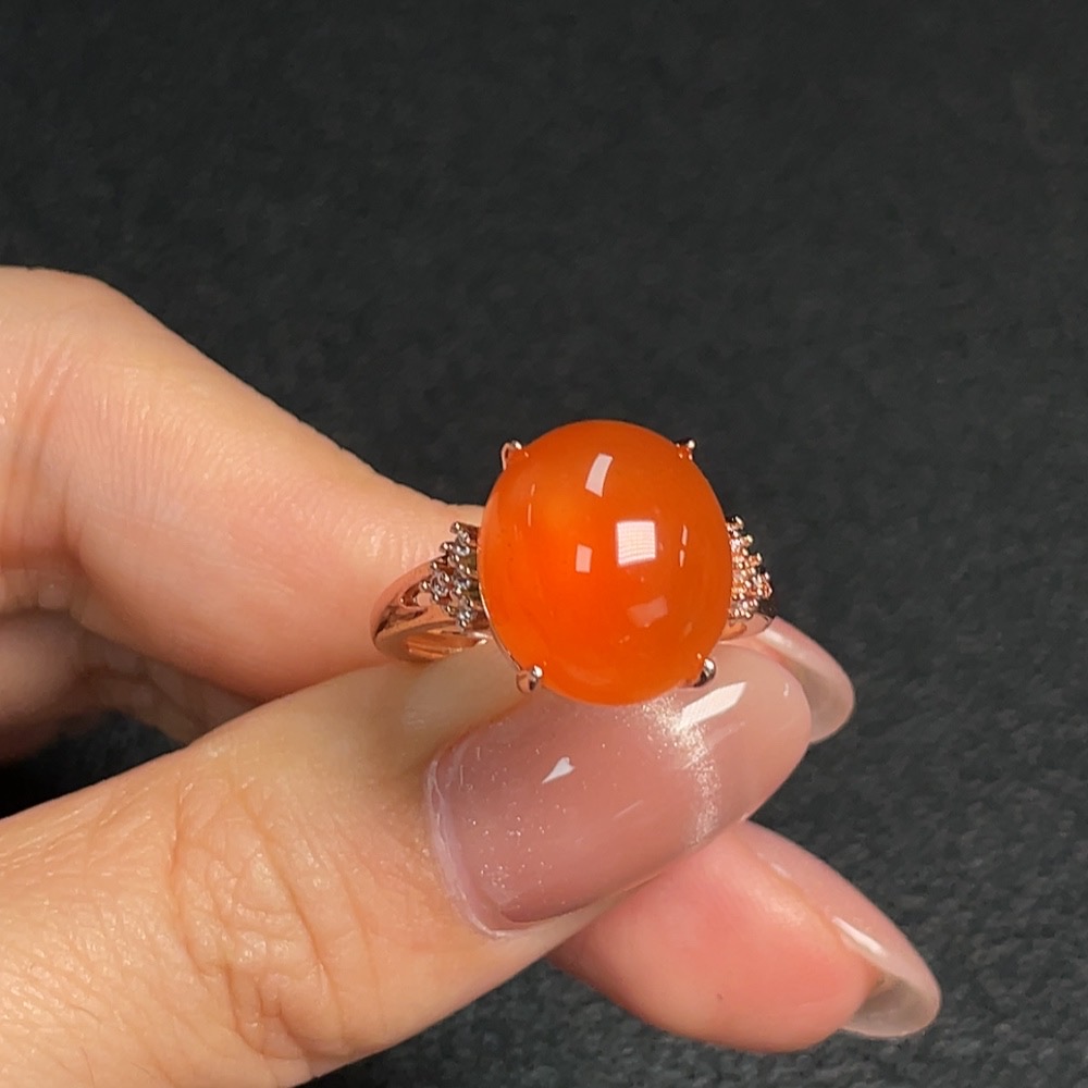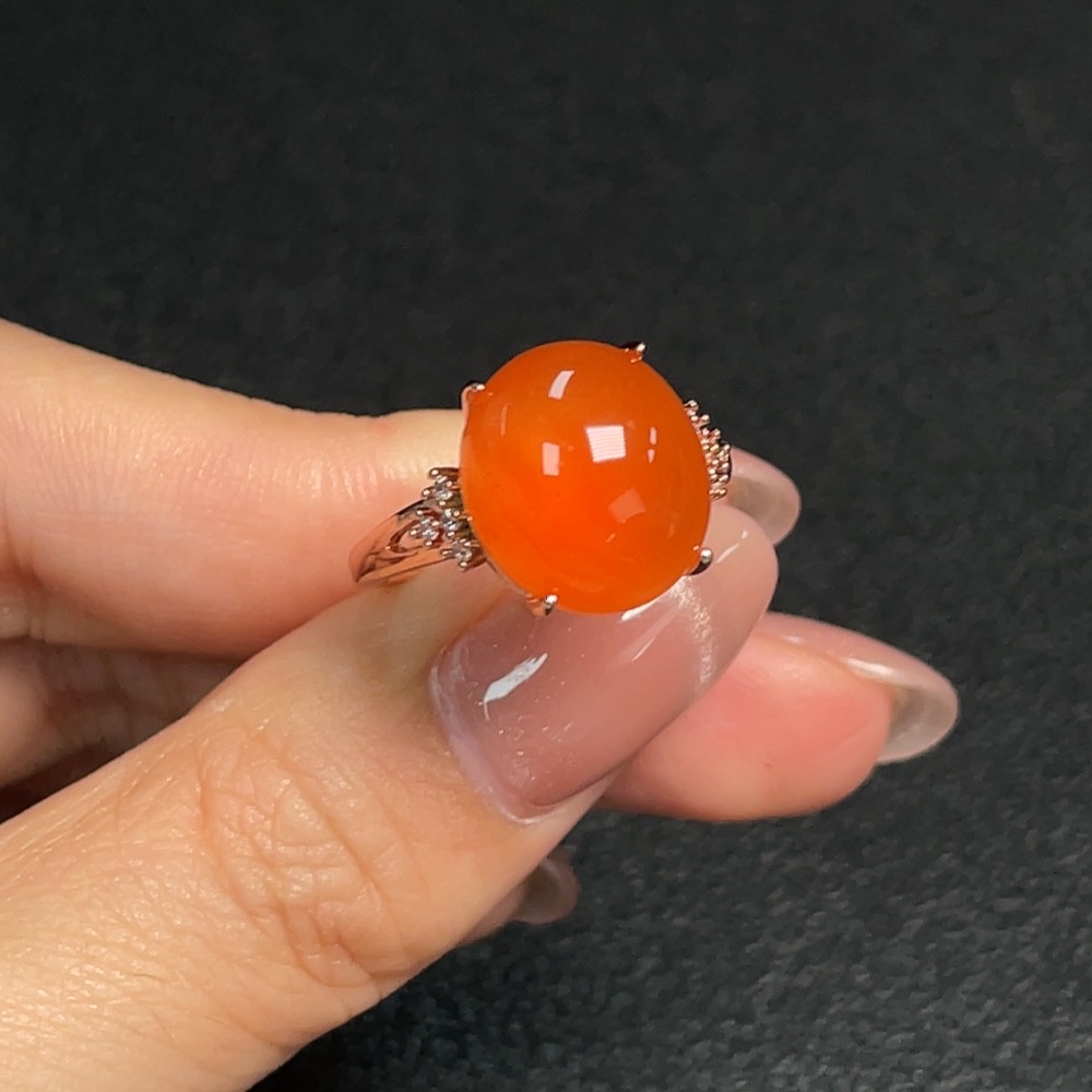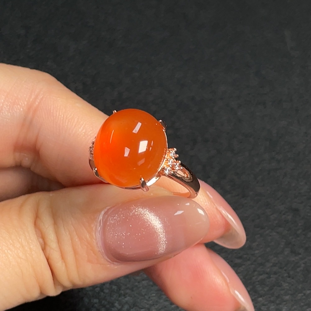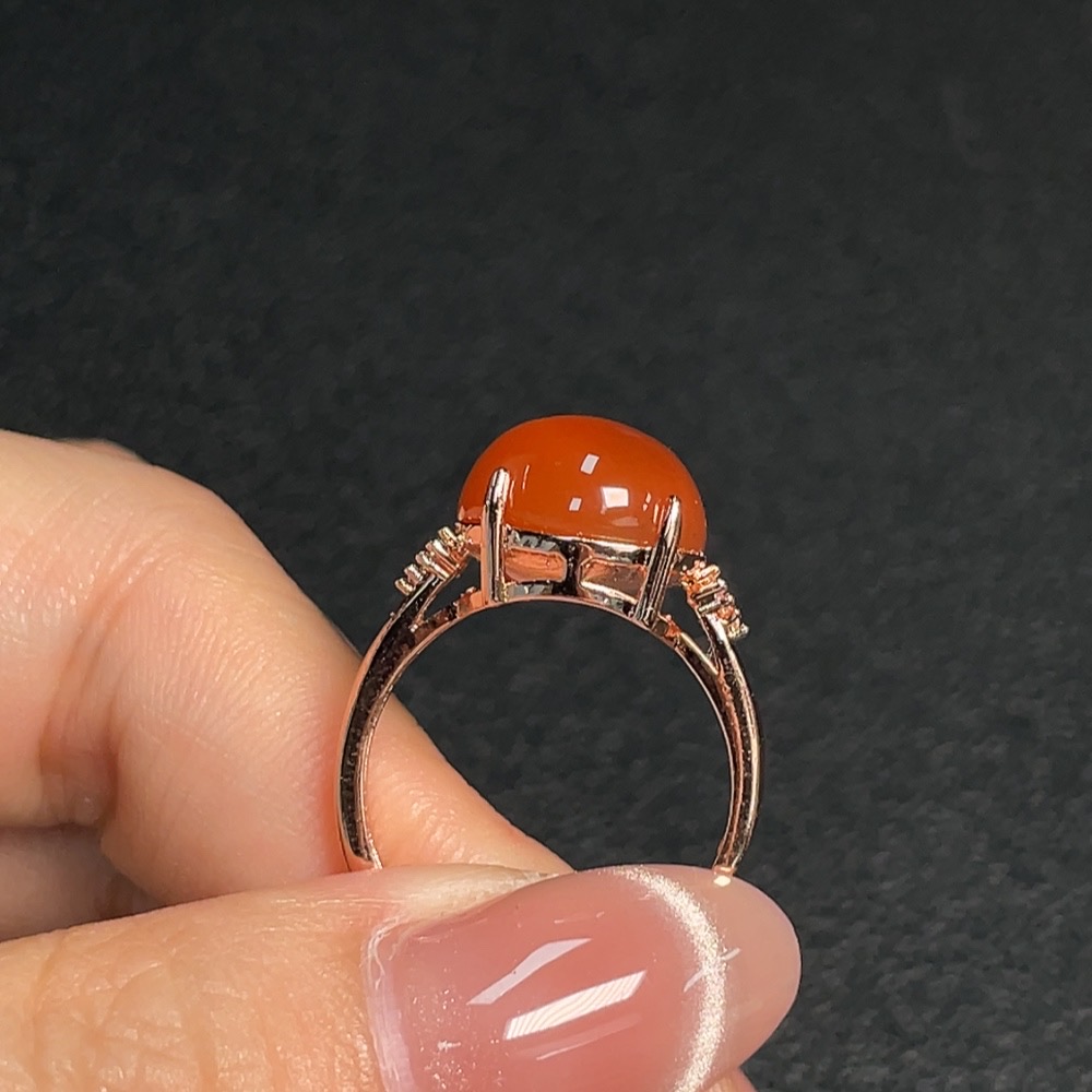 South Red Agate Inlaid Ring (Non-Gold Setting, Adjustable, Total Weight Approx. 4.20g)
