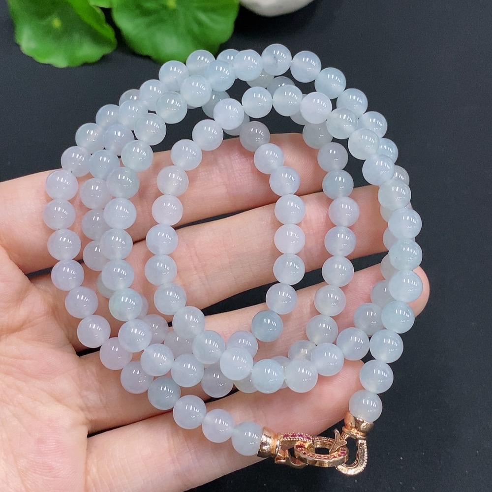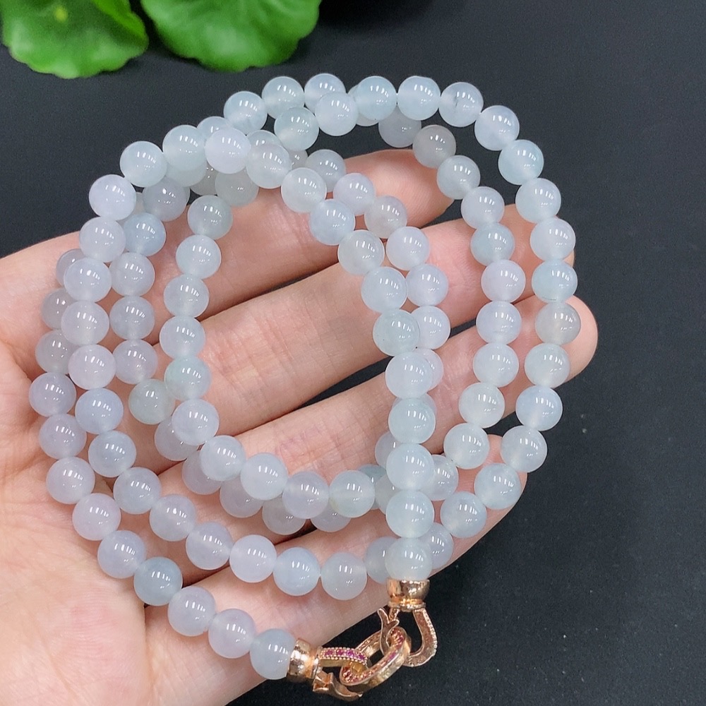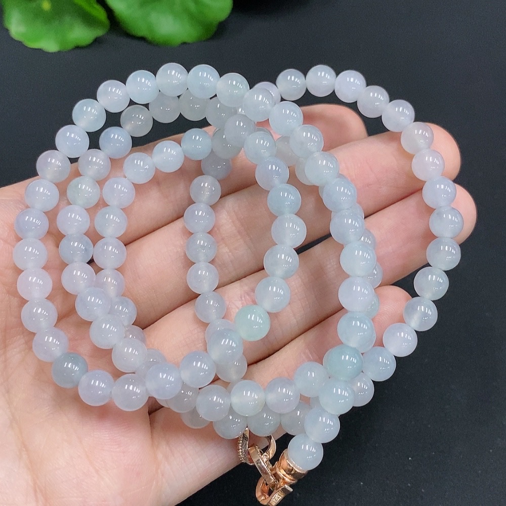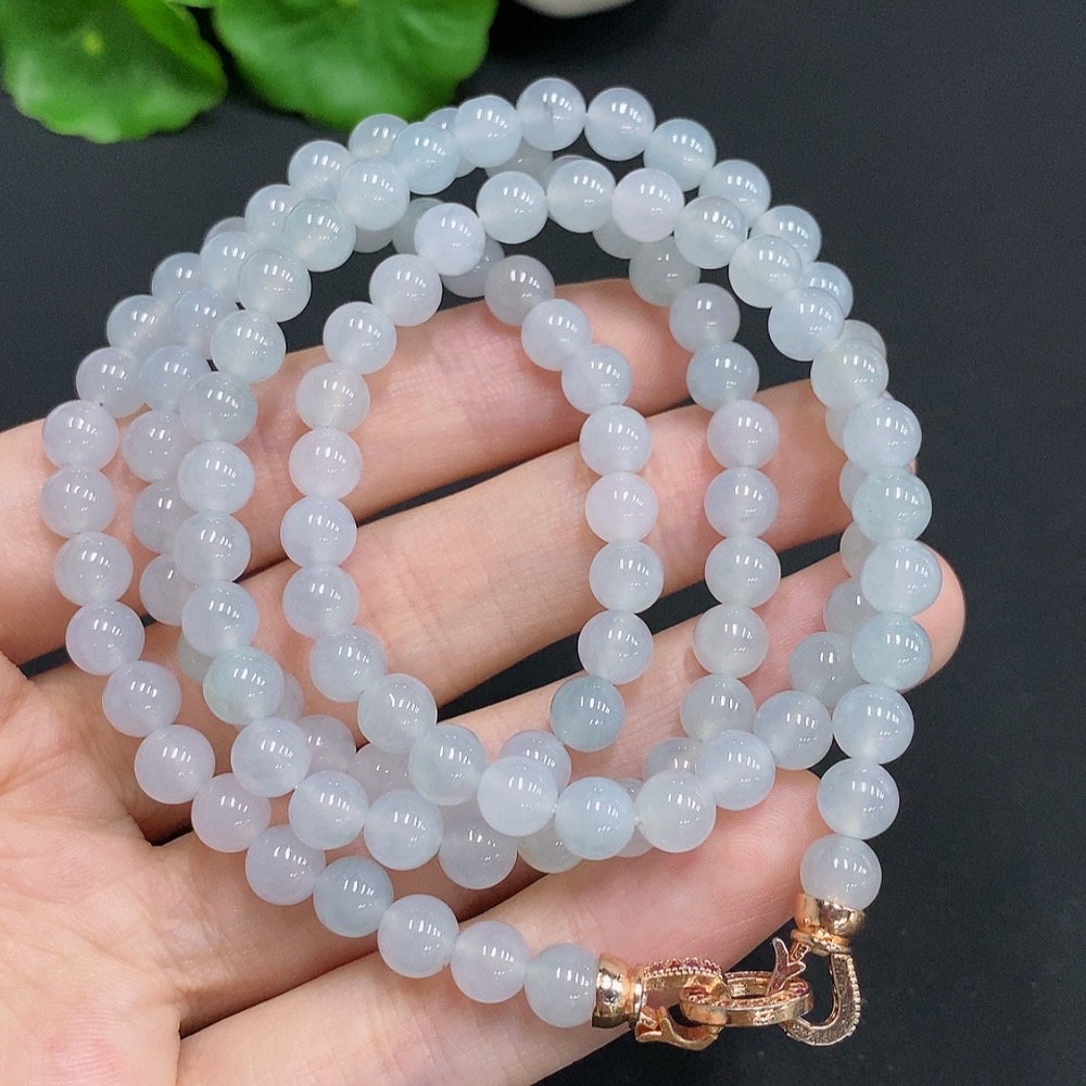 Jadeite Bead Necklace Non-Gold Inlaid Approx. 5.9mm Total Weight About 45.6g