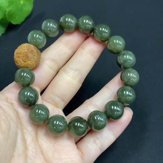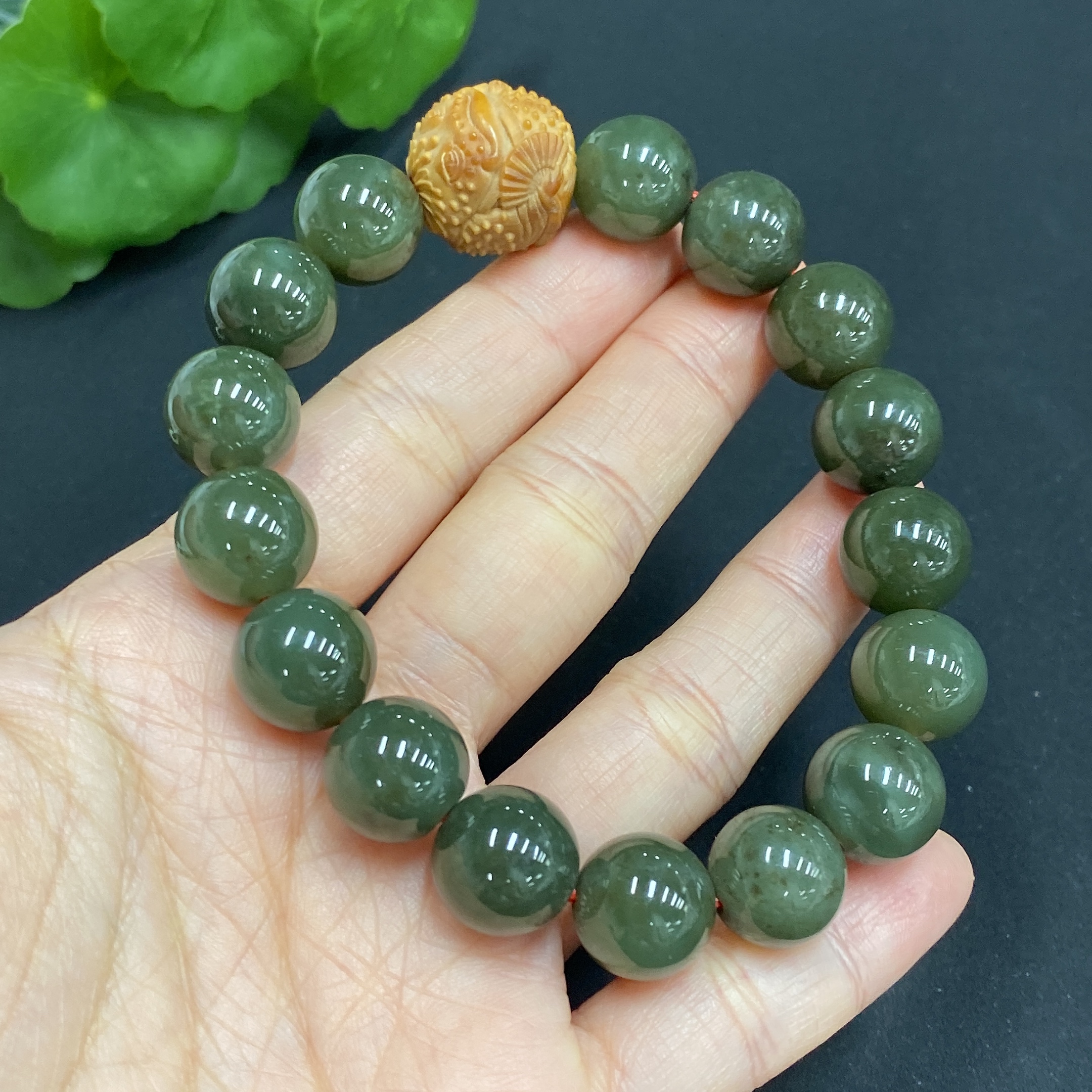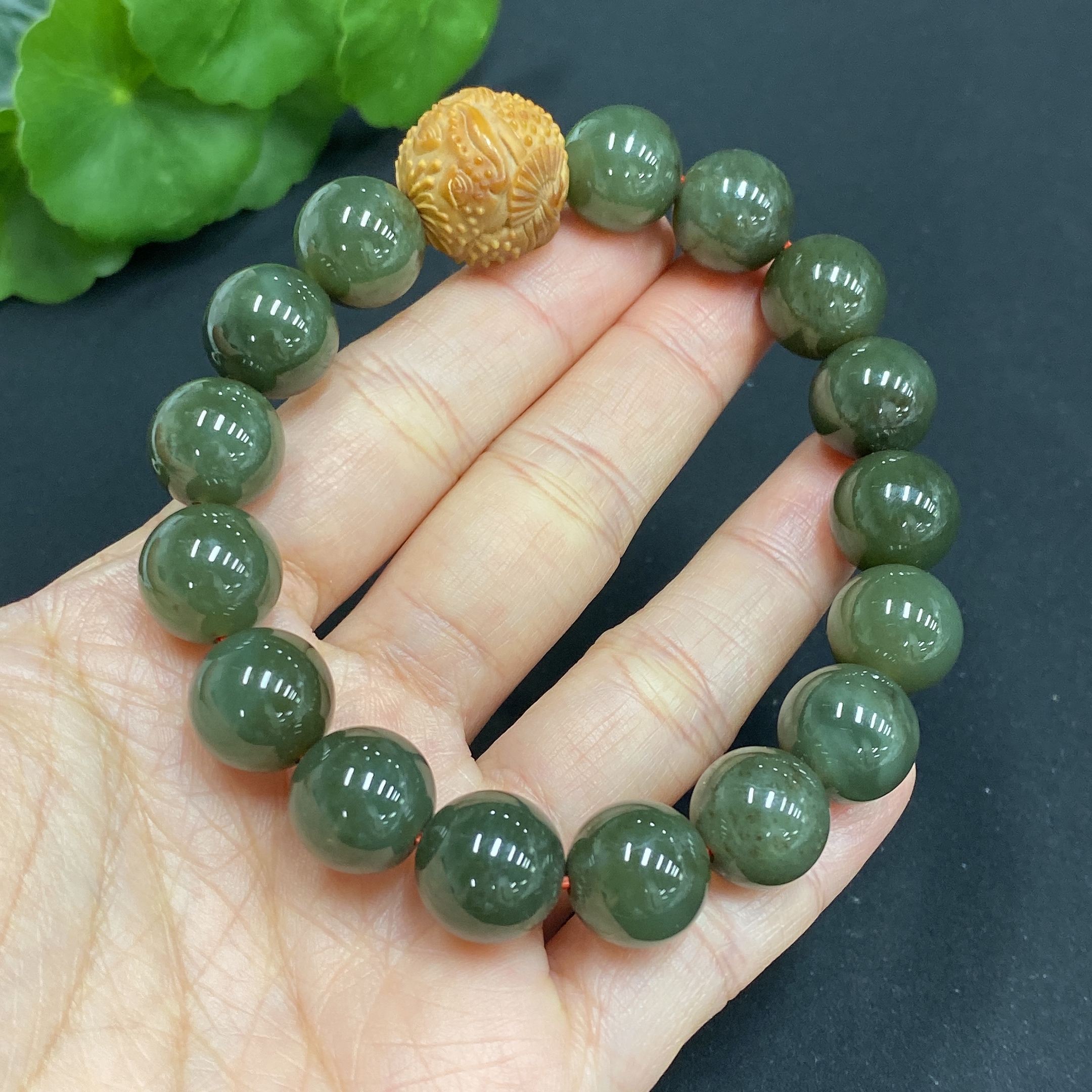 Hetian Jade Bead Bracelet, approx. 11.9mm, total weight about 45.8g, accessories not Hetian Jade