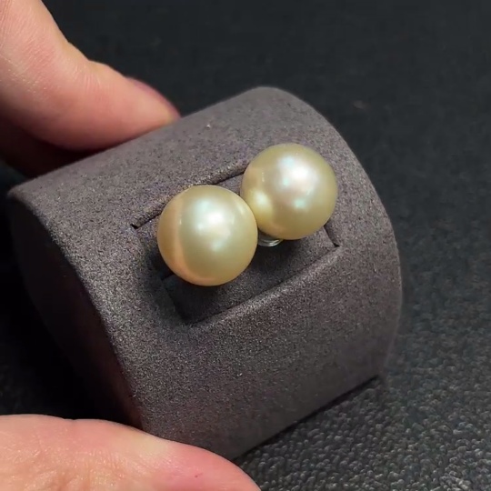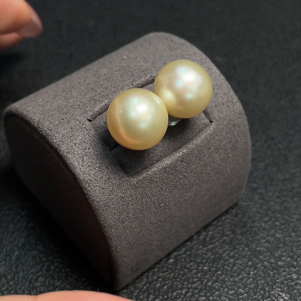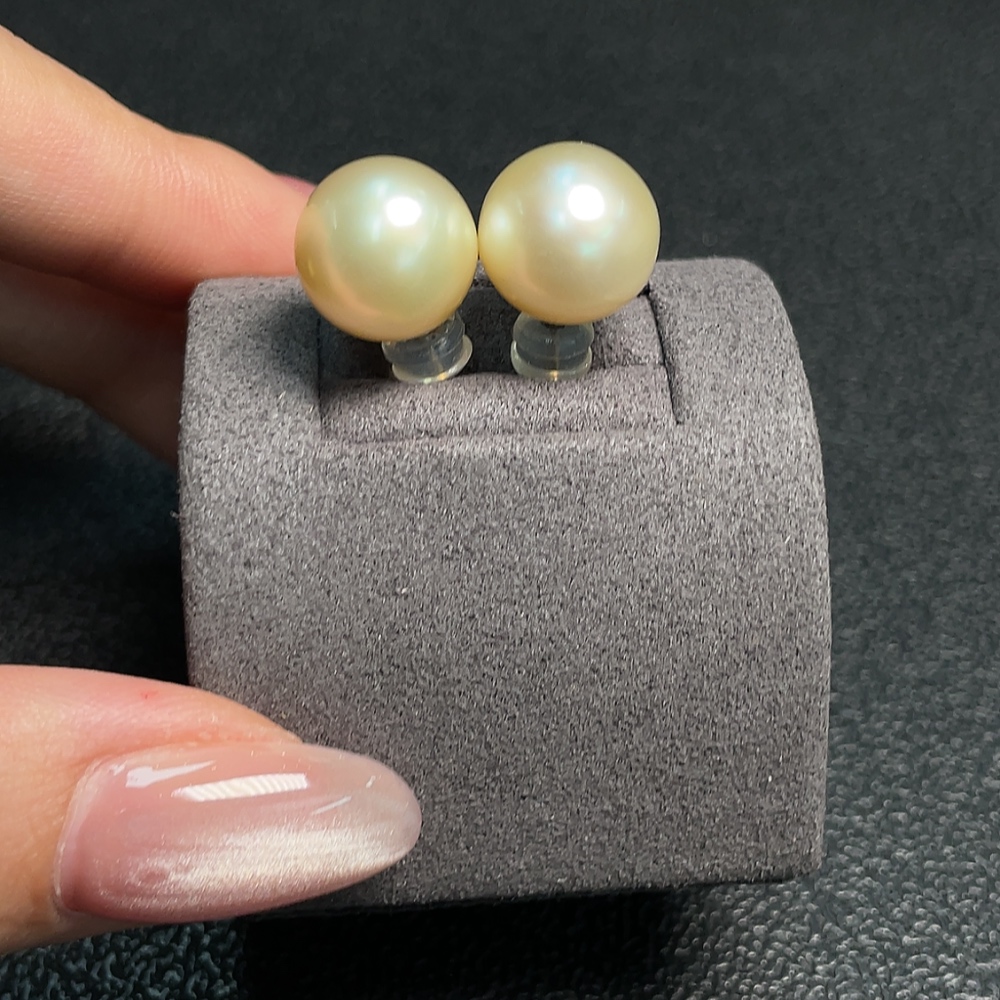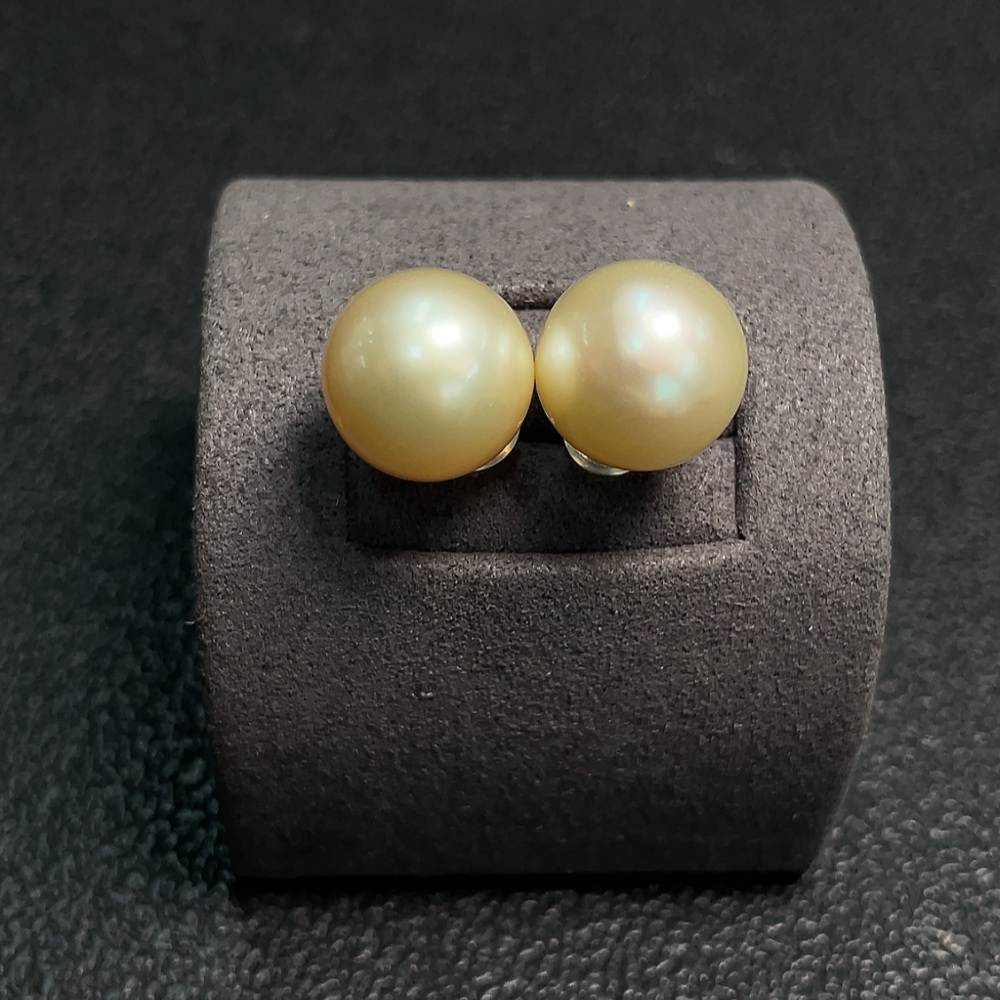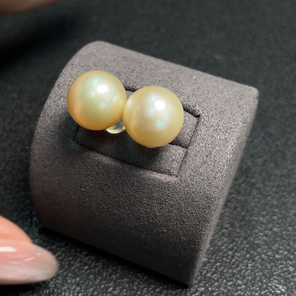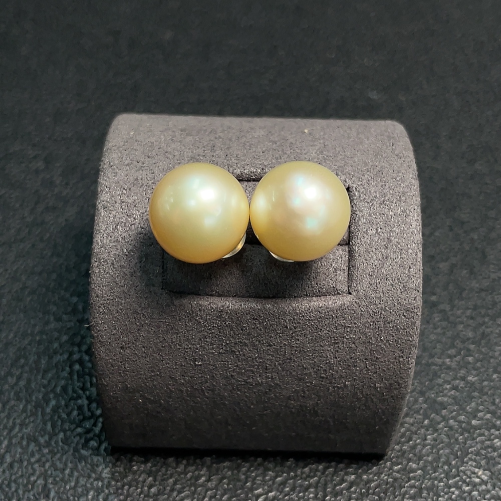 Seawater pearl earrings, color origin undetermined, 18K gold, total weight approximately 4.77g, size about 11.4mm