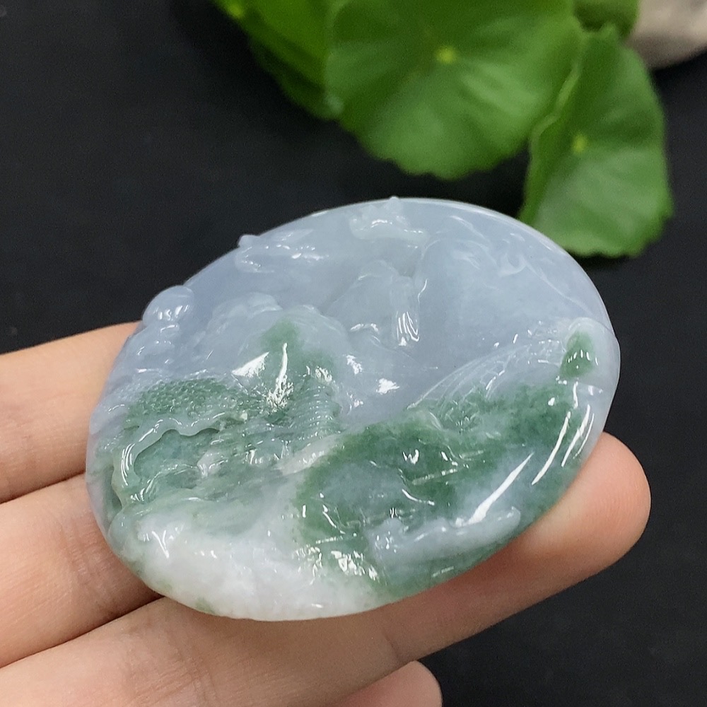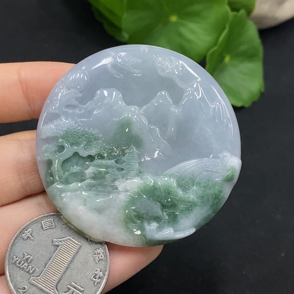 Jadeite Landscape Pendant Total Weight: Approx. 26.57g