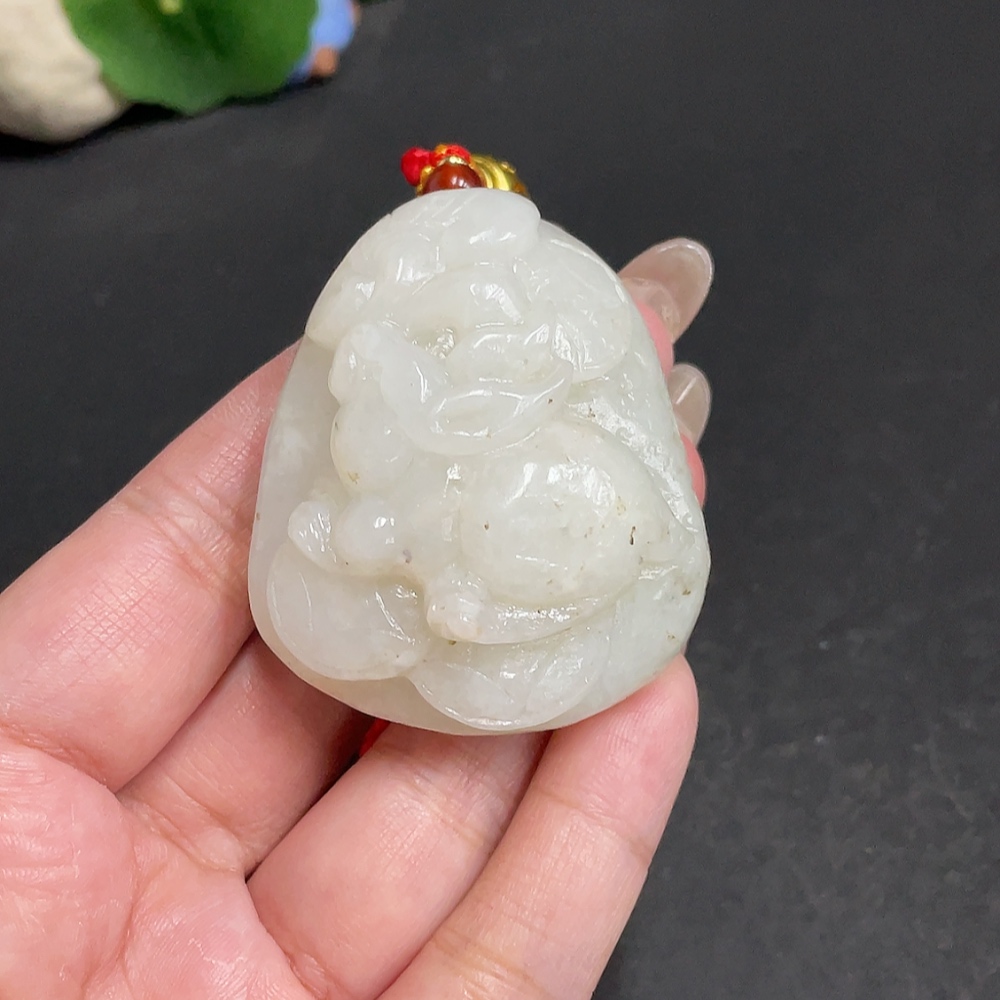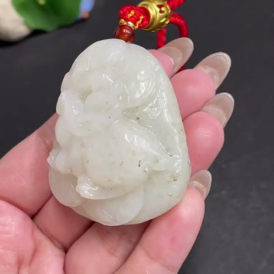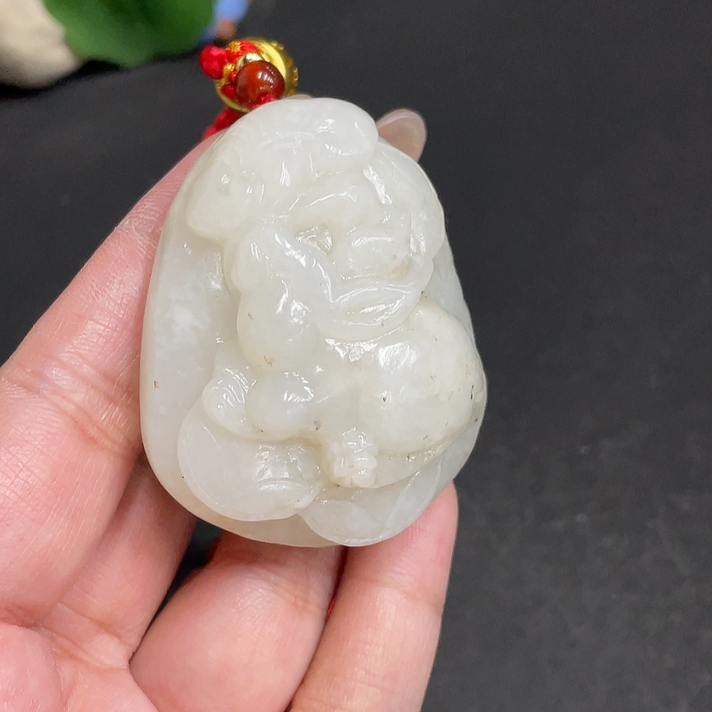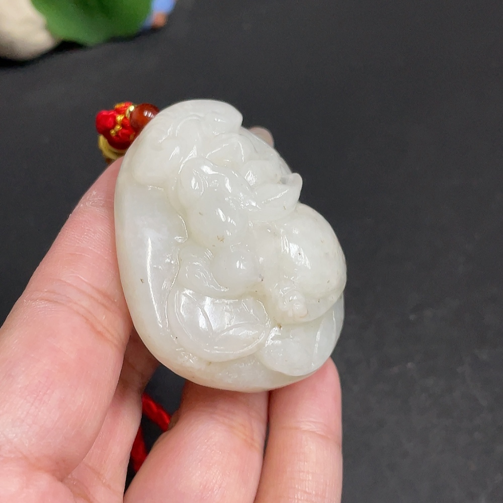 Hetian Jade Handheld Carving - Rabbit, Total Weight Approx. [including rope] 85.9g