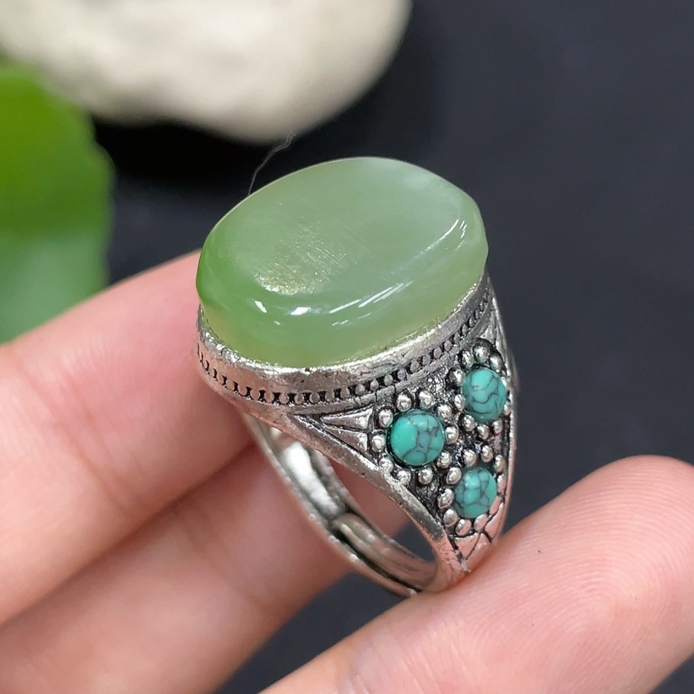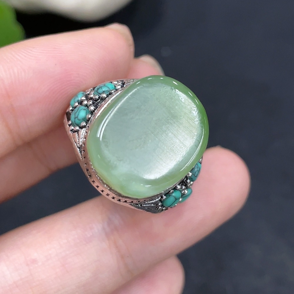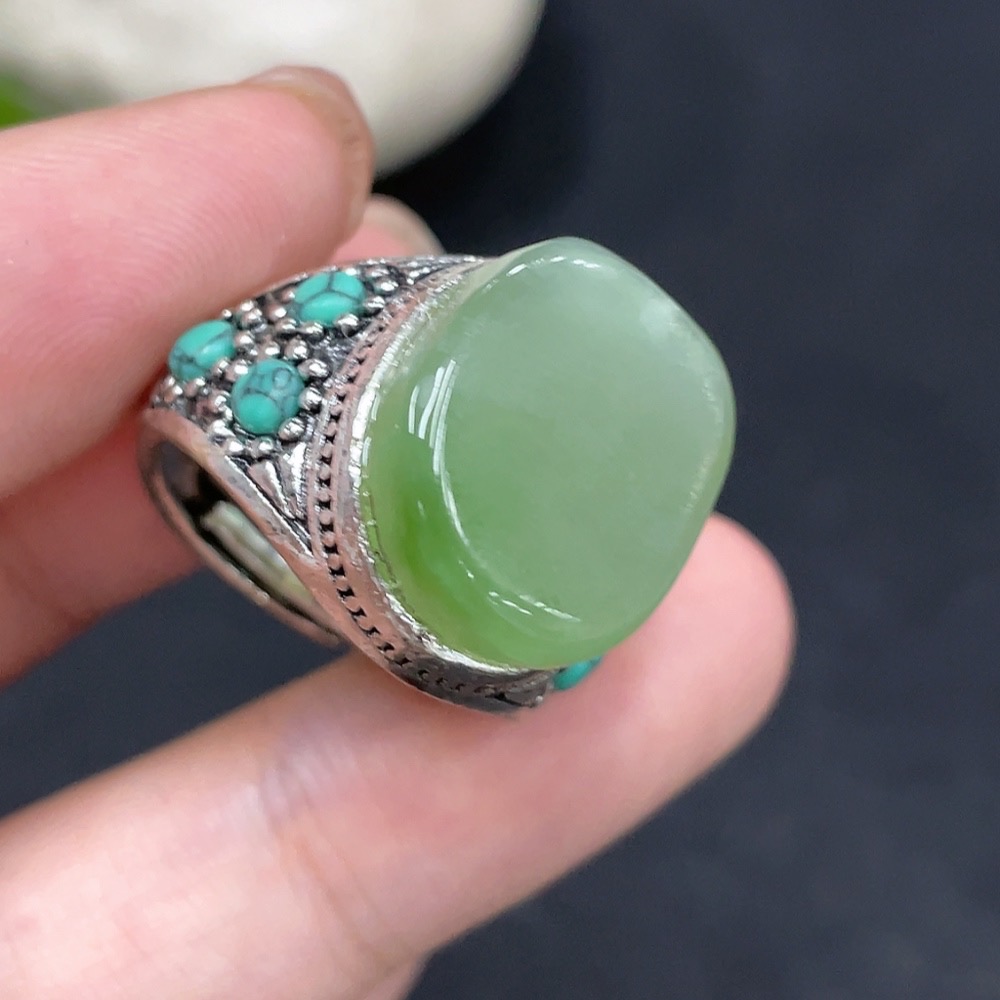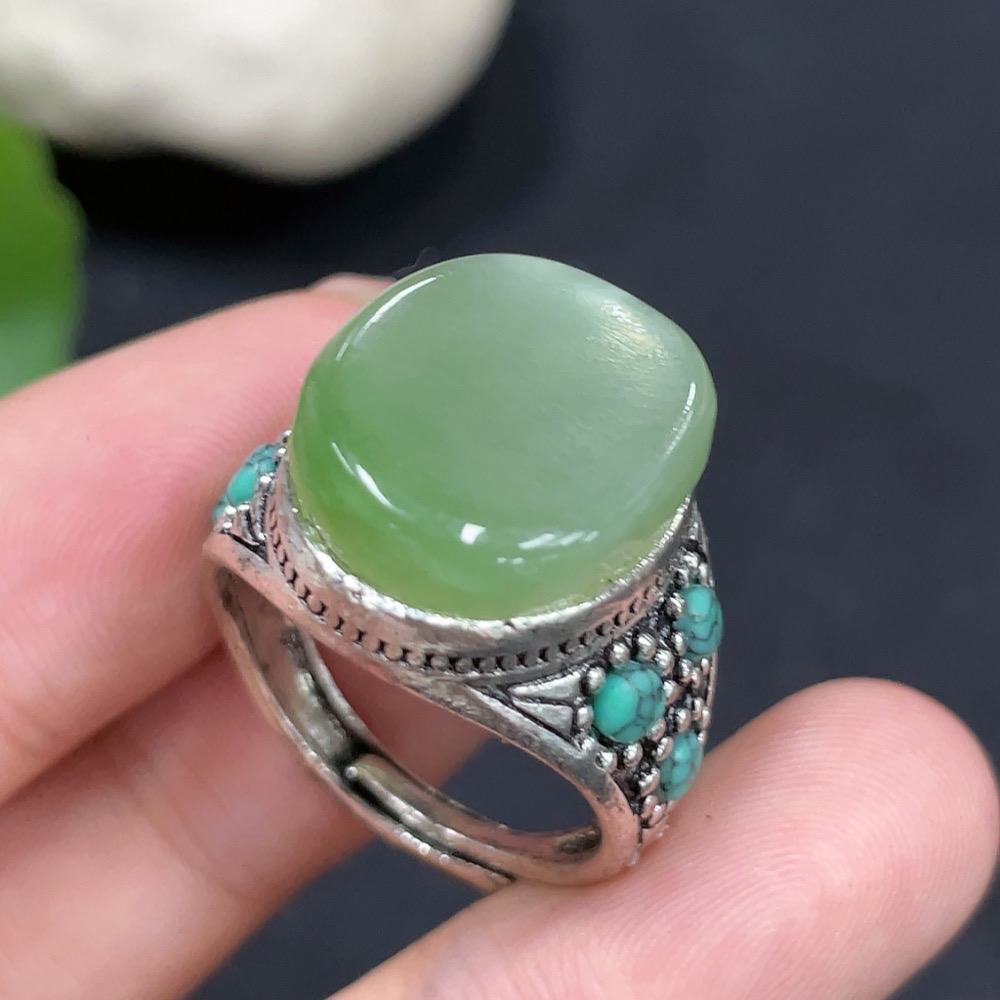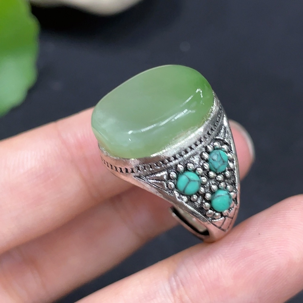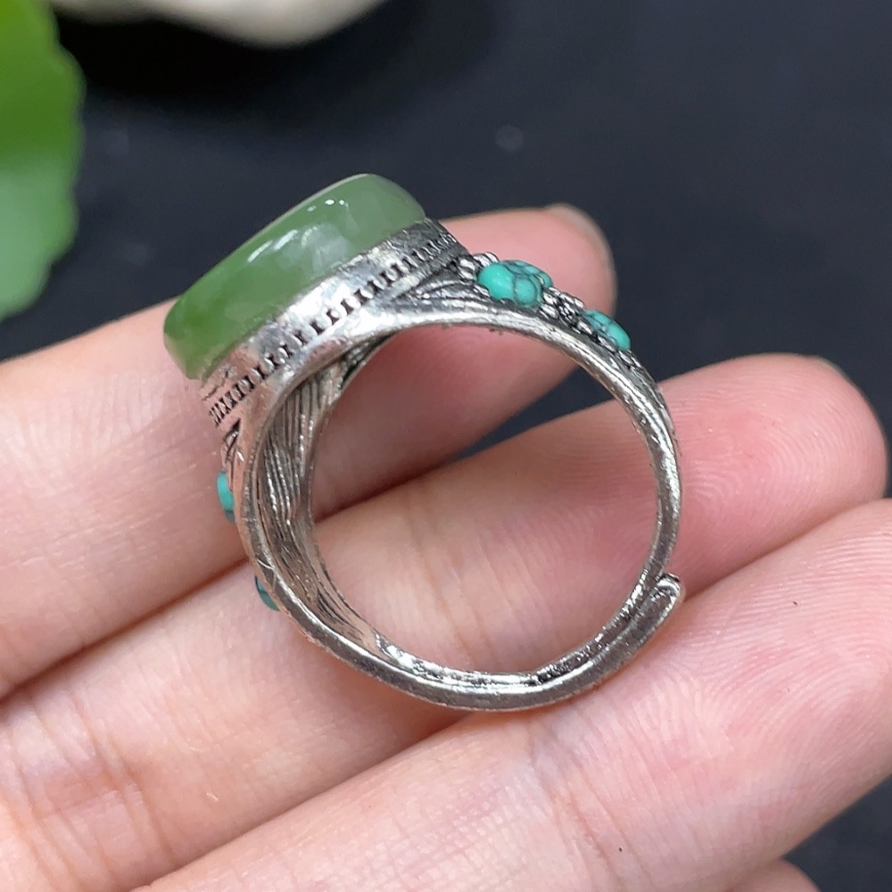 Hetian Jade Inlaid Adjustable Ring Non-Gold Total Weight Approx. 7.6g