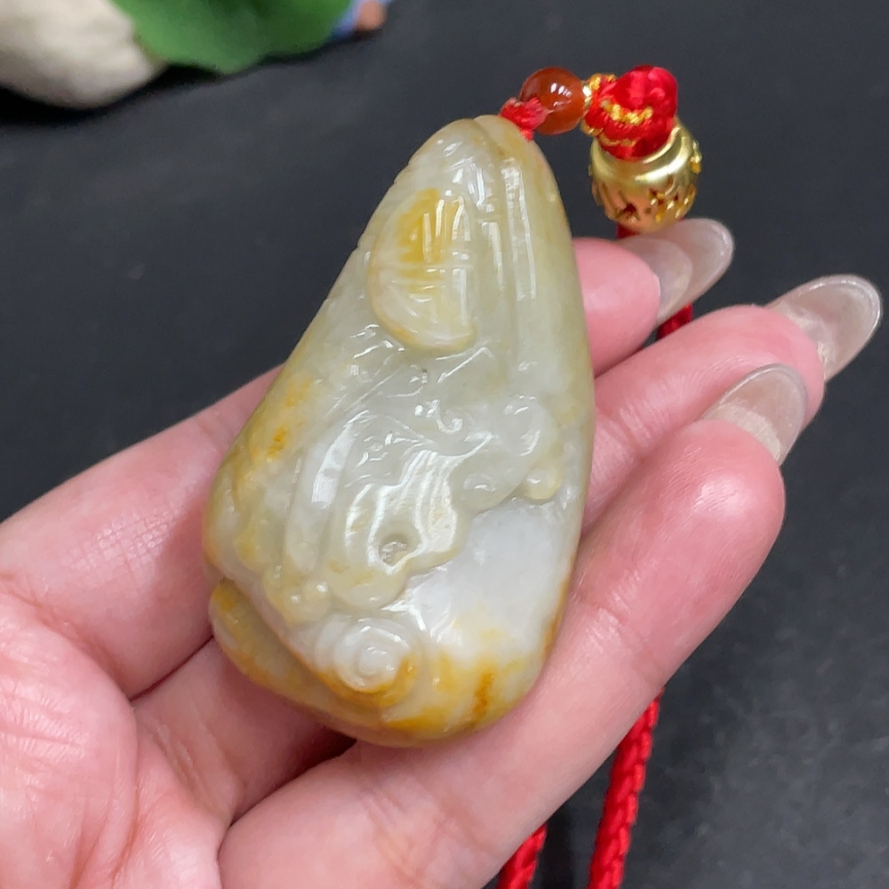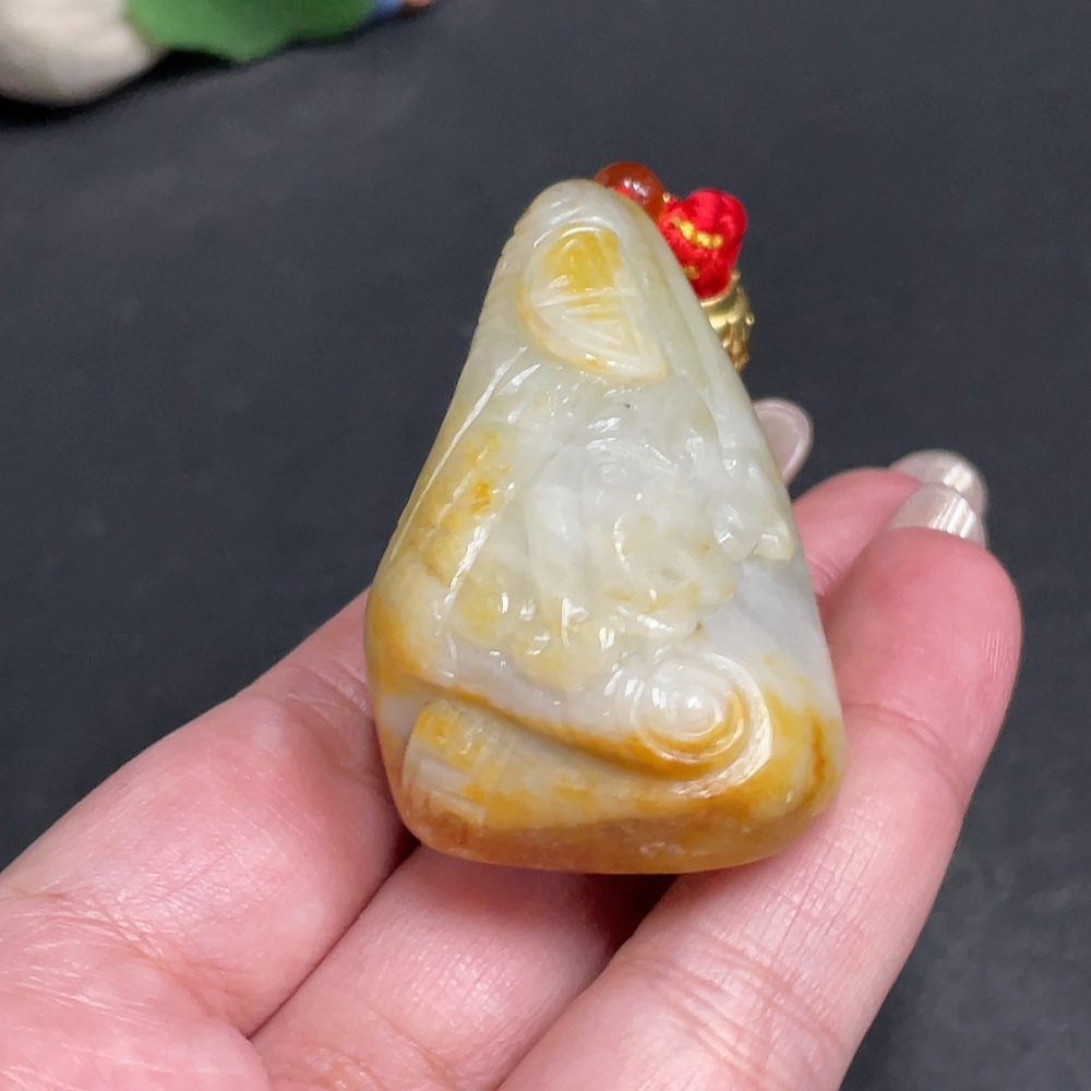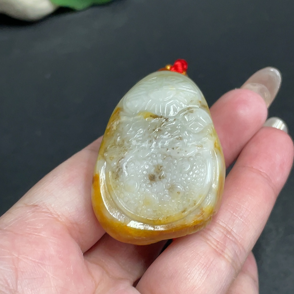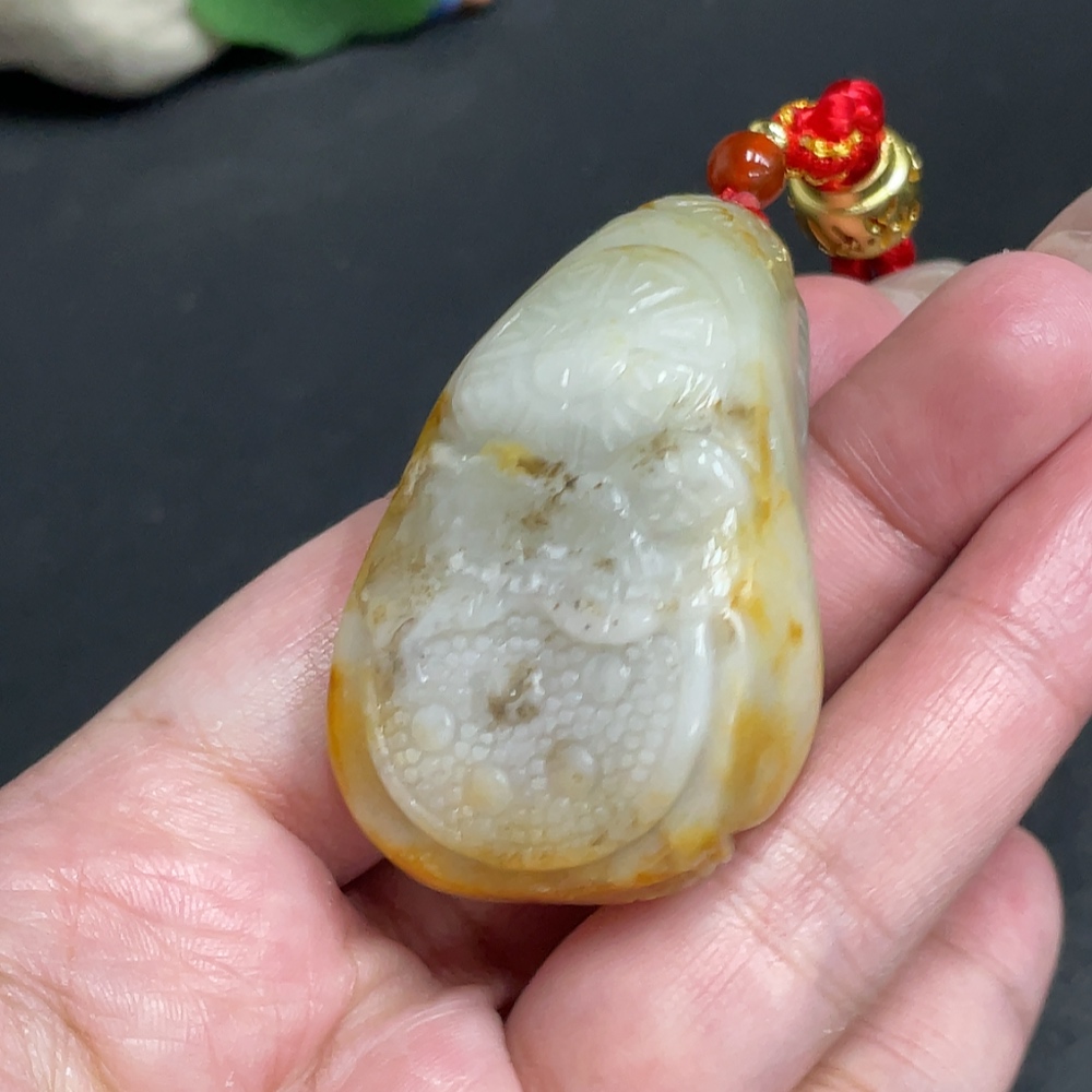 Hetian Jade Seed Material Handheld Piece Antique Style With Other Mineral Components Undetermined Skin Color Origin Total Weight Approximately [Including Rope] 76.9g