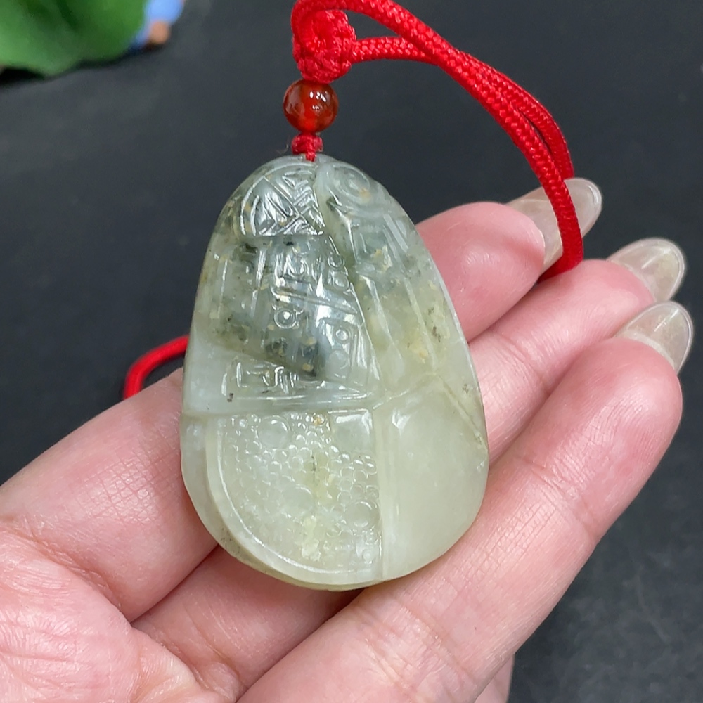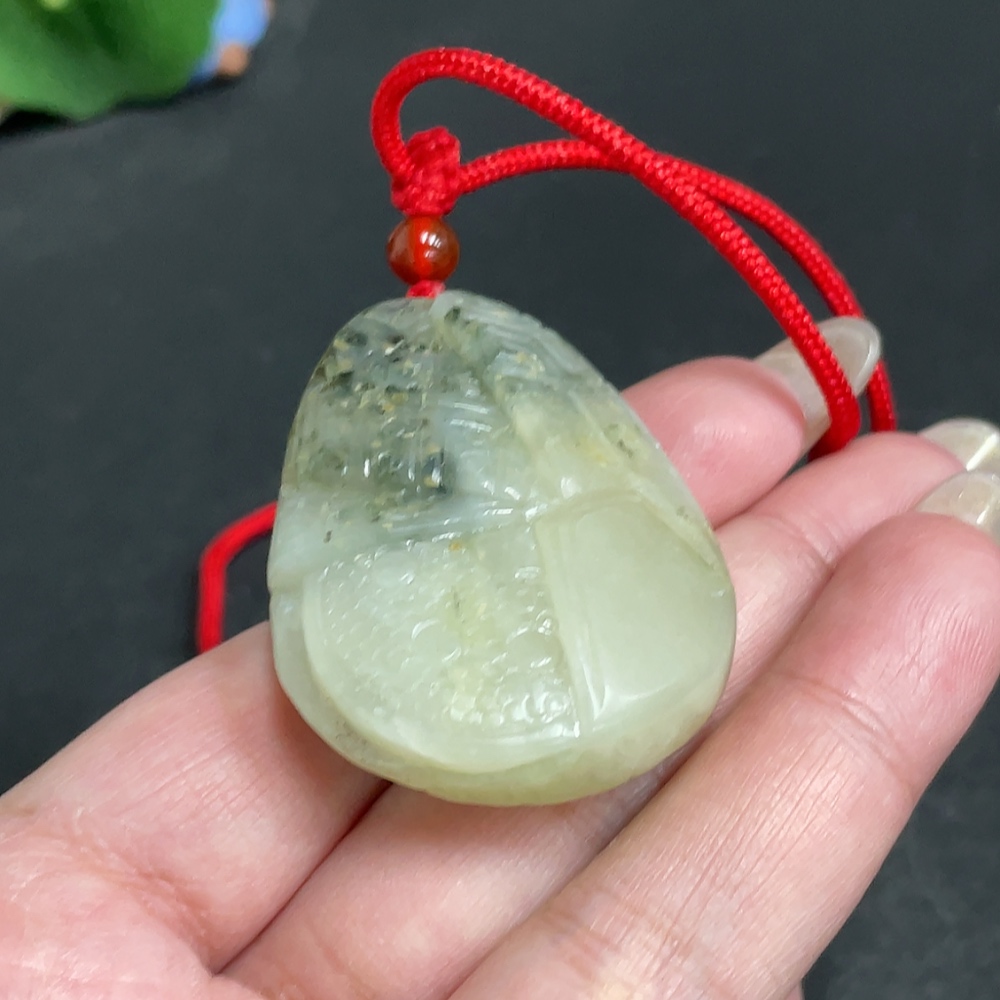 Trezaar - Hetian Jade Seed Material Pendant, Antique-style Piece, Containing Other Mineral Components, Undetermined Skin Color Origin, Total Weight Approximately [Including Rope] 42.7g