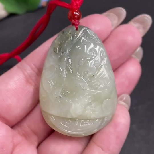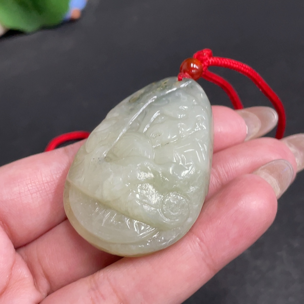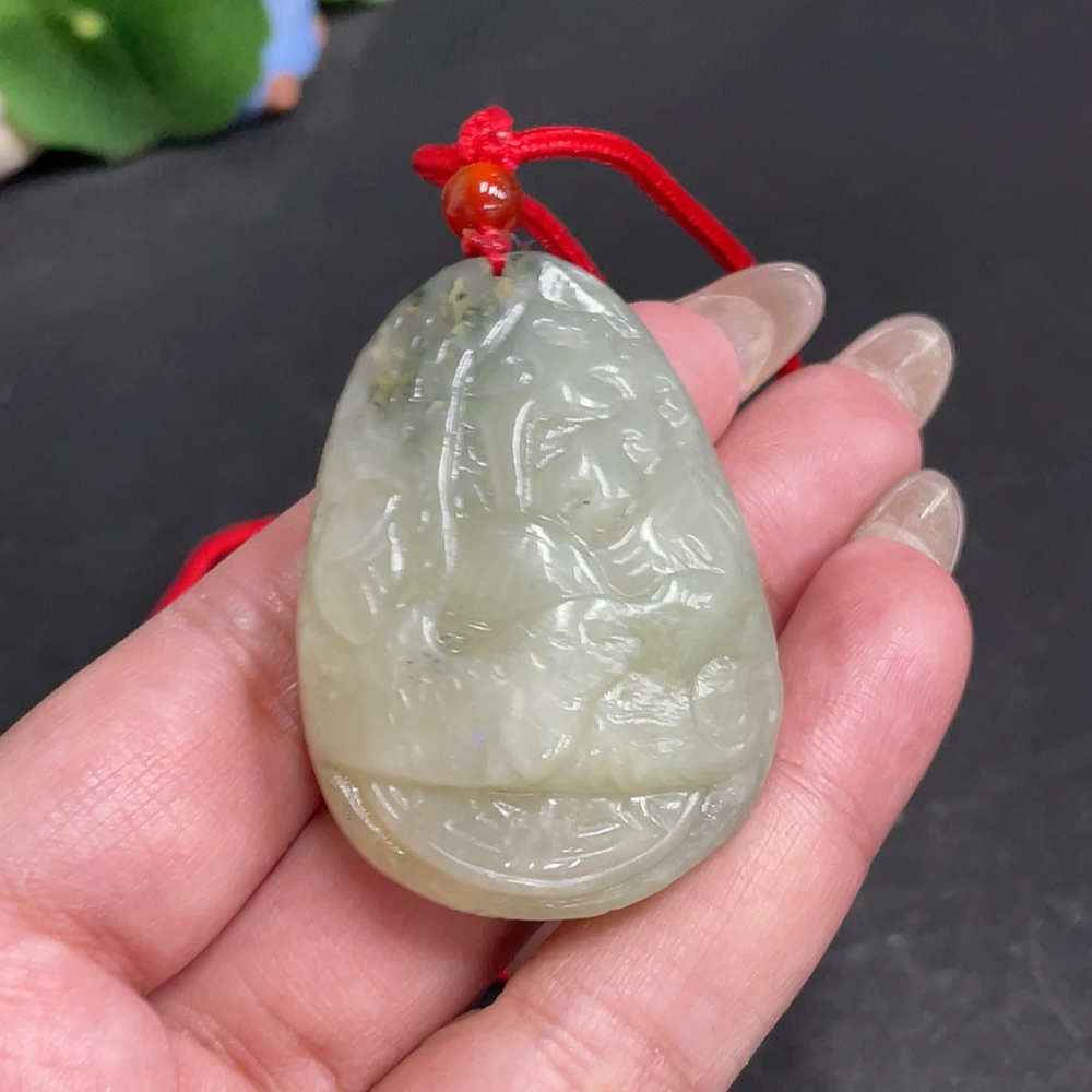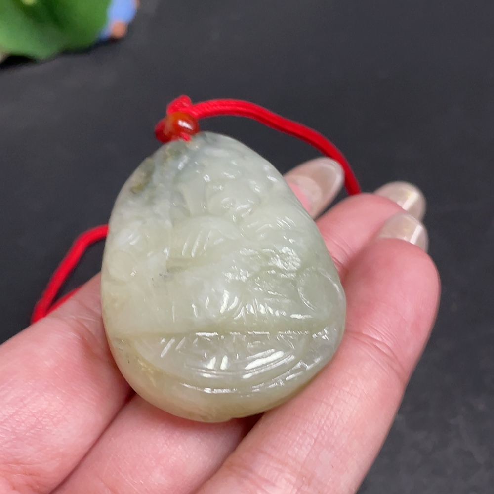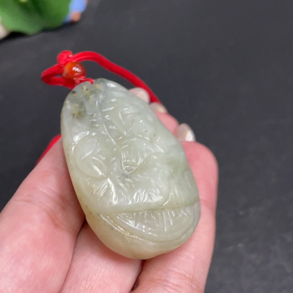Hetian Jade Seed Material Pendant, Antique-style Piece, Containing Other Mineral Components, Undetermined Skin Color Origin, Total Weight Approximately [Including Rope] 42.7g