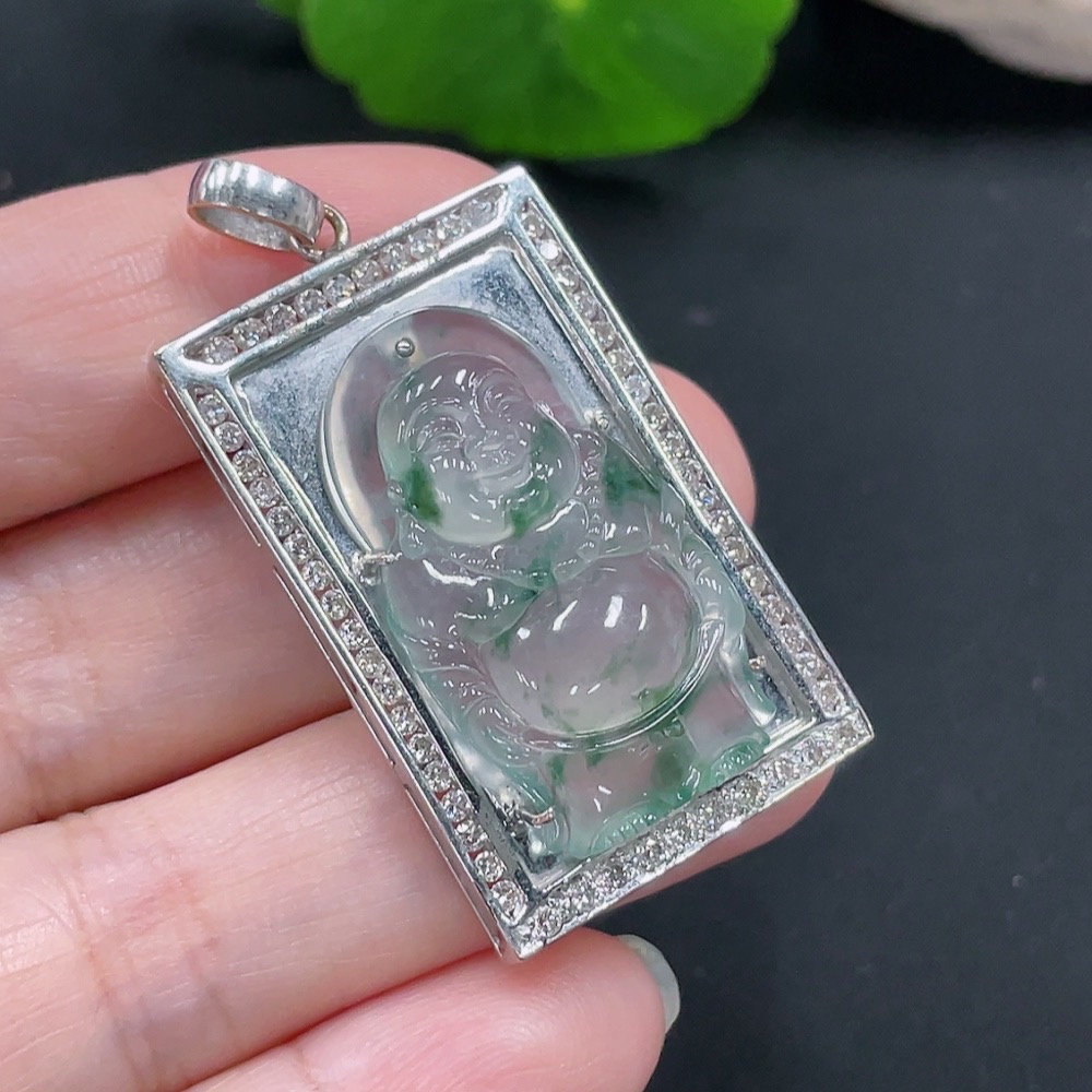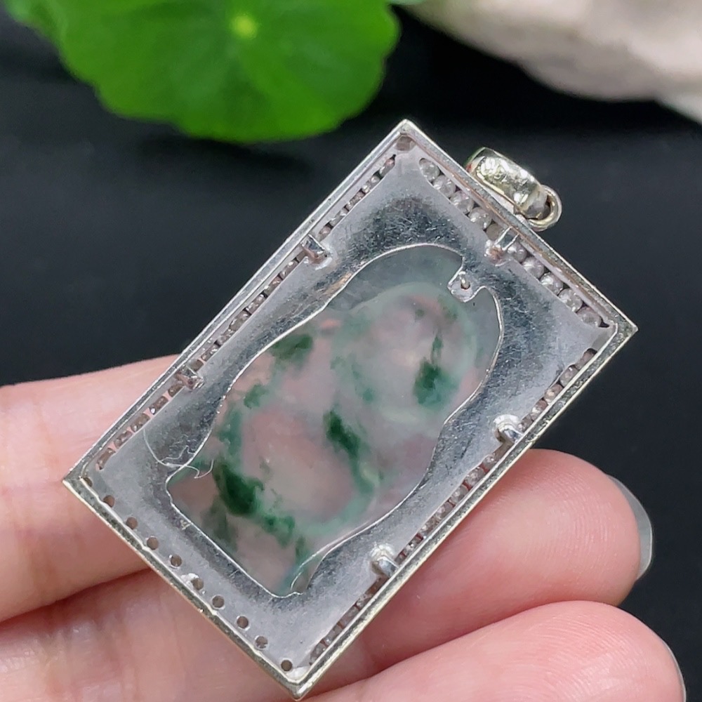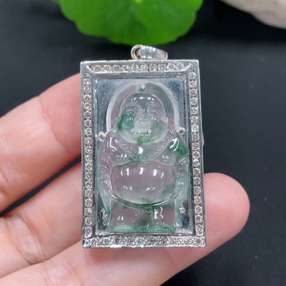 Jadeite Inlaid Pendant 18K Gold Total Weight Approx.12g (With Diamond Accents)