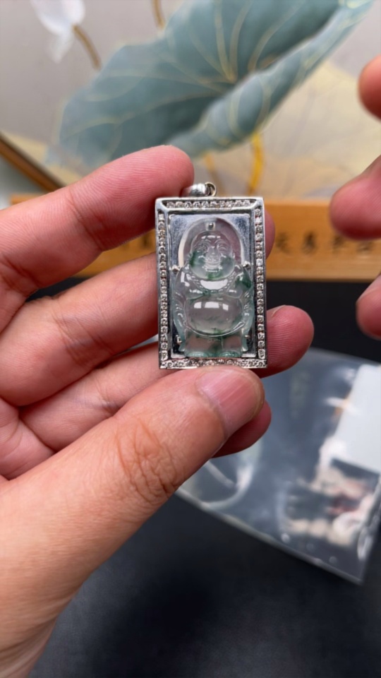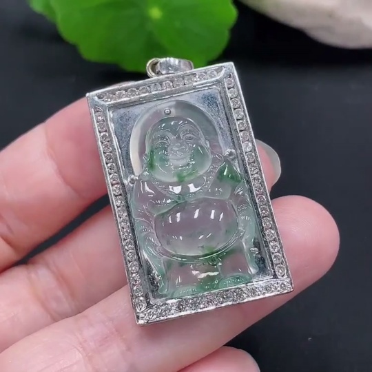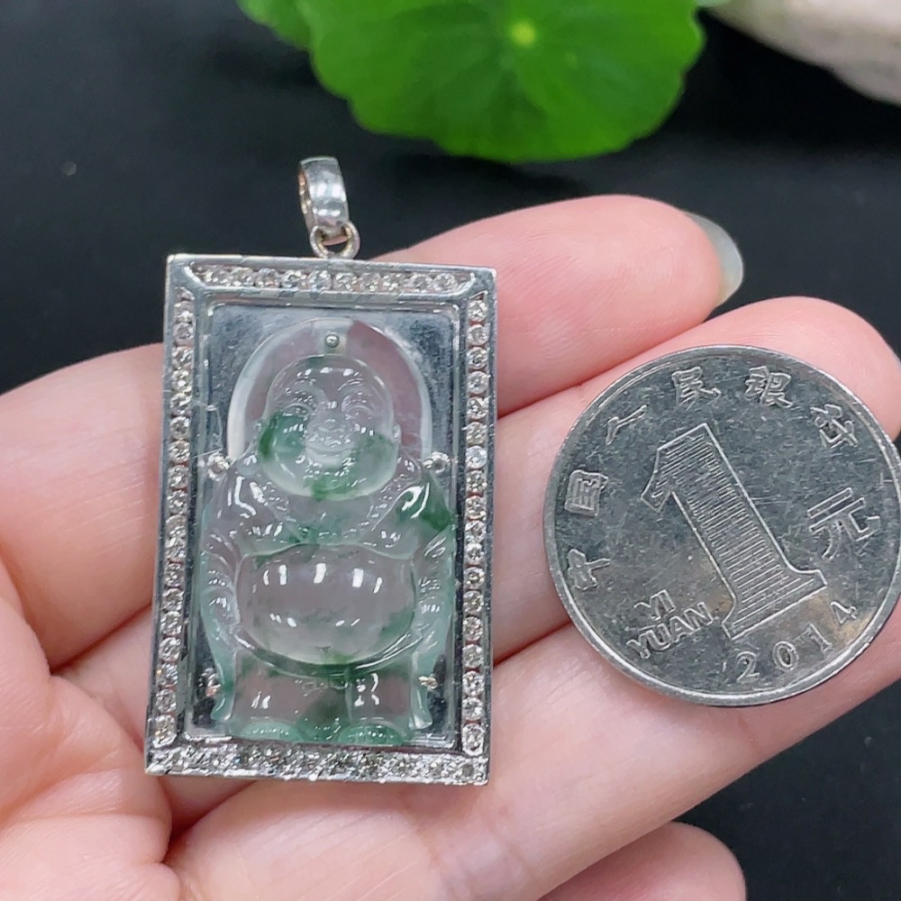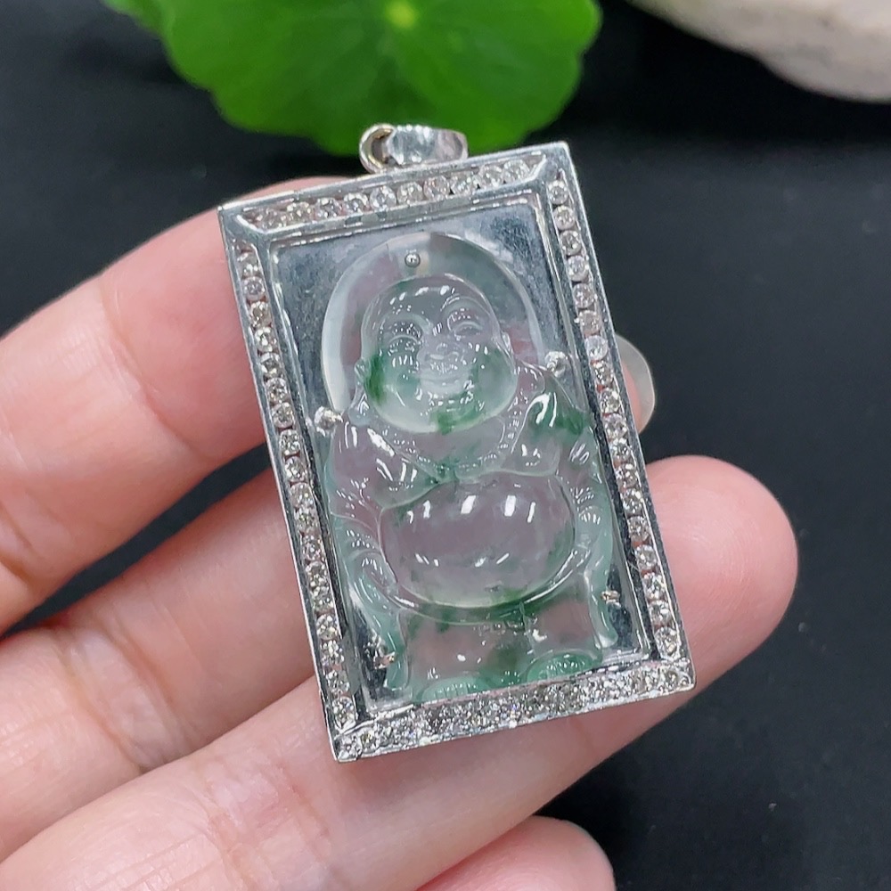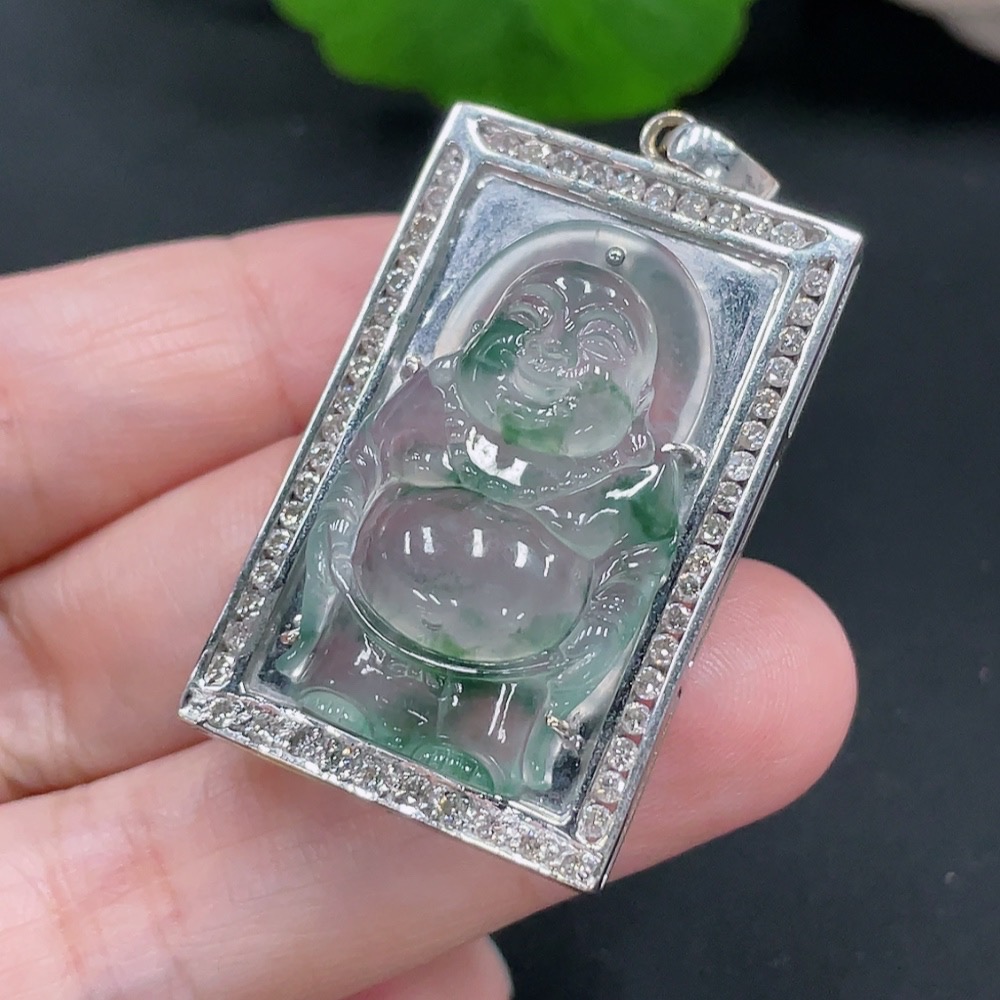 Jadeite Inlaid Pendant 18K Gold Total Weight Approx.12g (With Diamond Accents)