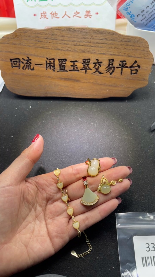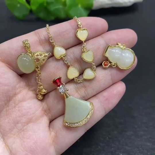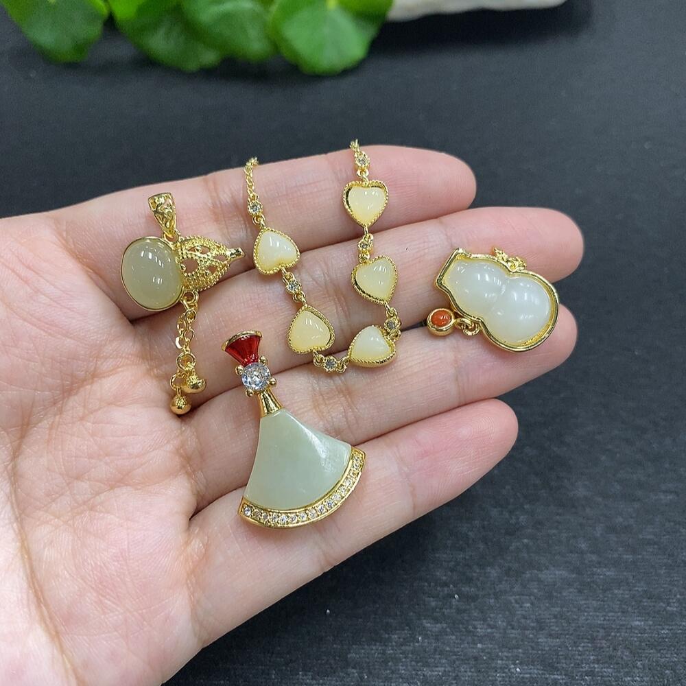 Hetian Jade Inlaid Pendant with Bracelet Set (Total Weight 14.8g Non-Gold Inlaid)