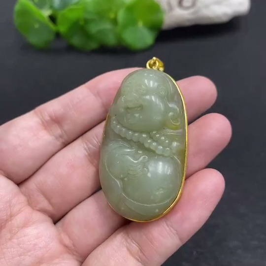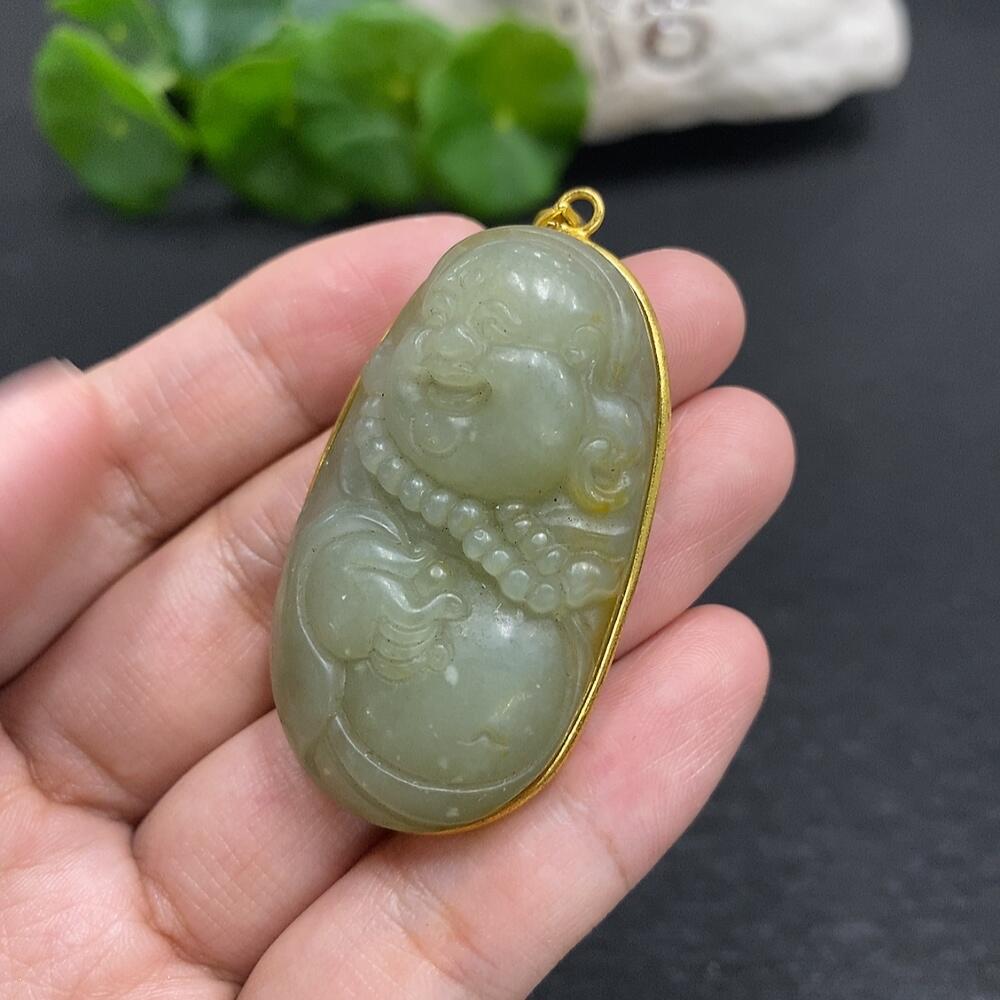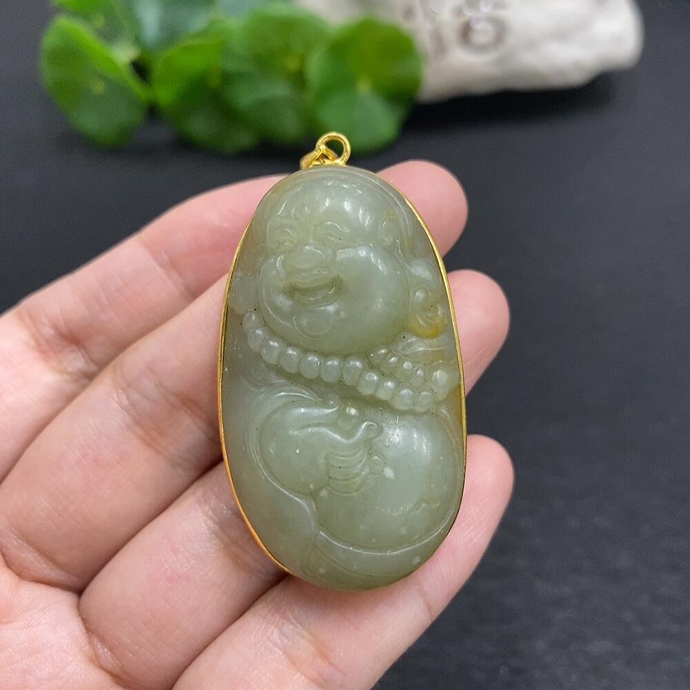Hetian Jade Buddha Pendant, Total Weight 25.8g, Non-Gold Inlaid