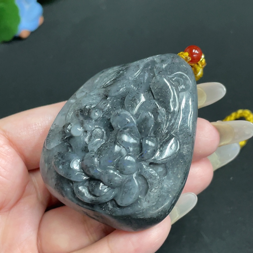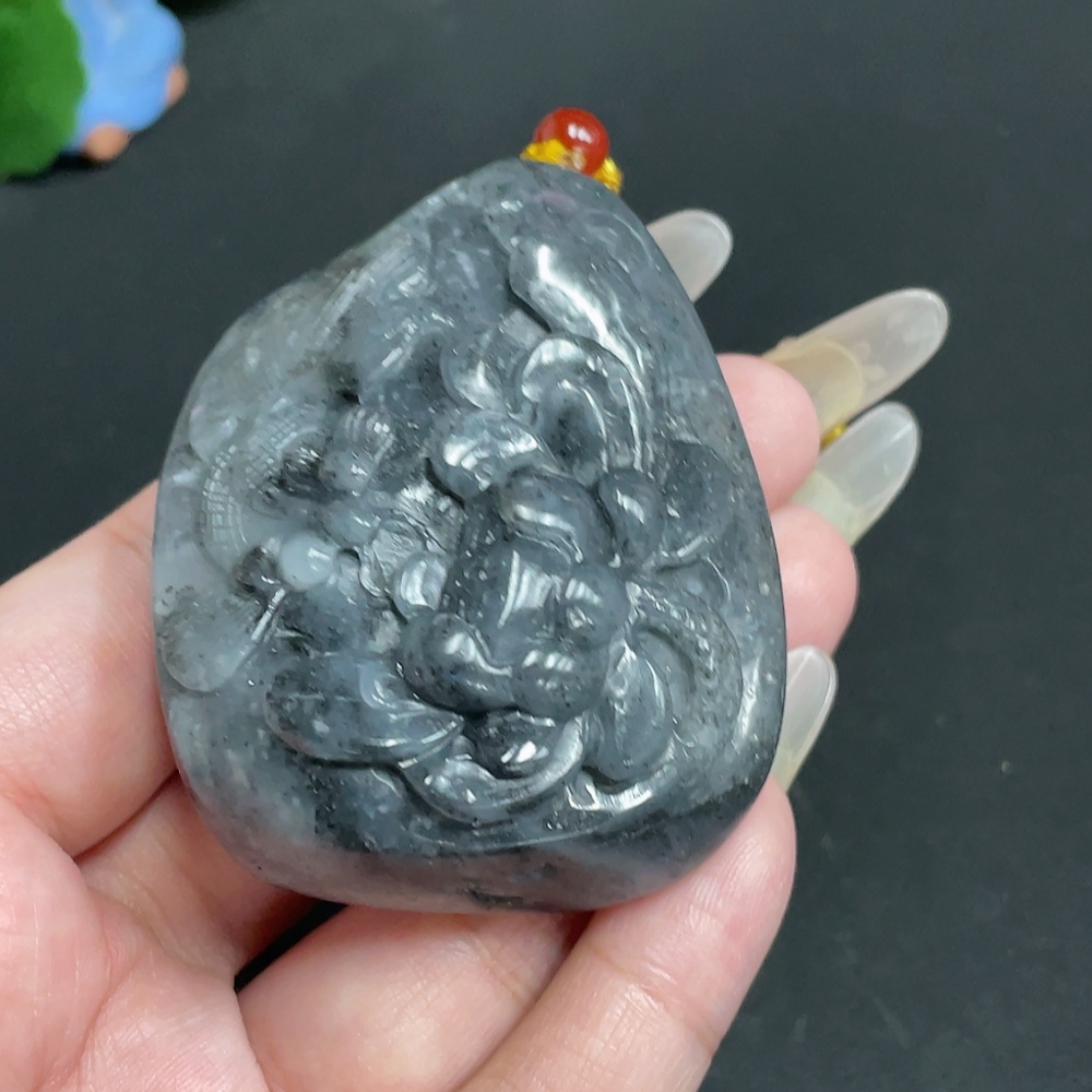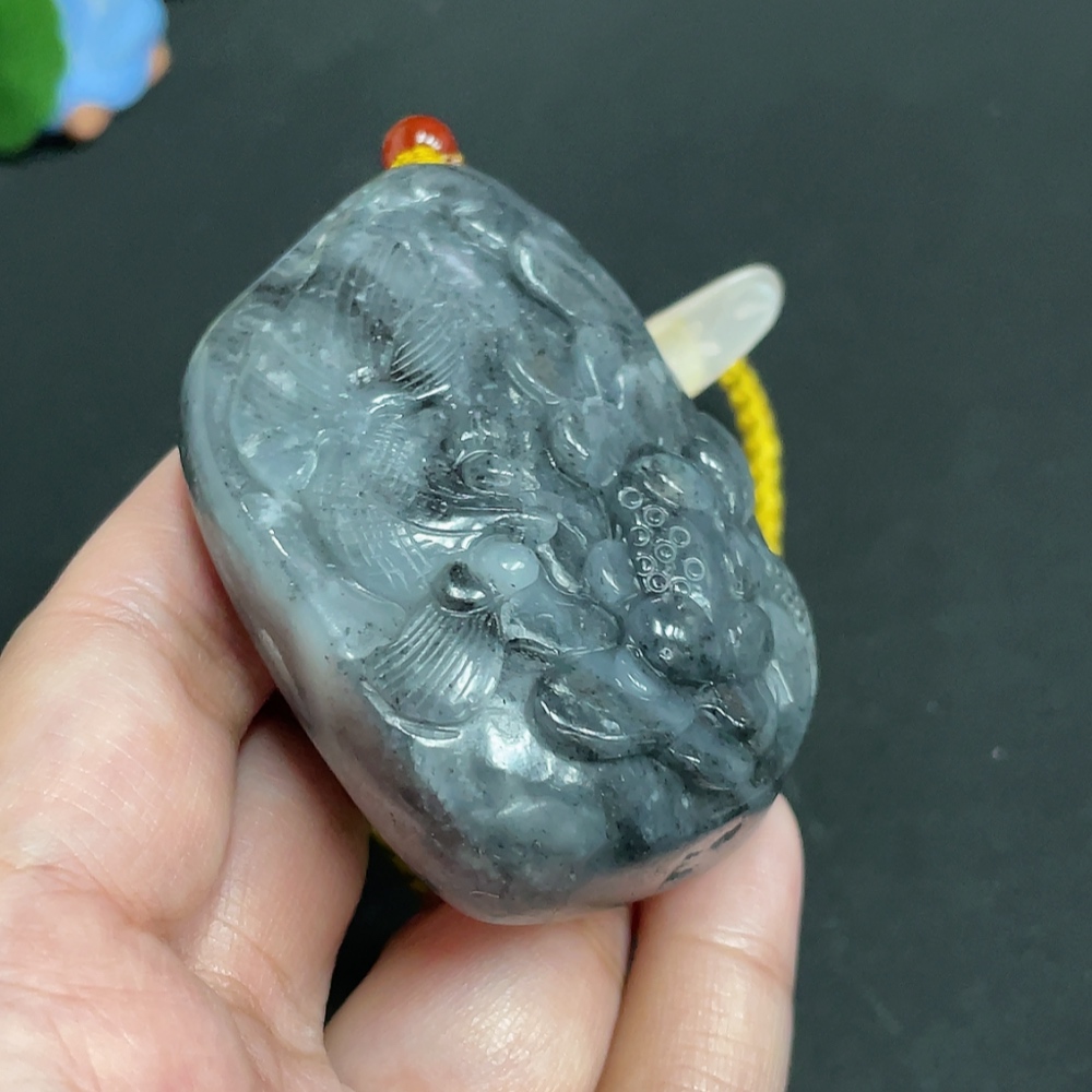 Hetian Jade Handheld Piece - Lotus and Fish Symbolizing Annual Abundance