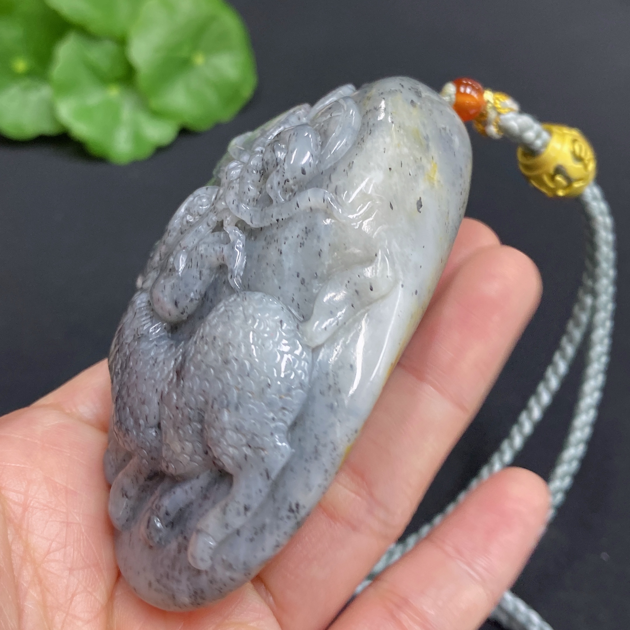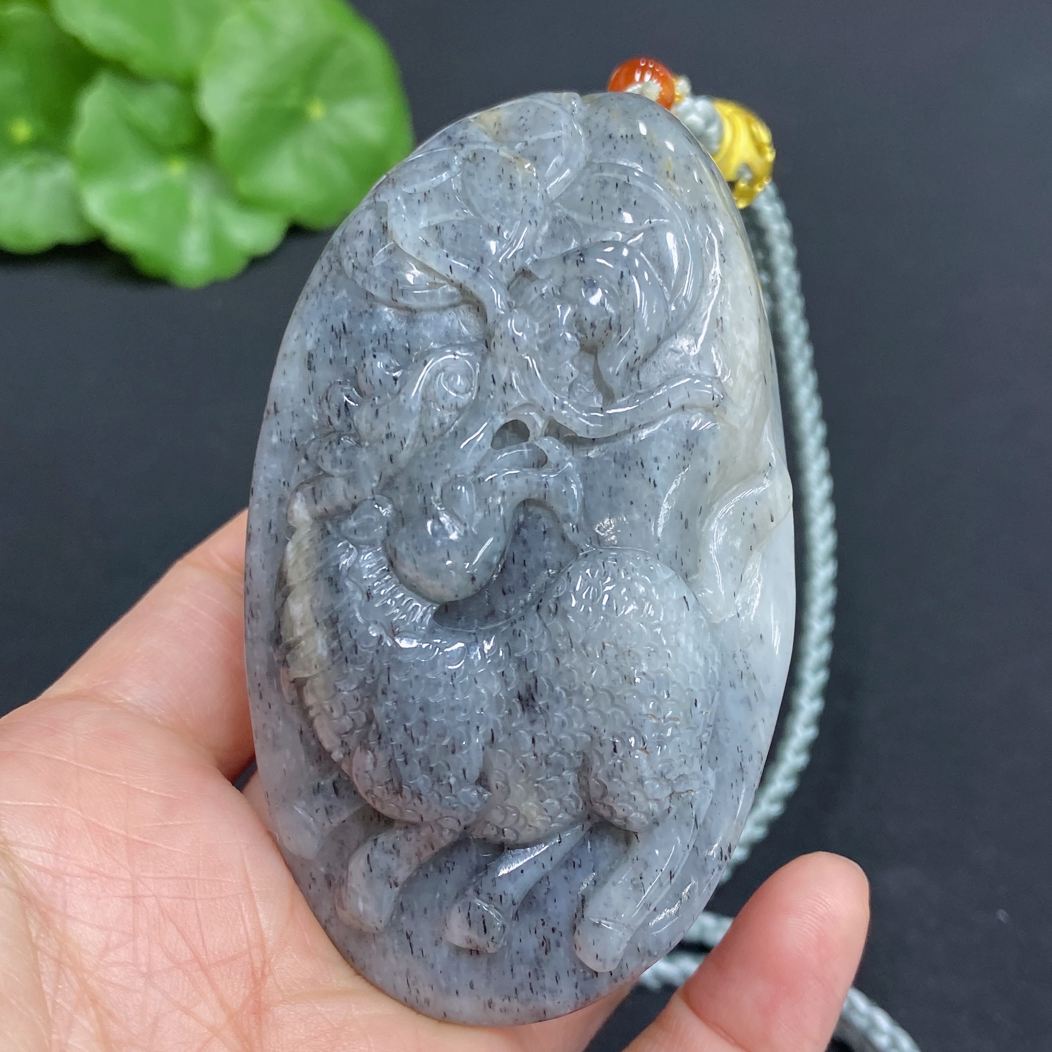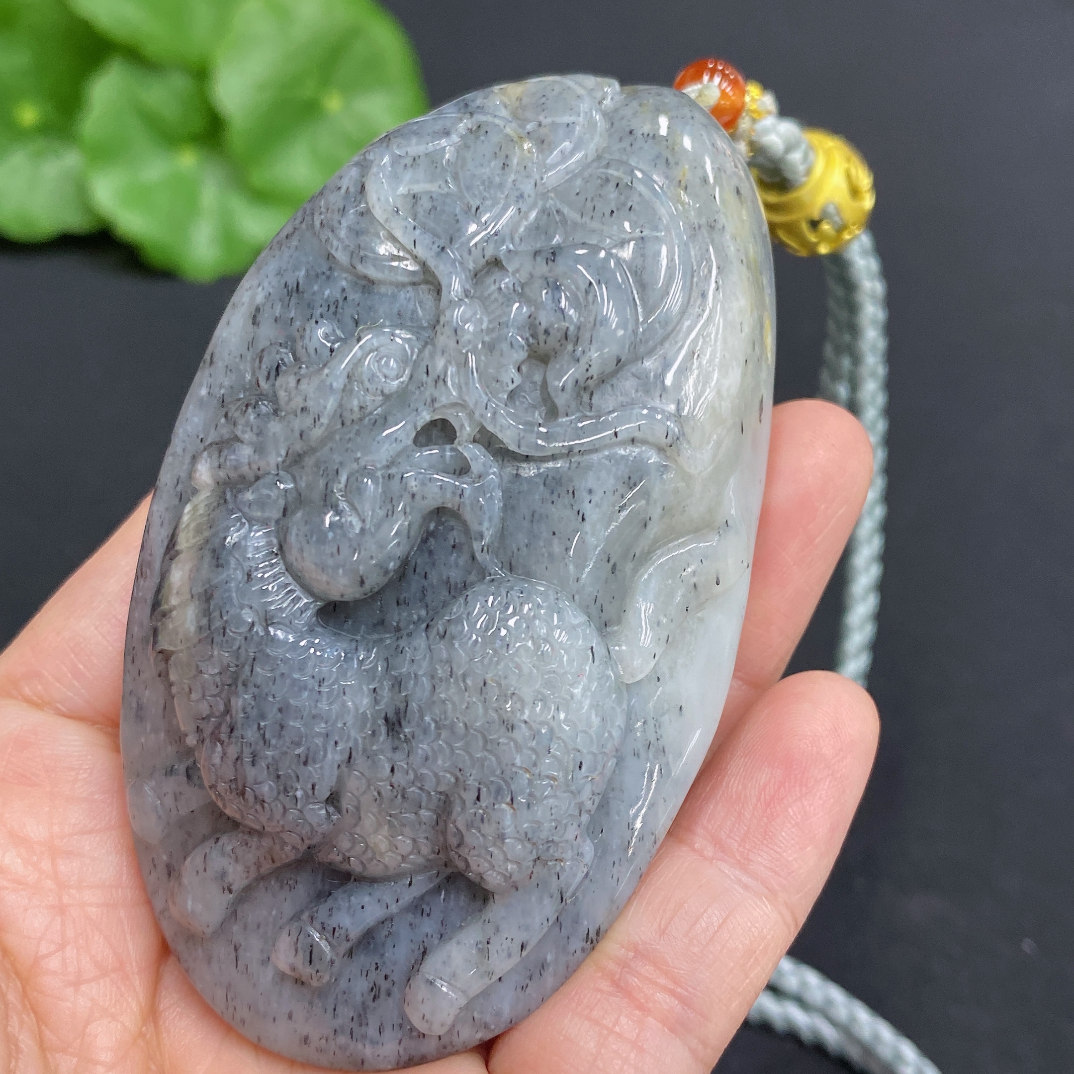 Hetian Jade Handheld Piece Kylin Gross Weight (with rope) Approx. 150.8g Undetermined Skin Color Cause