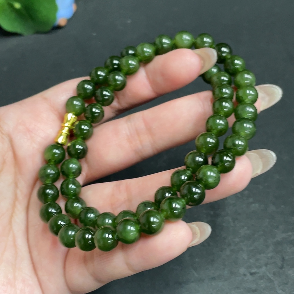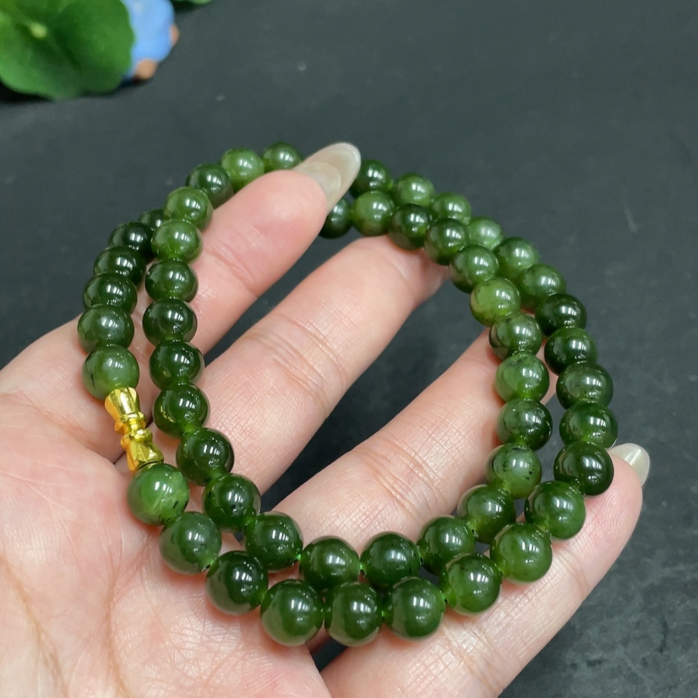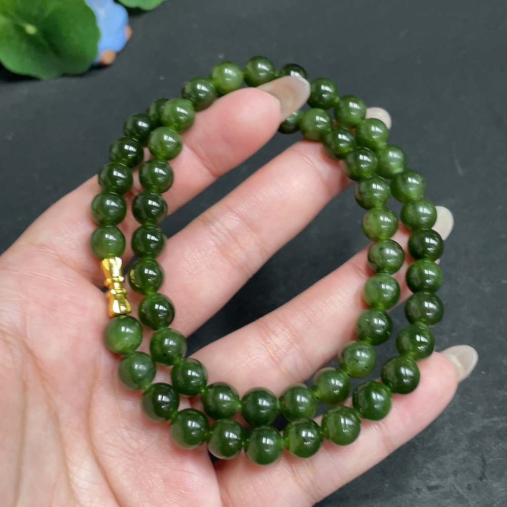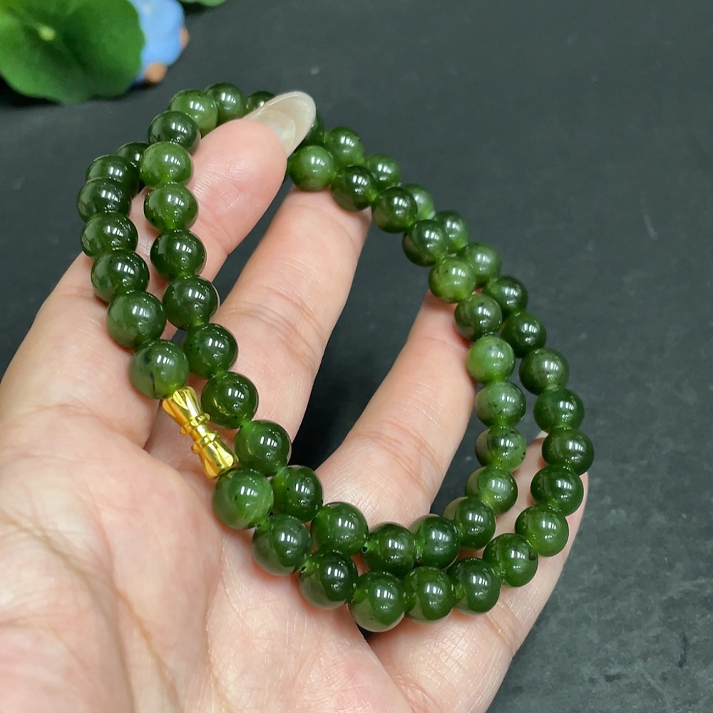 Hetian Jade Bead Necklace, Approx. 7.9 mm, Total Weight Approx. 45.6g, Non-Gold