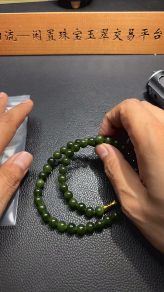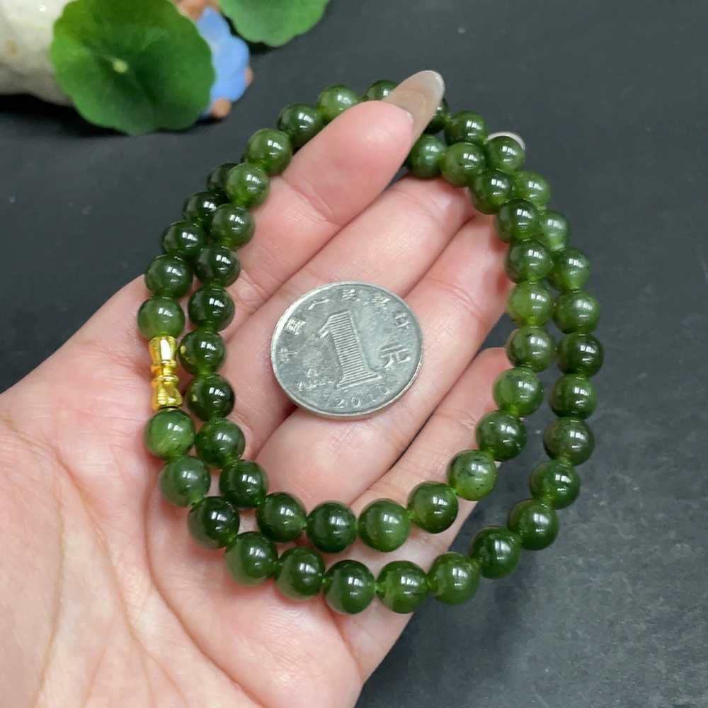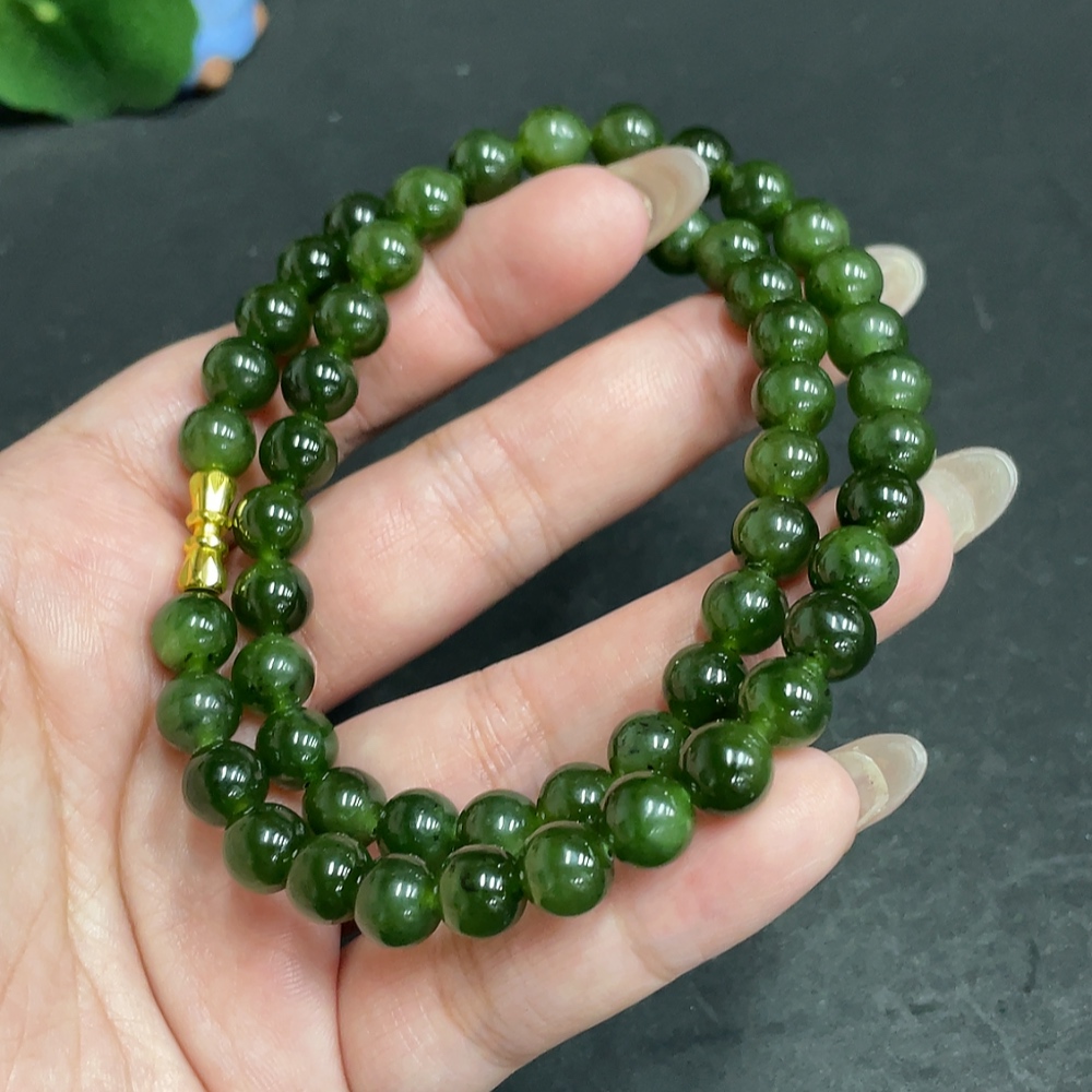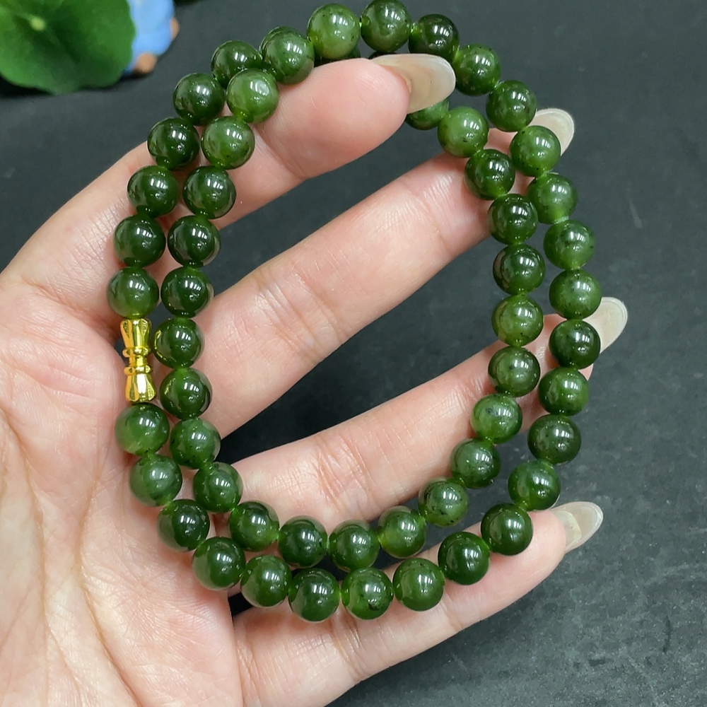 Hetian Jade Bead Necklace, Approx. 7.9 mm, Total Weight Approx. 45.6g, Non-Gold