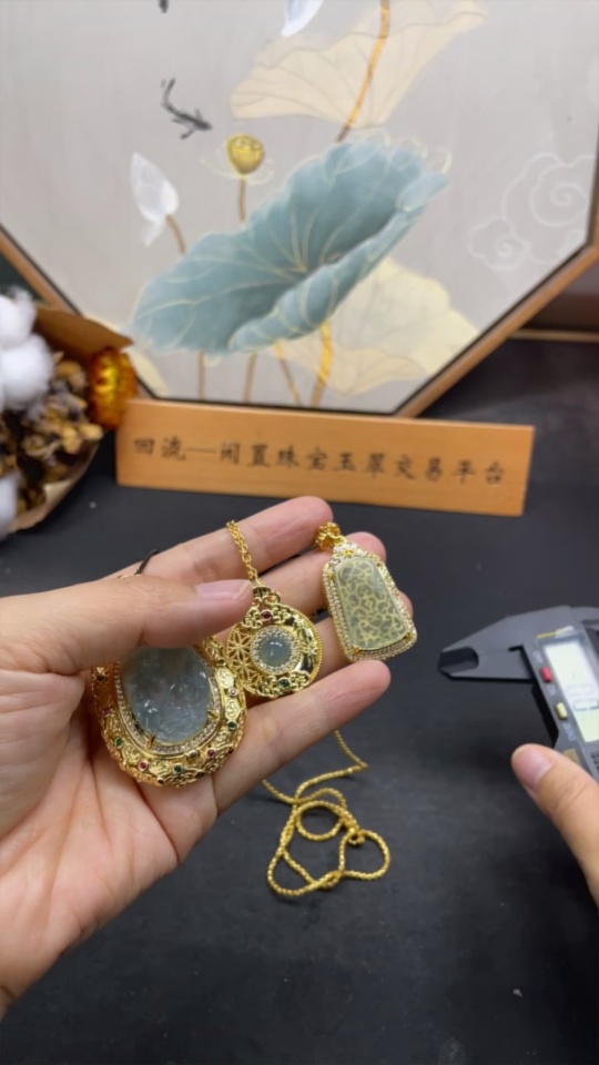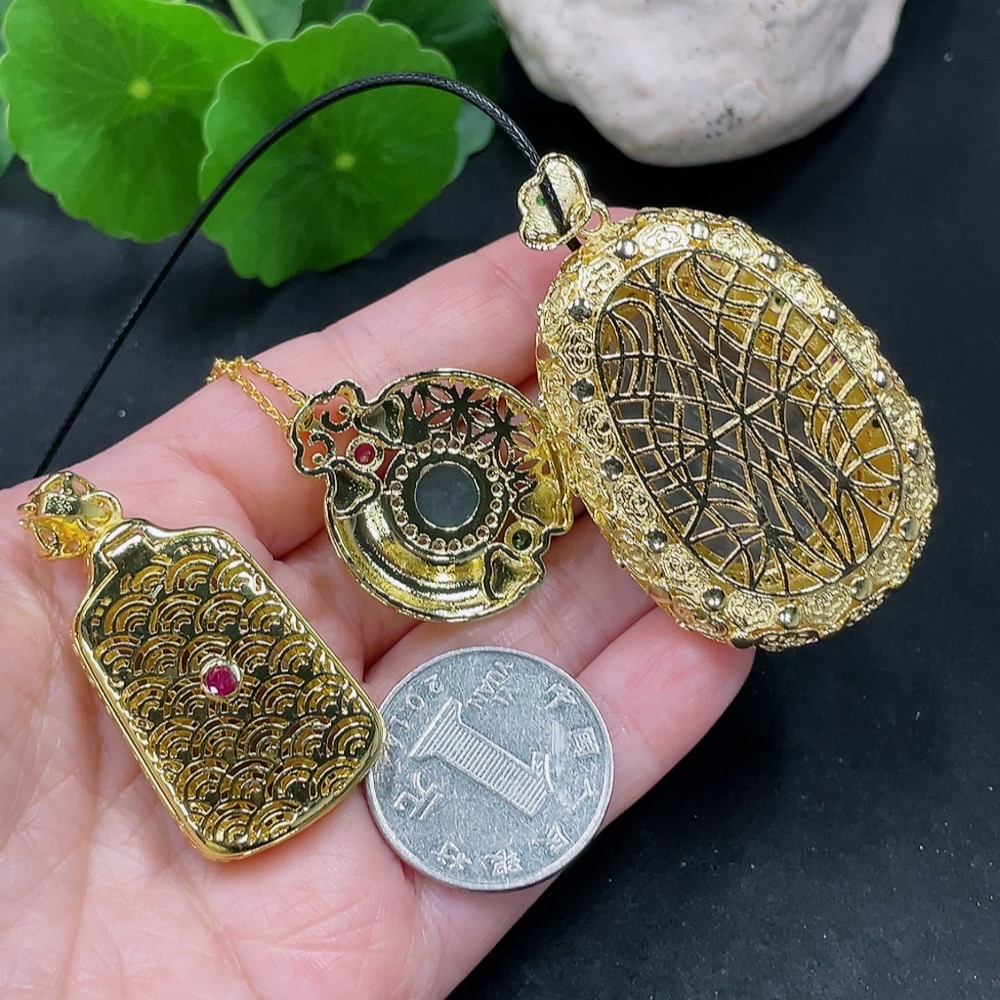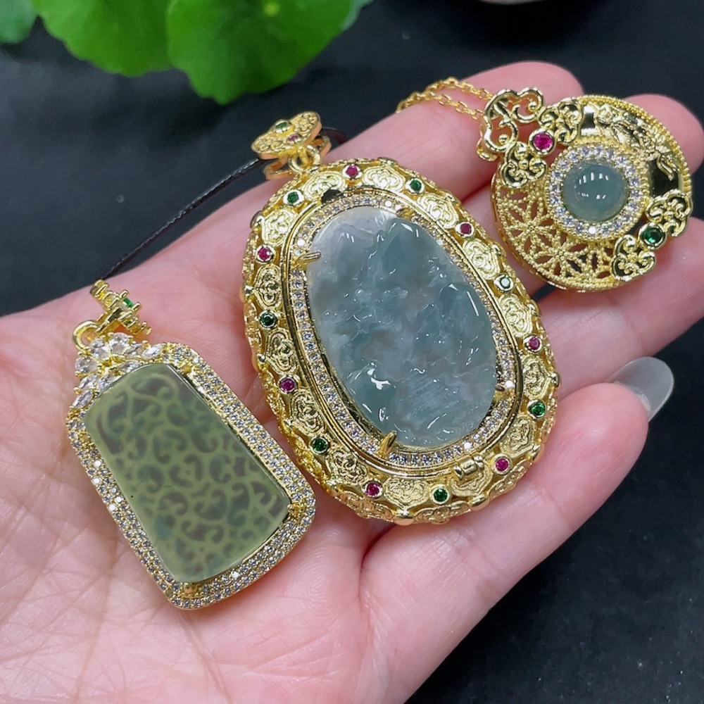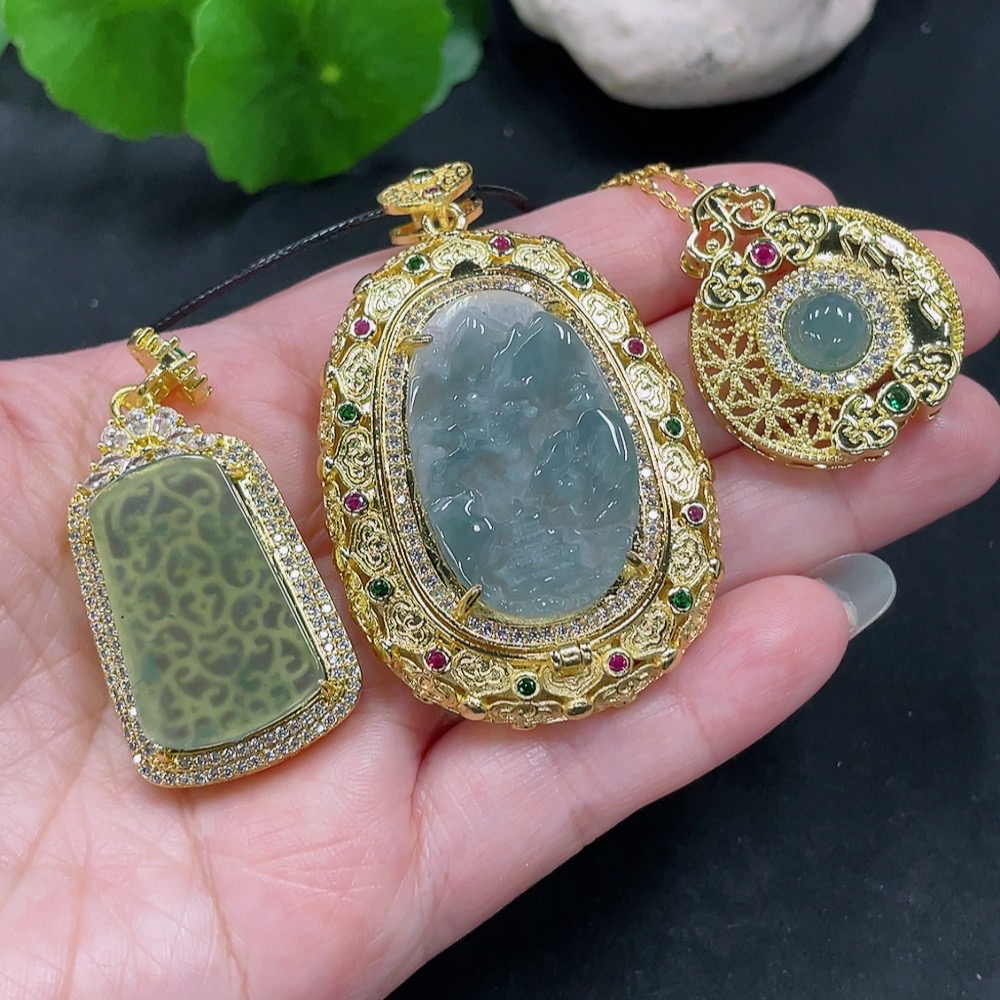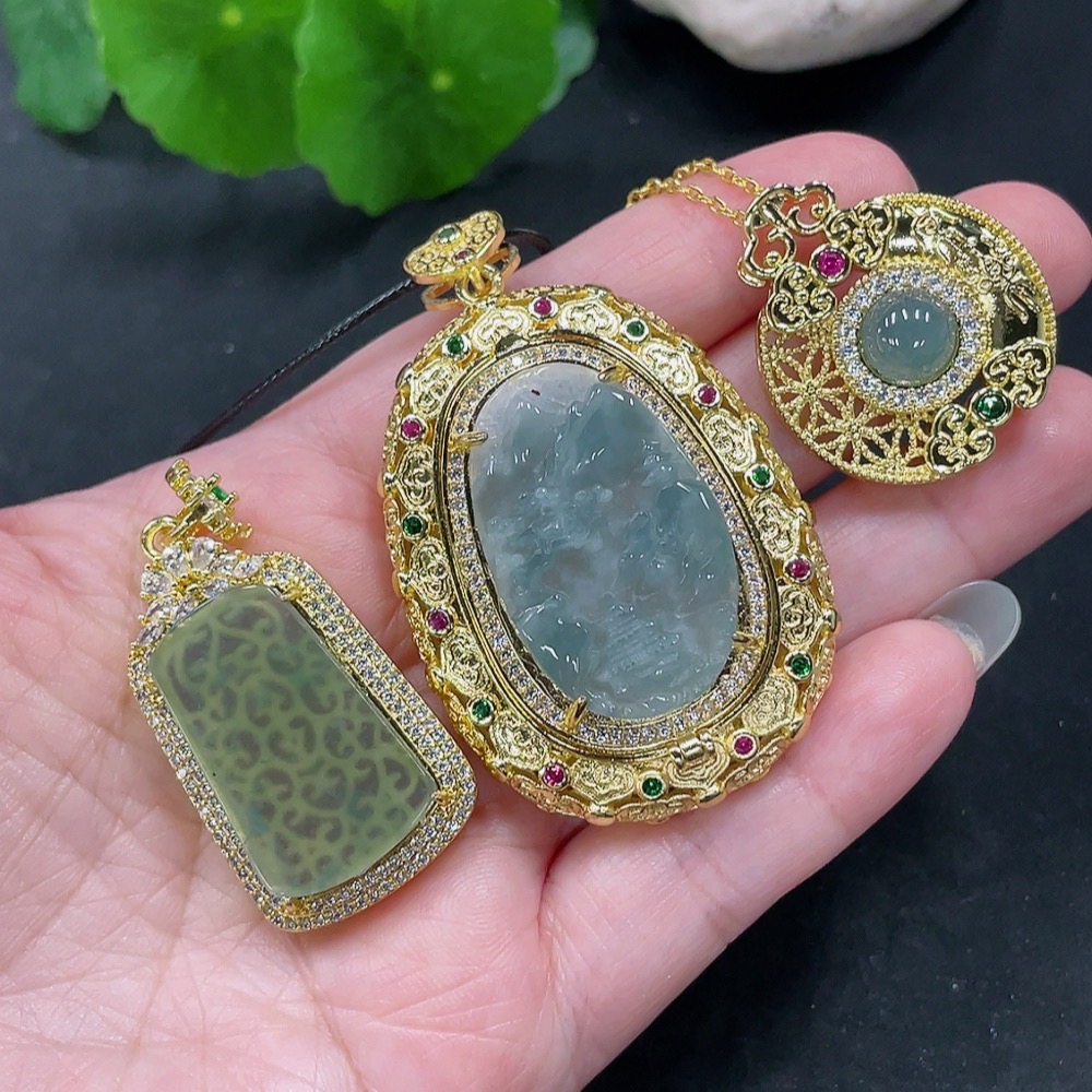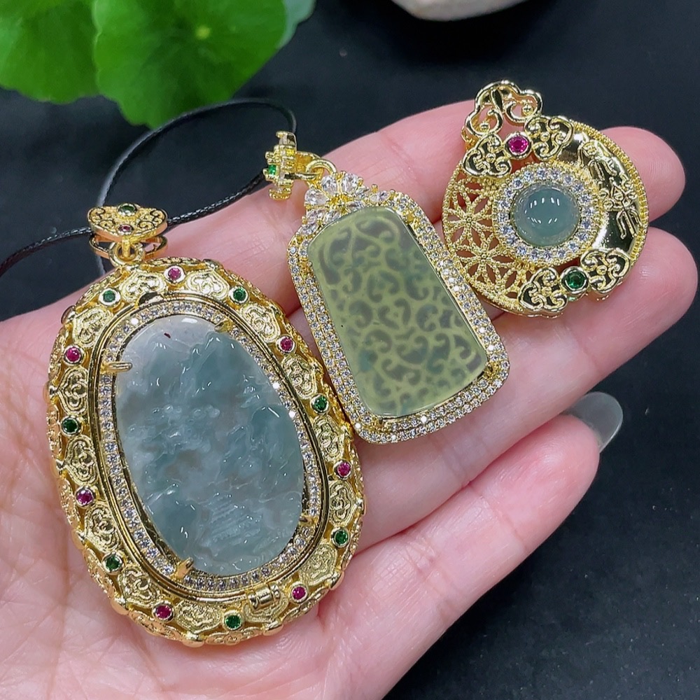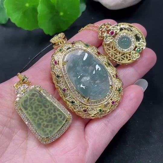 Jadeite Pendants Sell as a Lot (Non-Gold Inlaid)