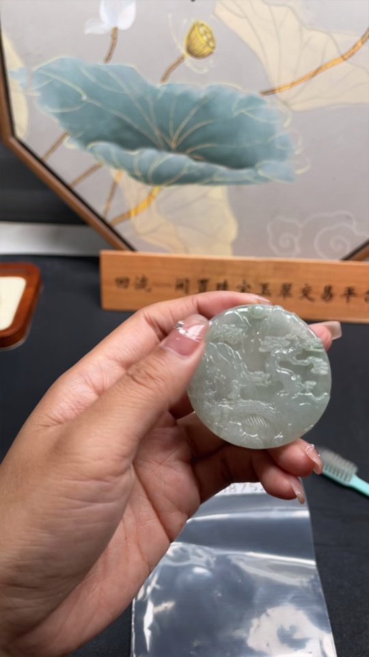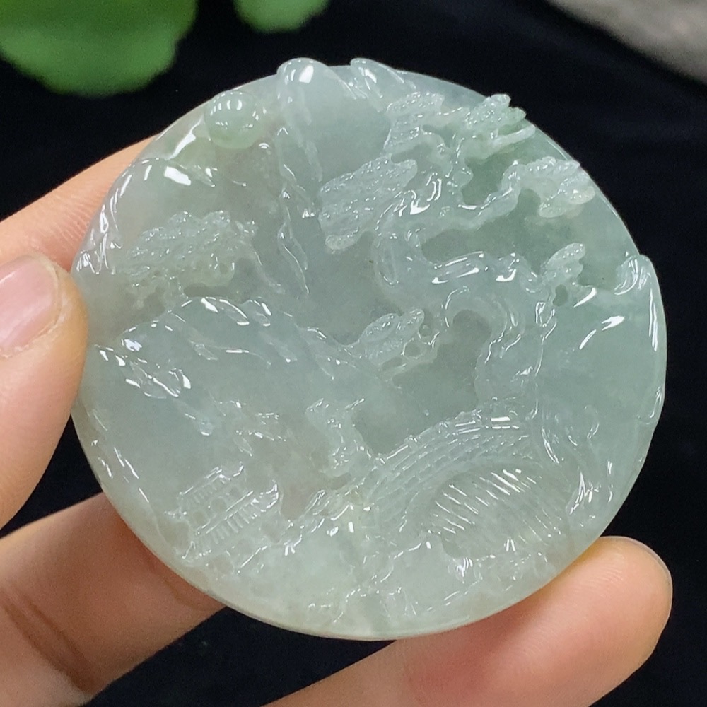Jadeite Landscape Pendant Total Weight Approx. 35.71g