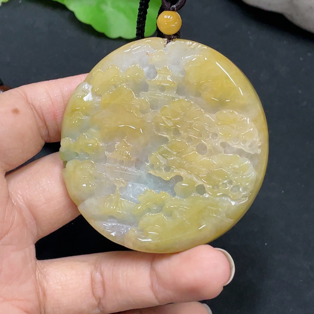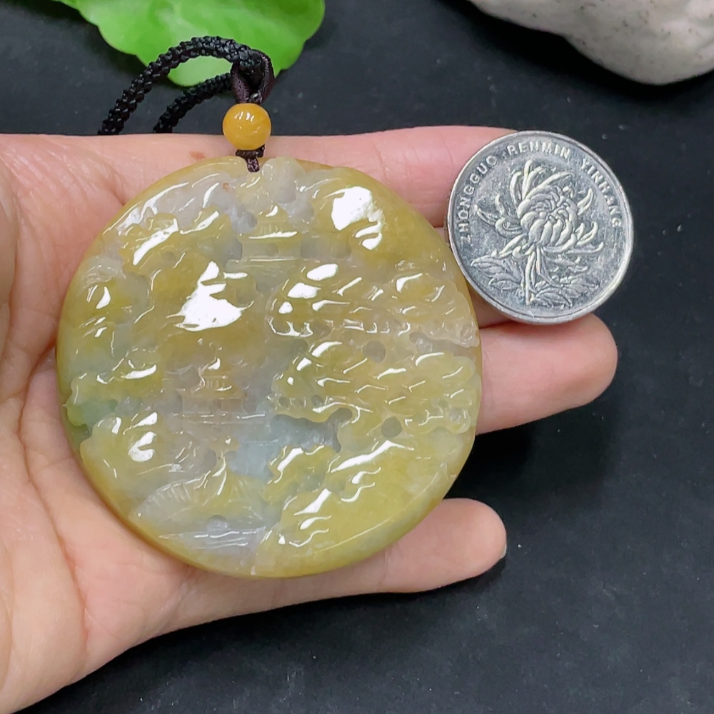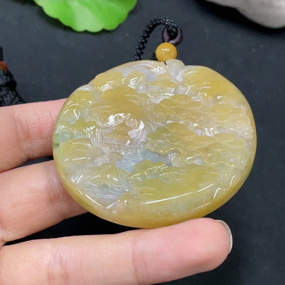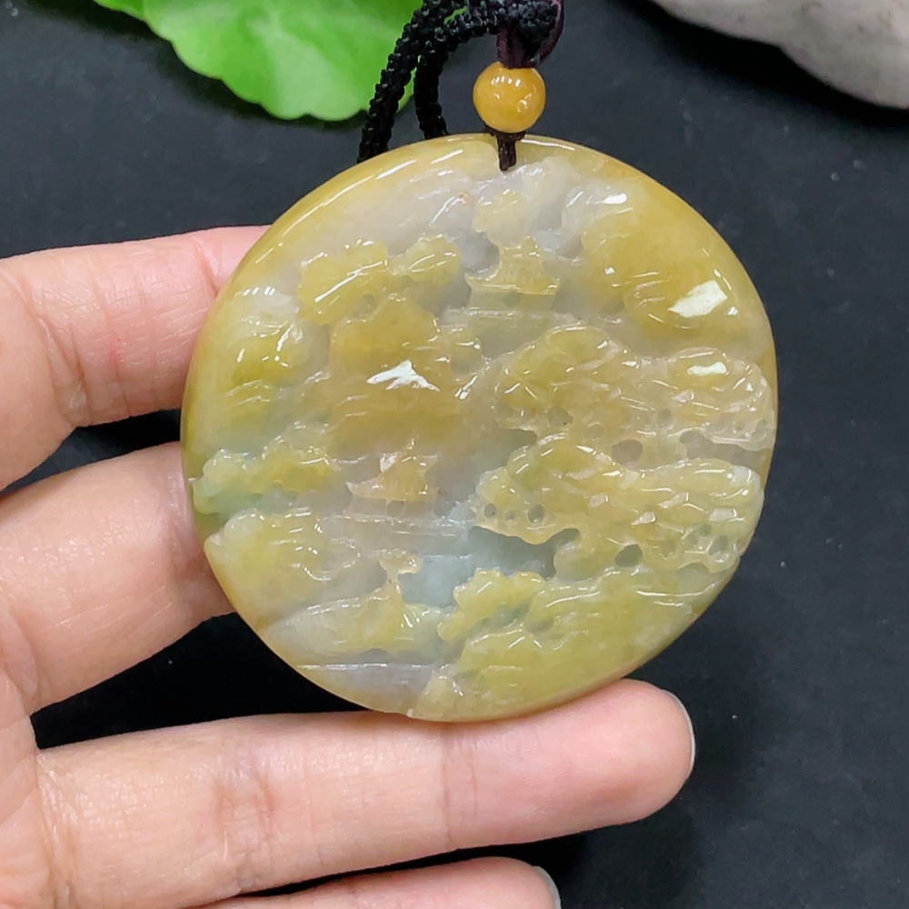Jadeite Landscape Pendant Total Weight Approx. 48.81g (including rope) Color Origin Undetermined Non-gold