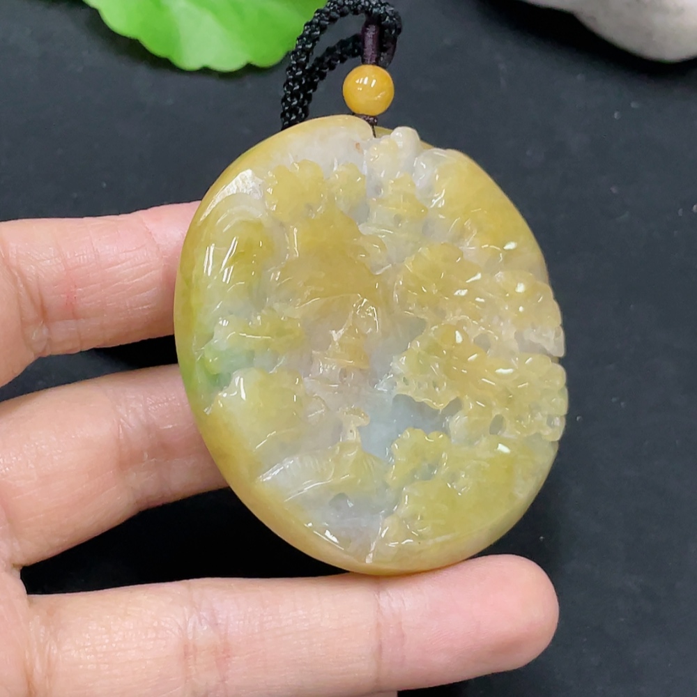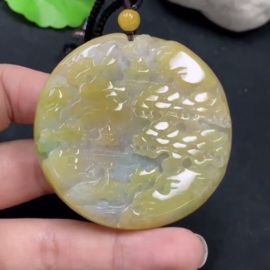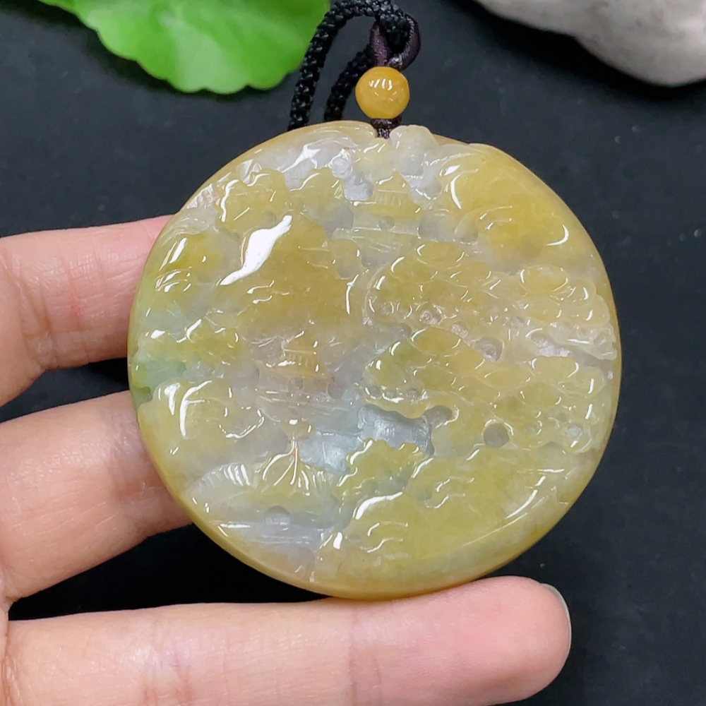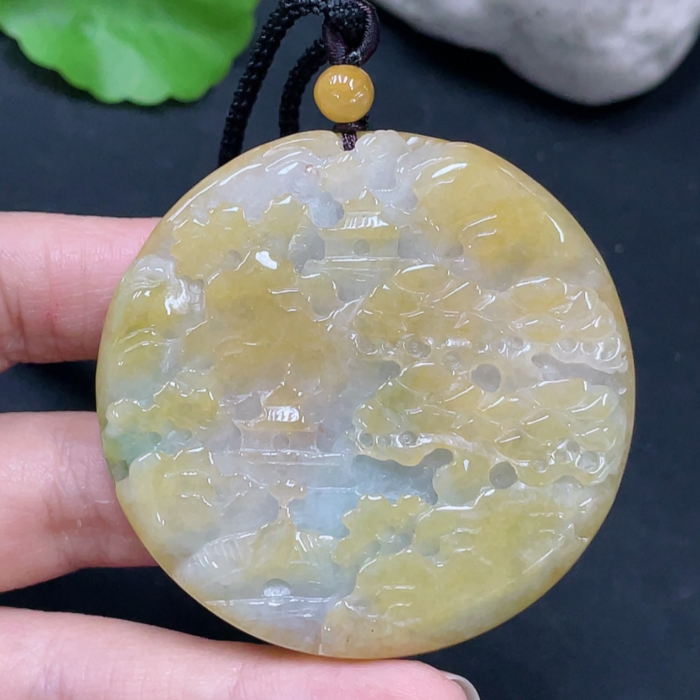 Jadeite Landscape Pendant Total Weight Approx. 48.81g (including rope) Color Origin Undetermined Non-gold