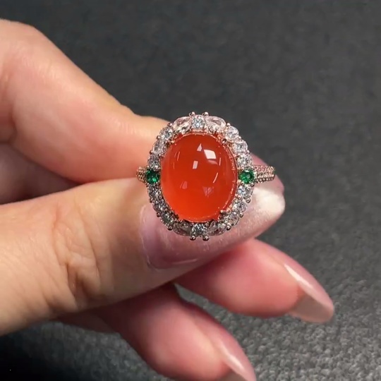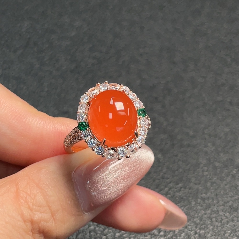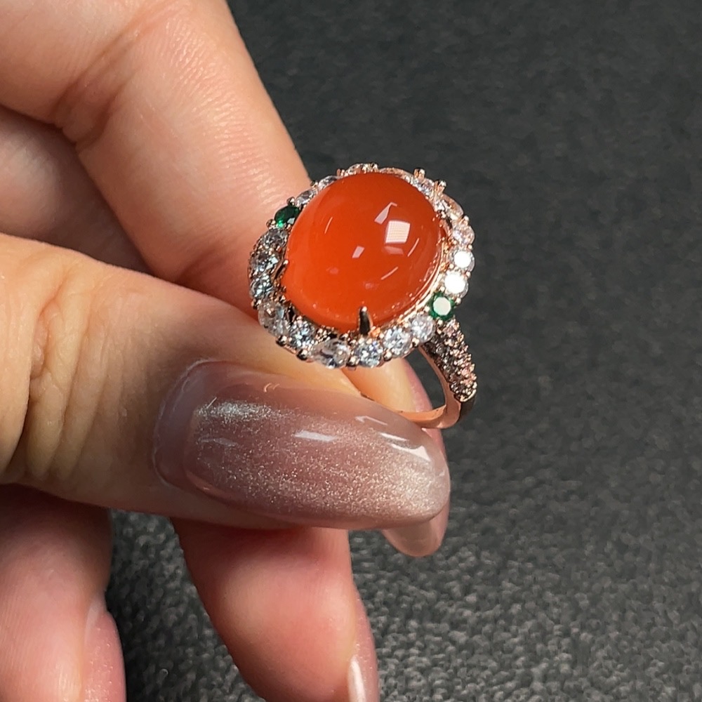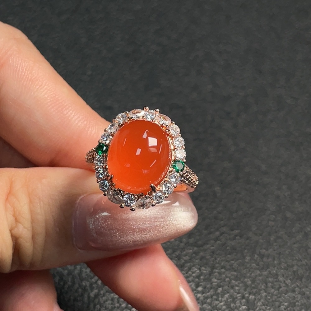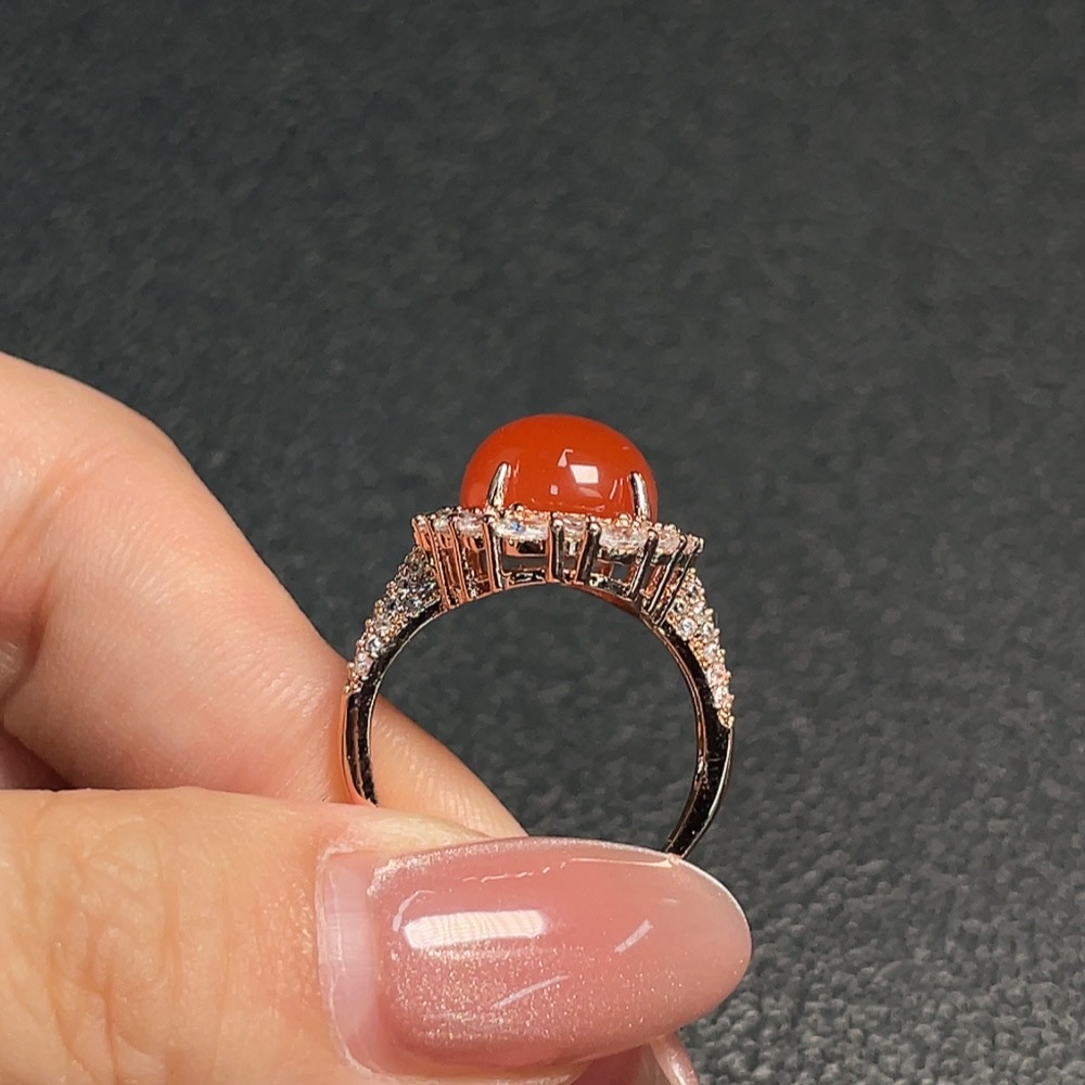 Red Agate Inlaid Ring (Non-gold Setting, Adjustable, Total Weight Approx. 4.69g)
