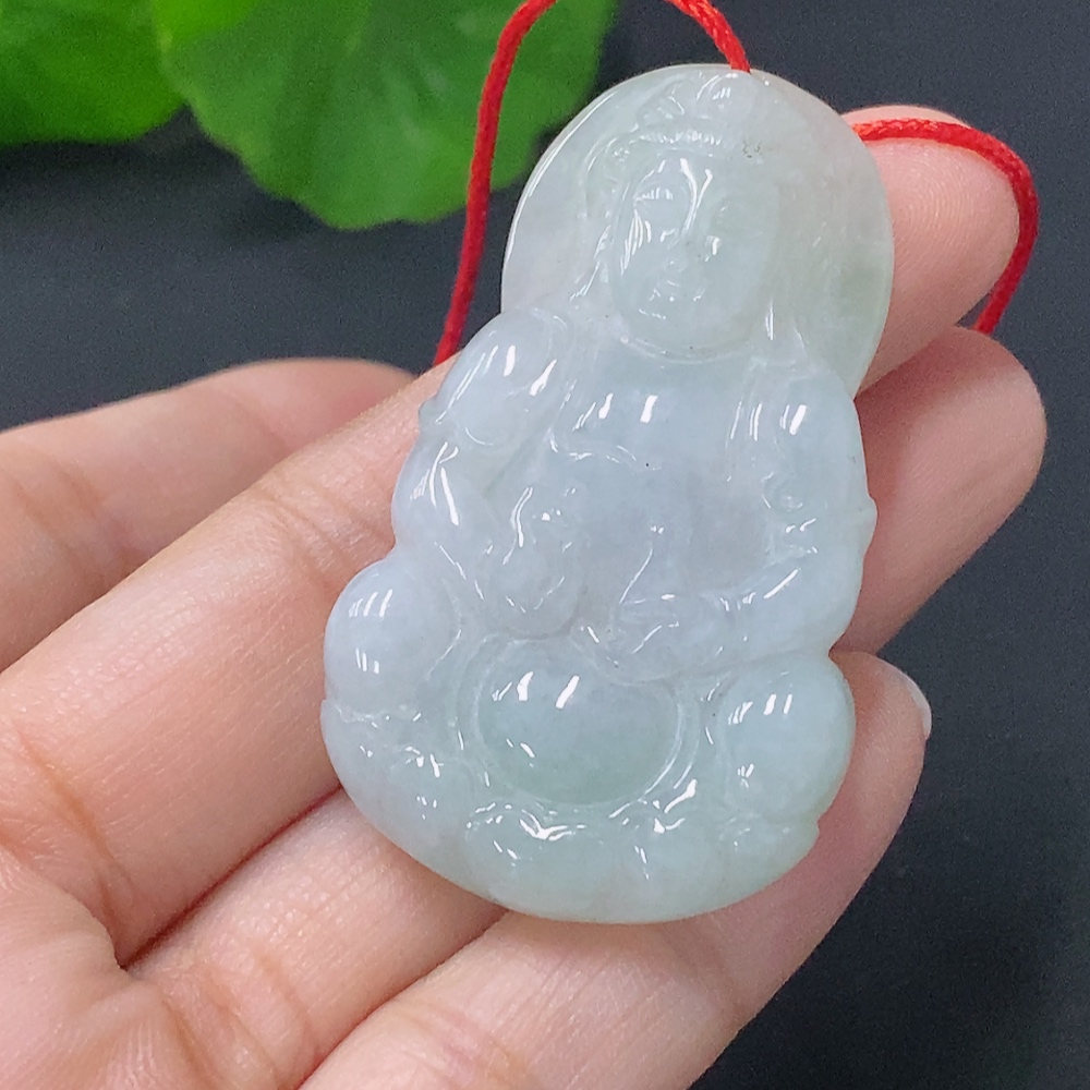 Jadeite Pendant Guanyin Total Weight: Approx. 17.14g (Incl. Rope)
