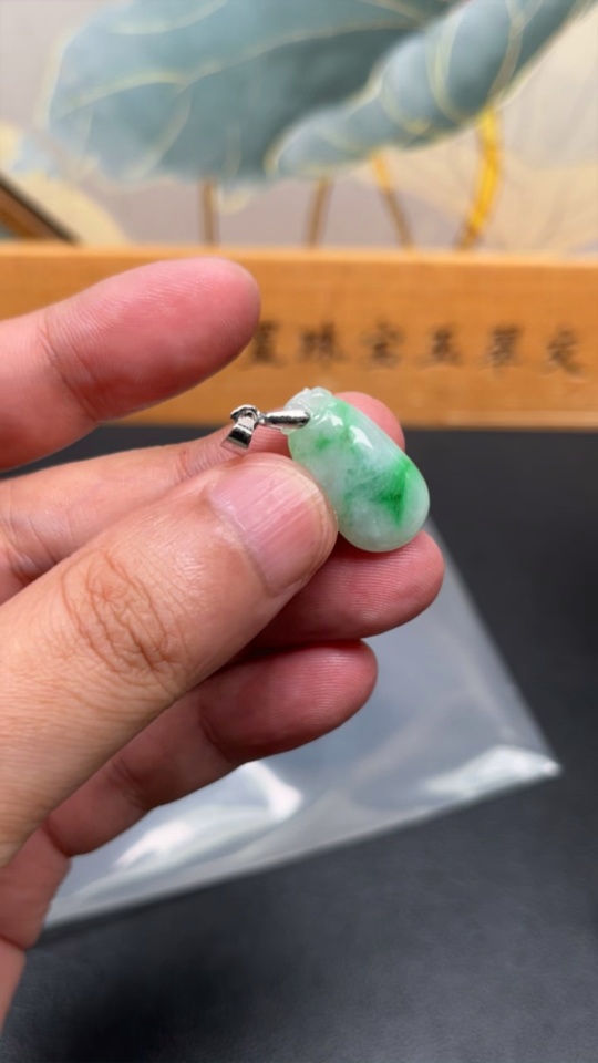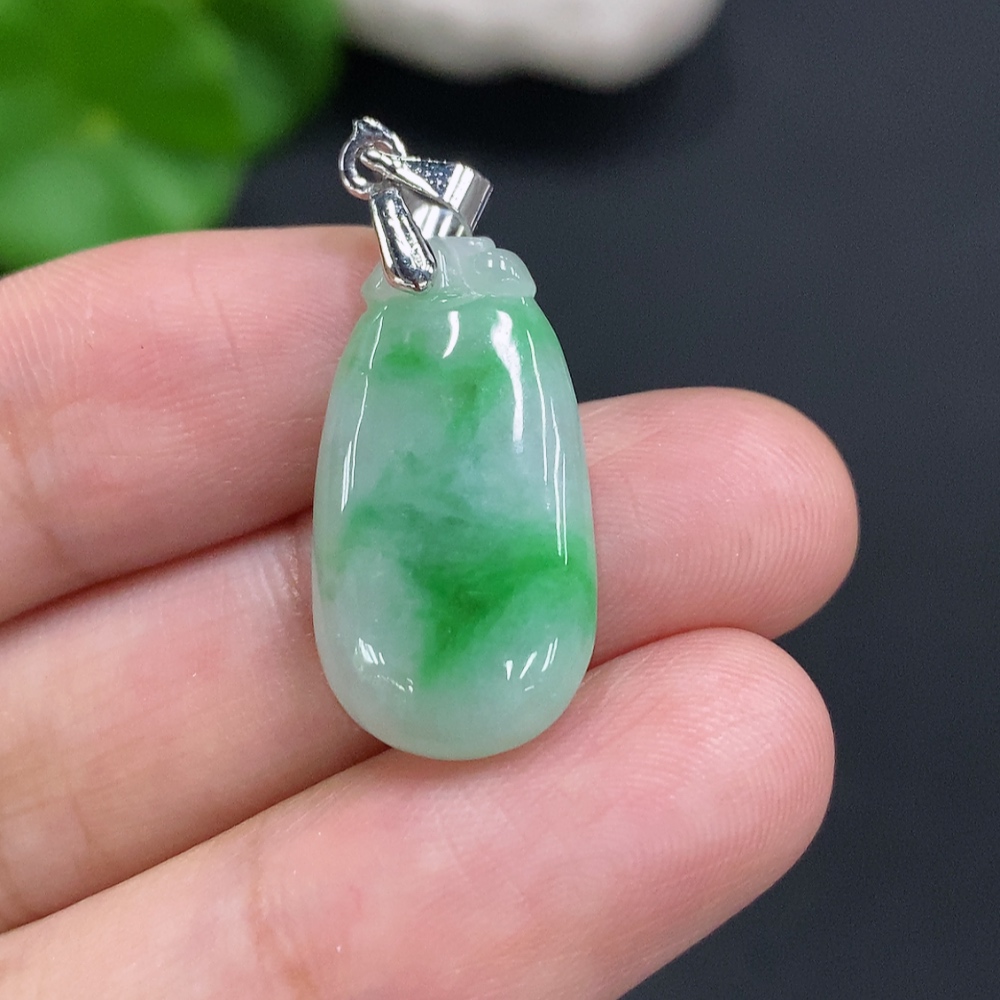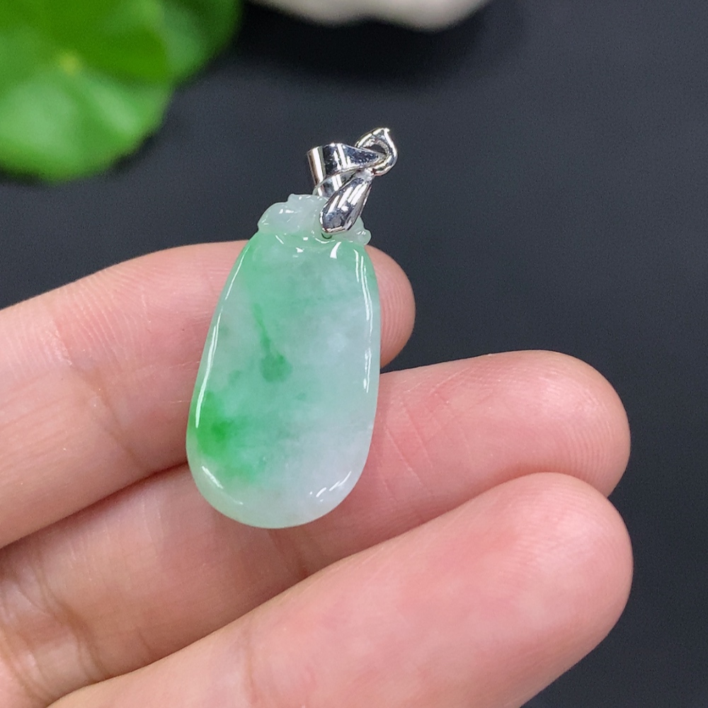 Jadeite Auspicious Melon Pendant Non-Gold Inlaid Total Weight Approx. 2.9g
