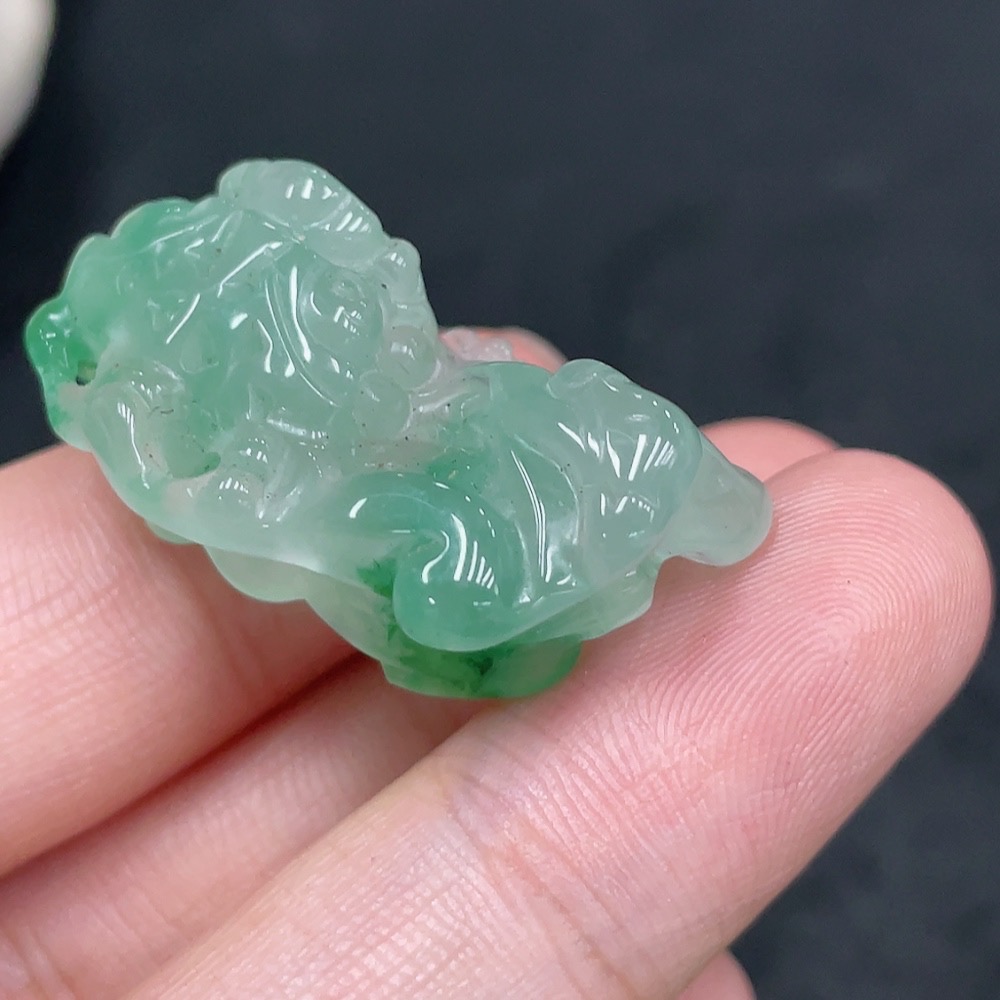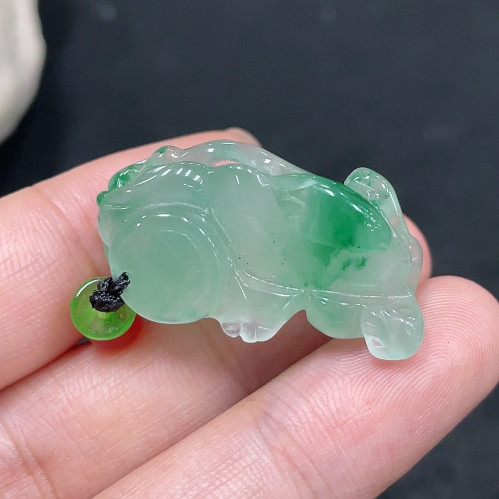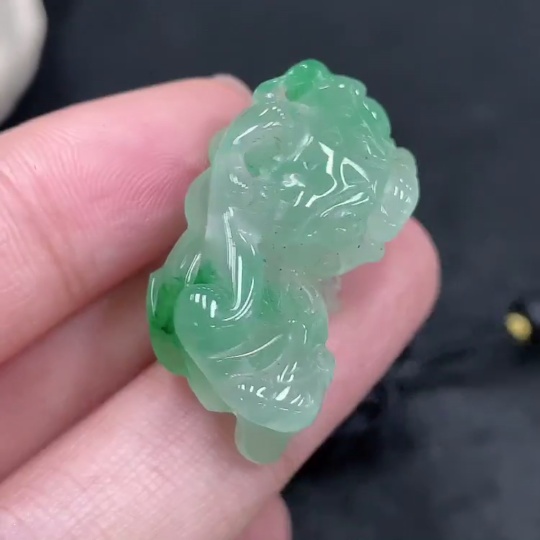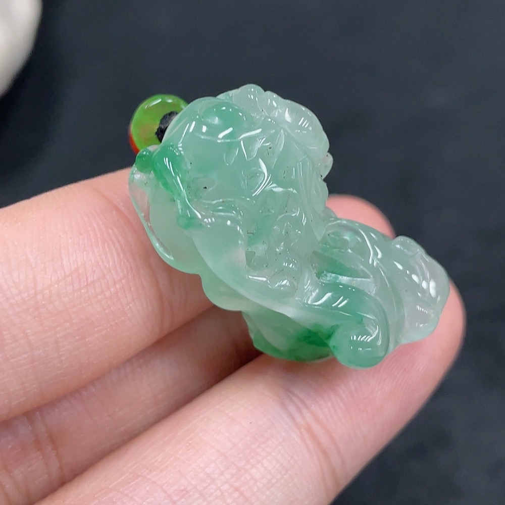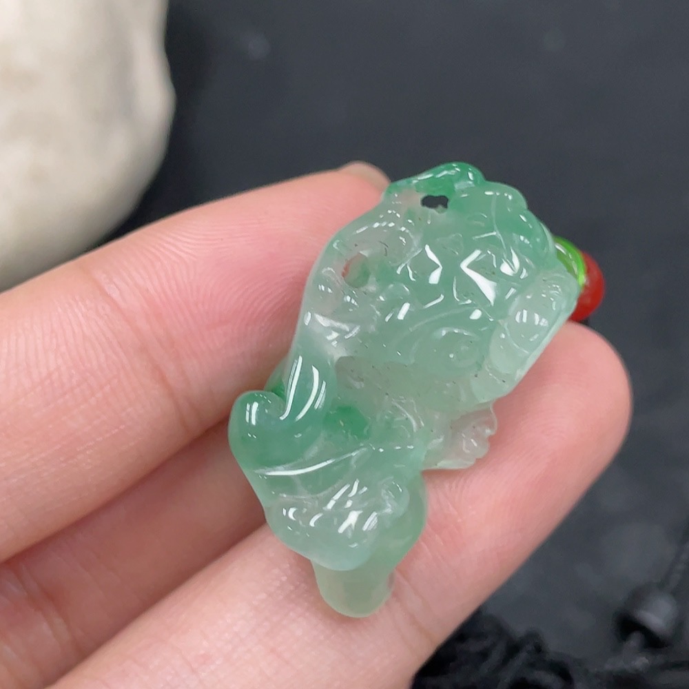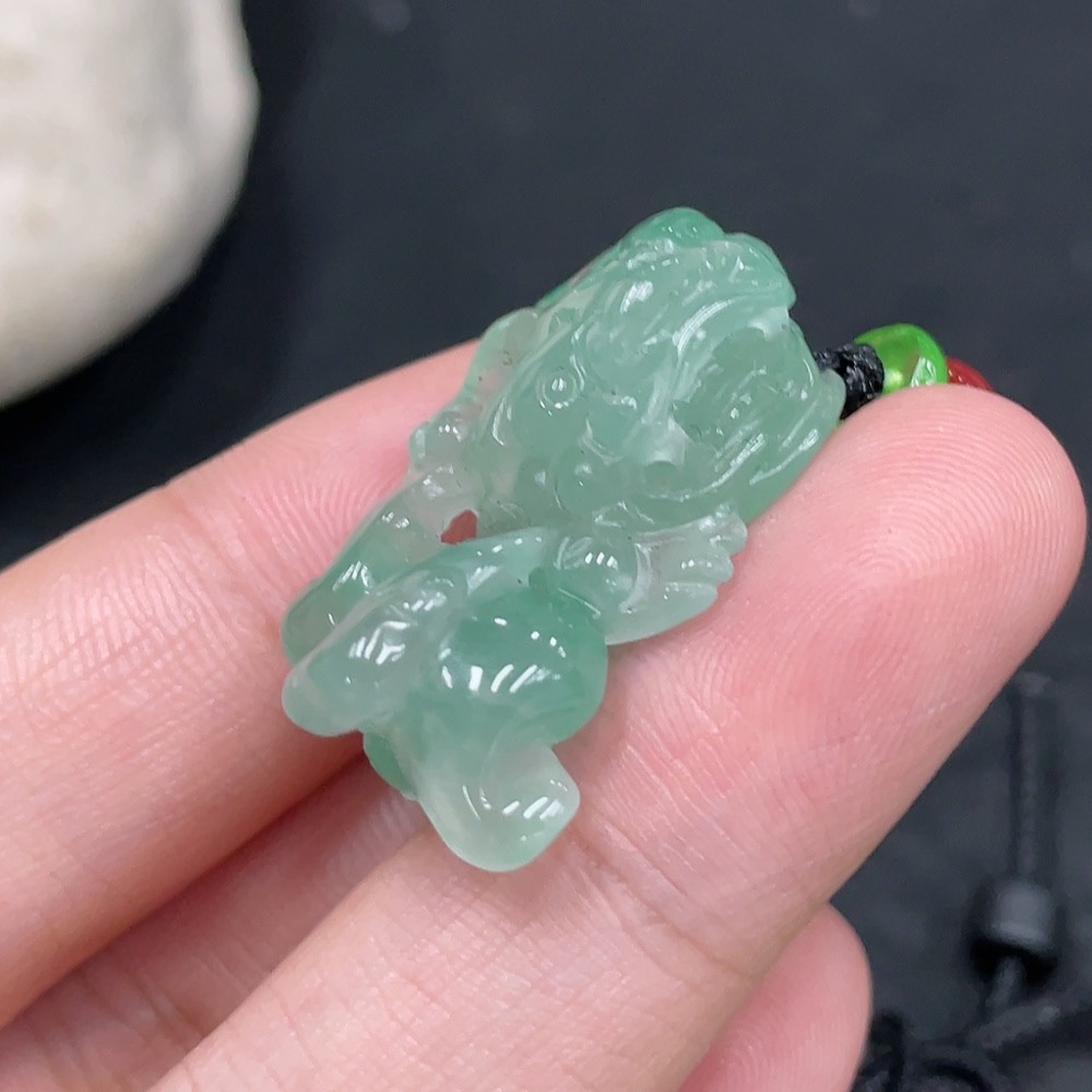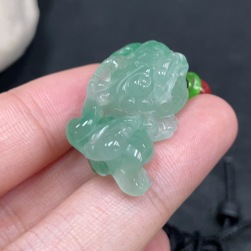 African Emerald (Dulong Jade) Pendant Pixiu with Non-Dulong Jade Beads, Total Weight Approx. 9.8g (Including Cord)