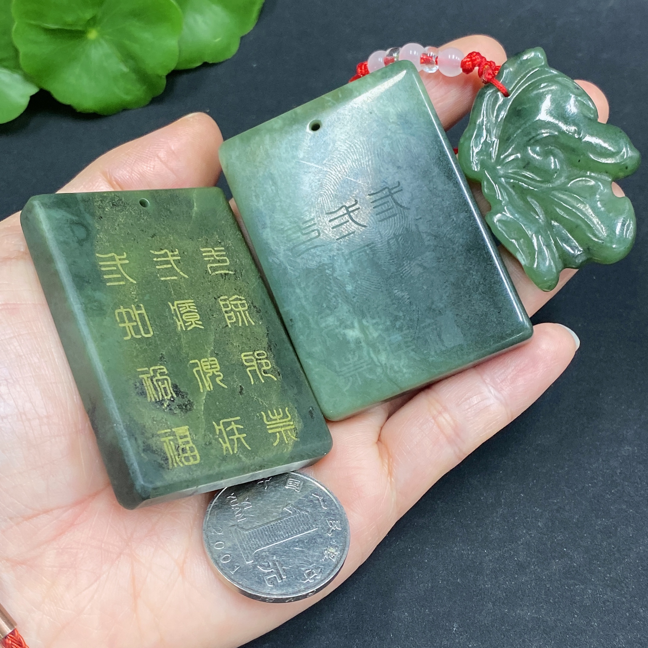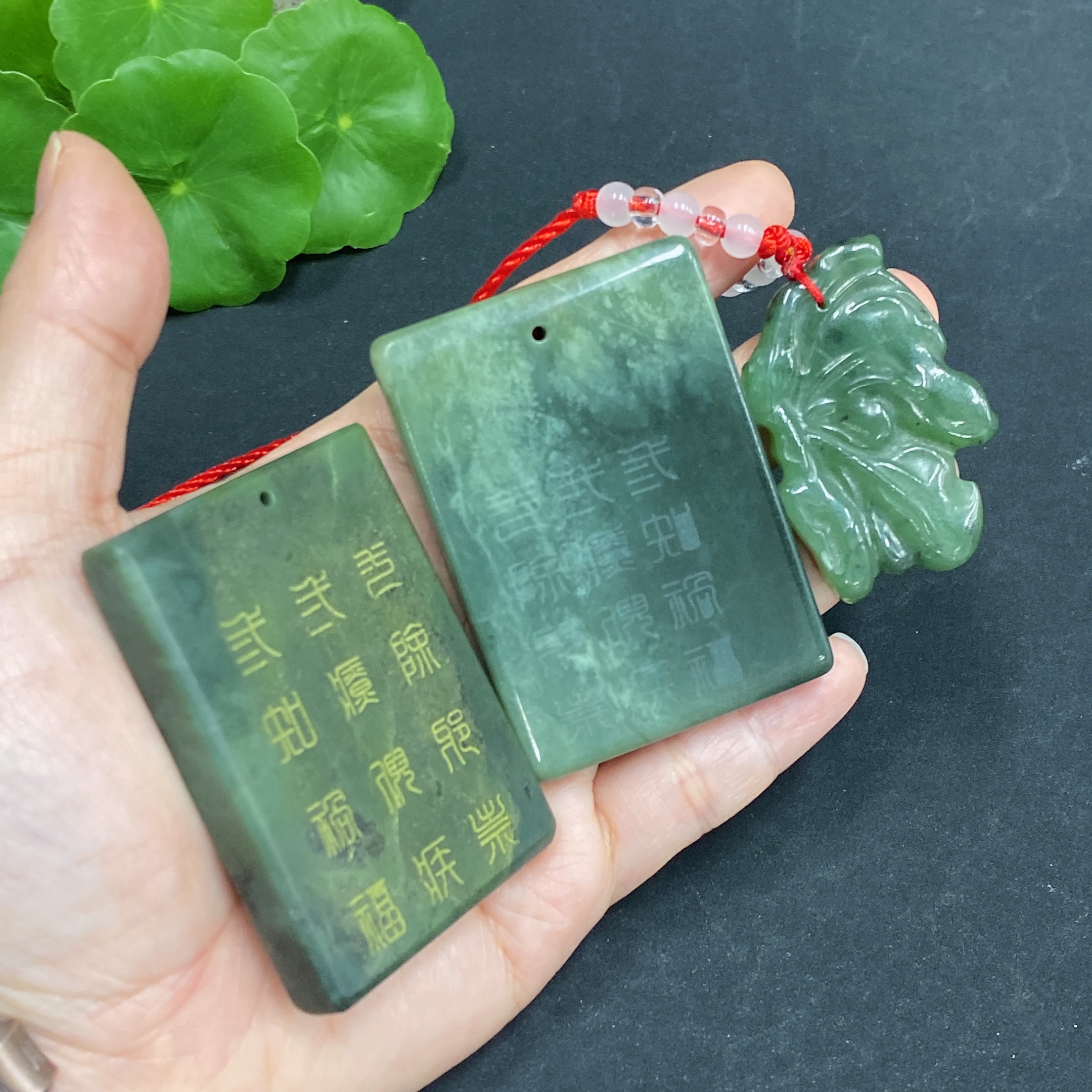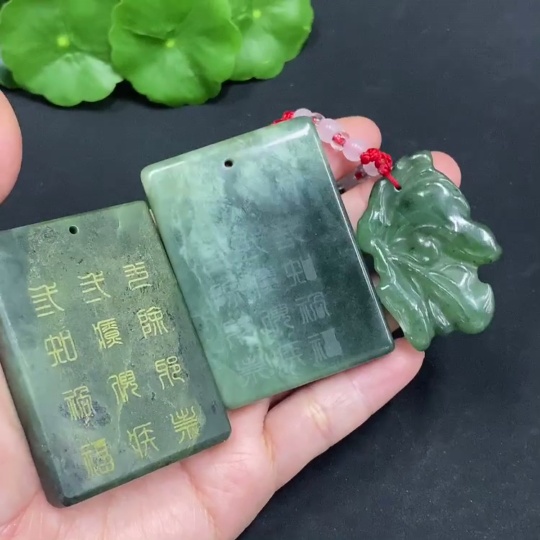 Hetian Jade Pendant Containing Other Mineral Components Total Weight (Including String) Approx. 127g