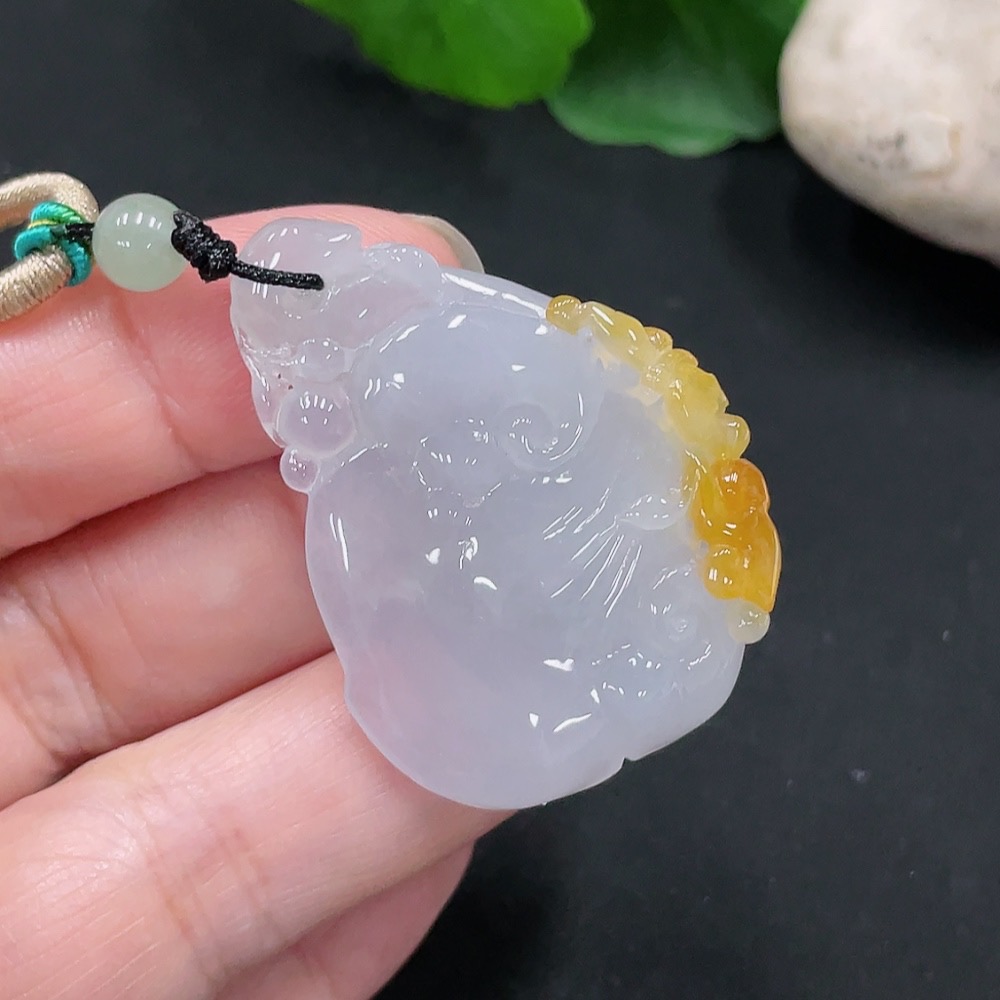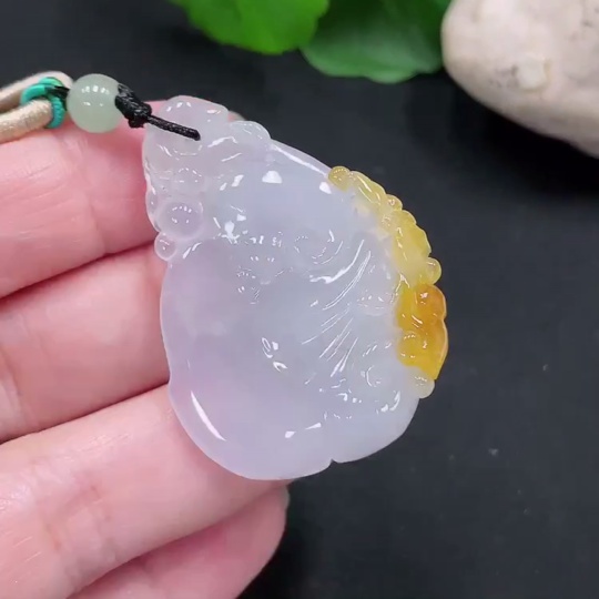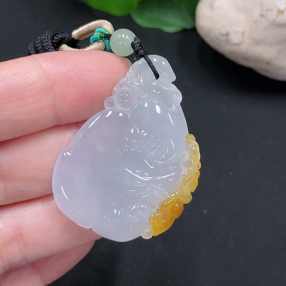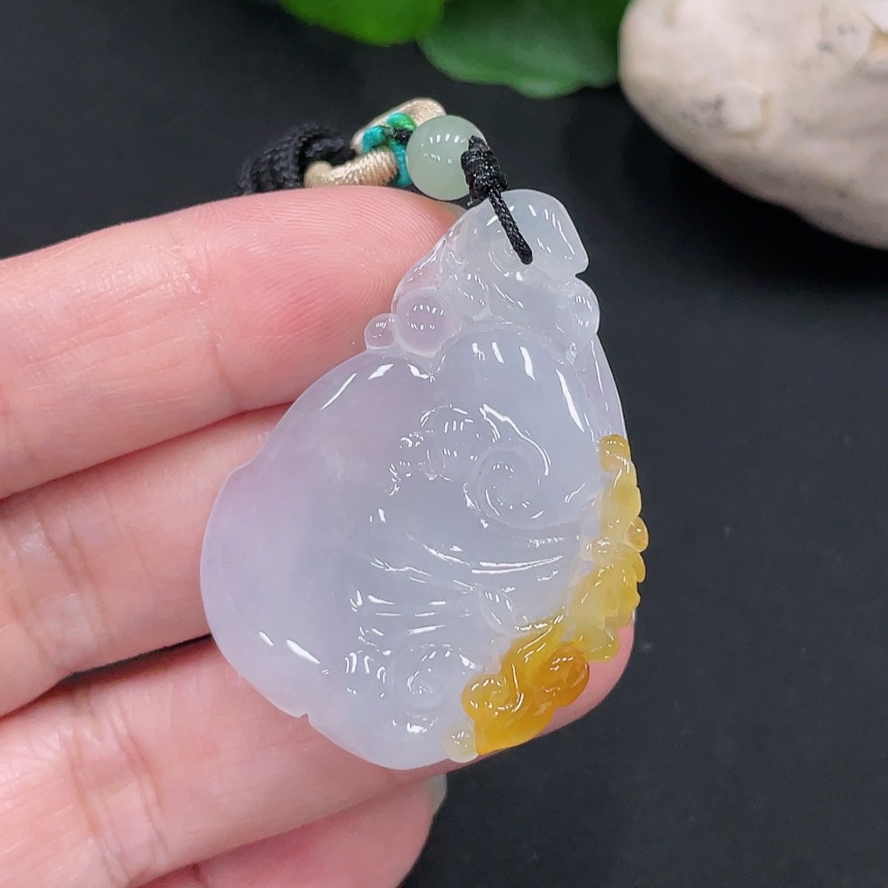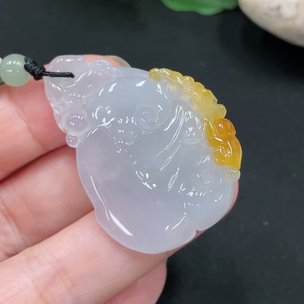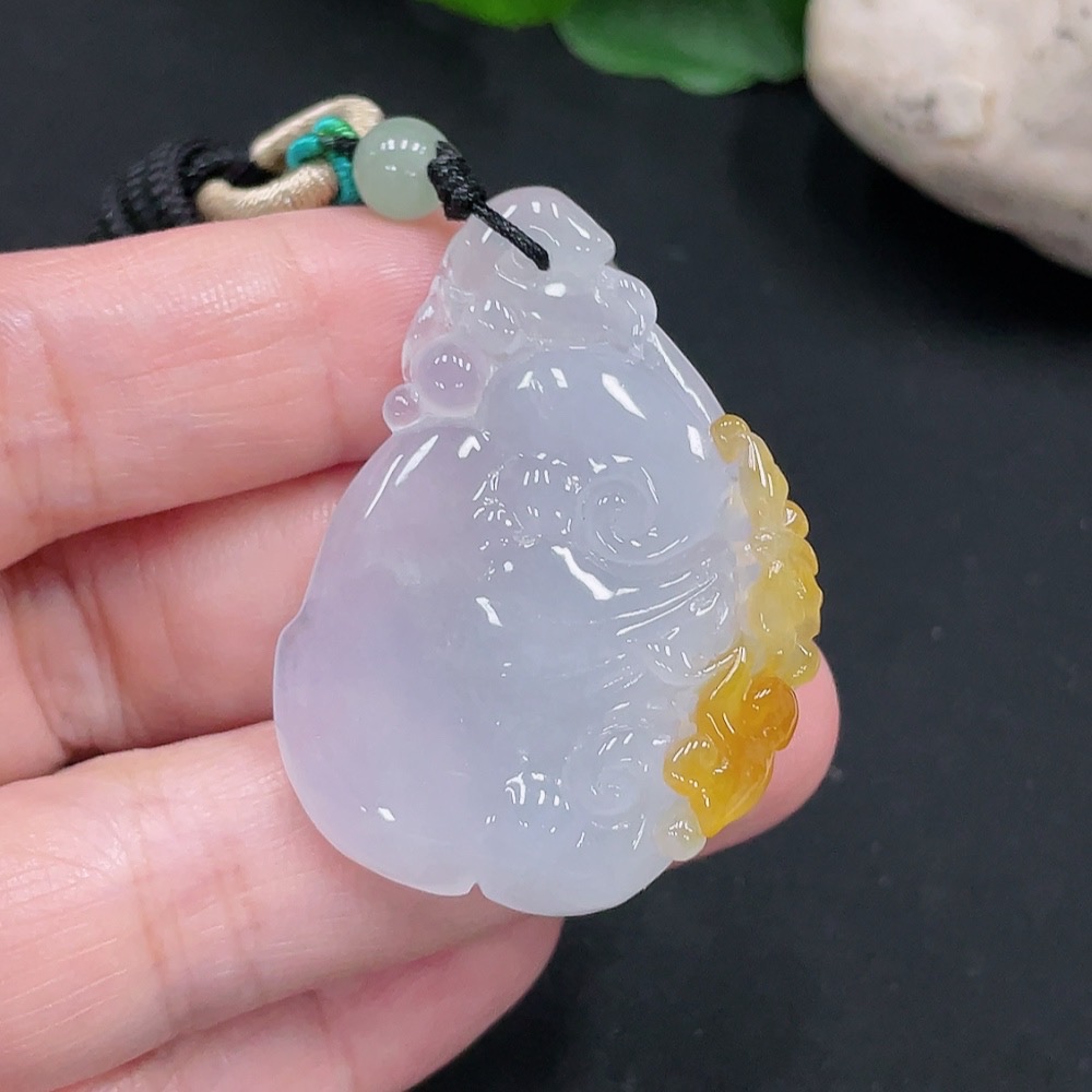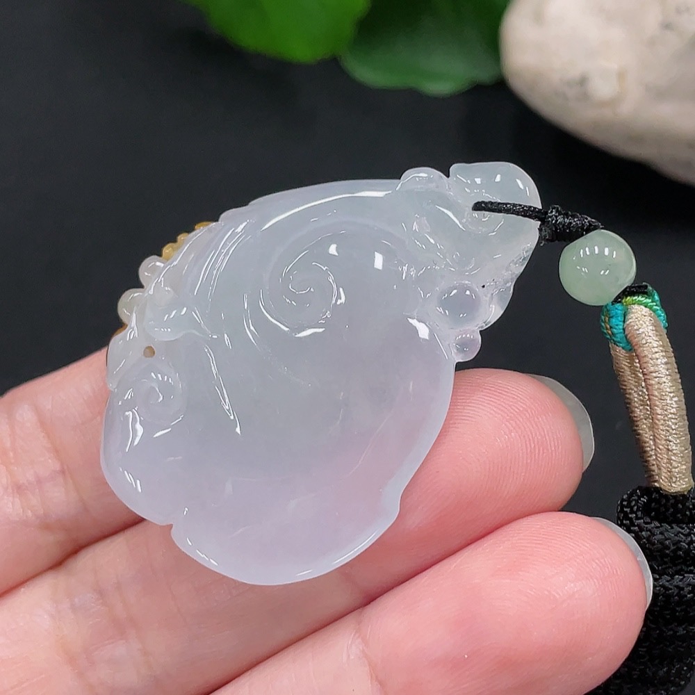 Jadeite Ruyi Pendant Total weight approx. 16.3g (including rope weight) (Color origin undetermined) (Matching beads non-A)