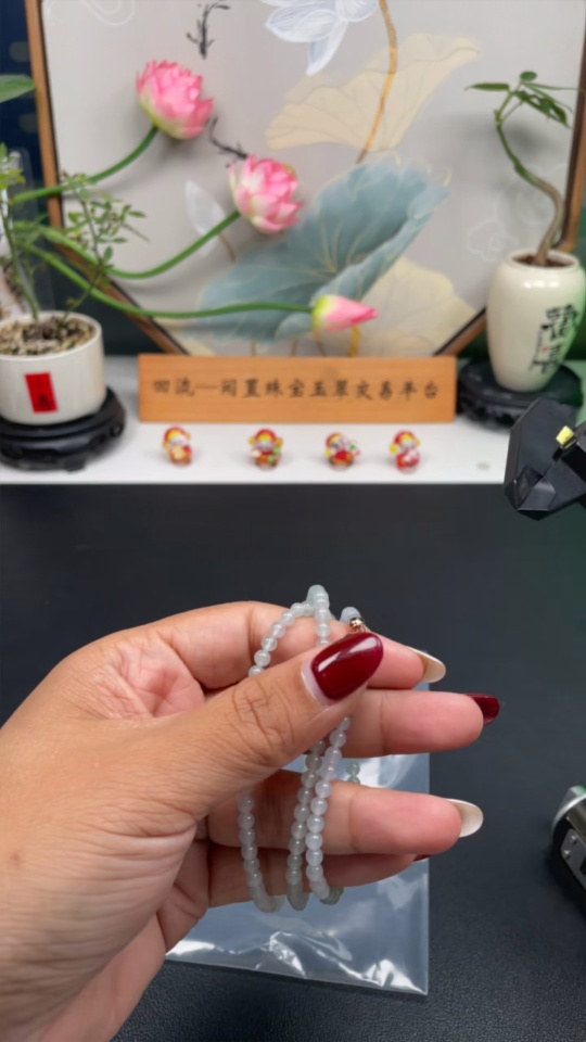 Jadeite Bead Necklace Approx. 4mm Total Weight Approx. 18.2g (Non-gold Inlaid)