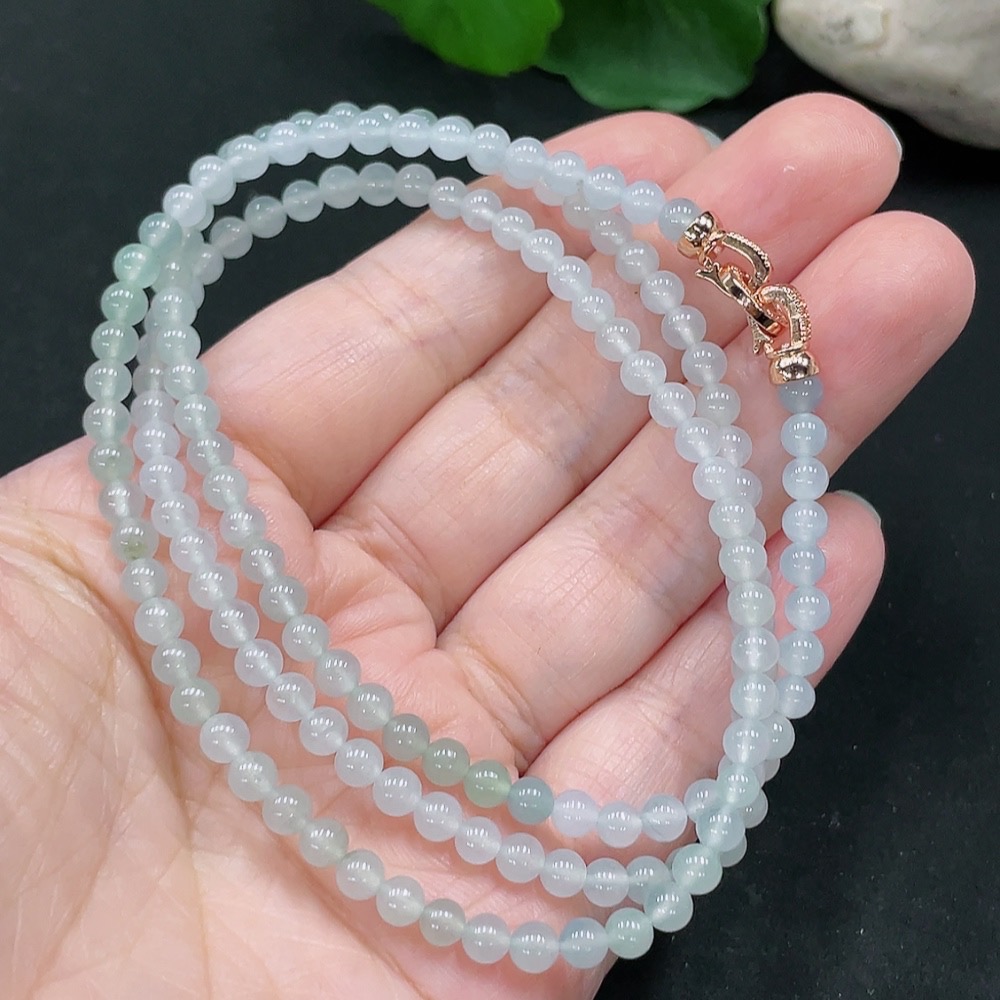 Jadeite Bead Necklace Approx. 4mm Total Weight Approx. 18.2g (Non-gold Inlaid)
