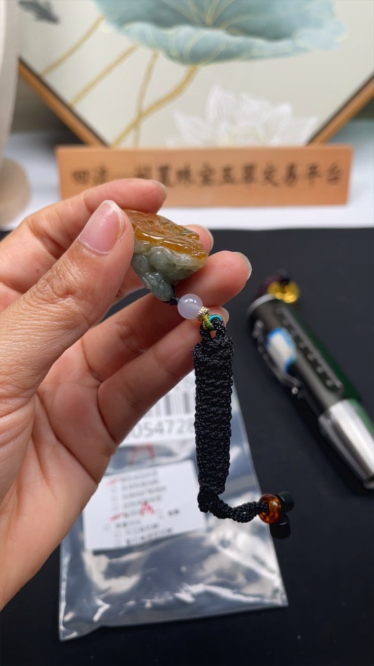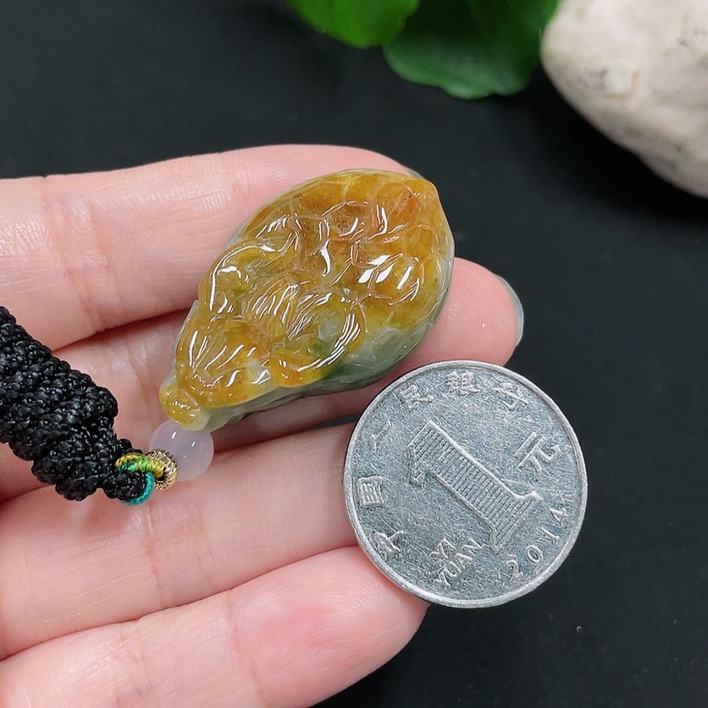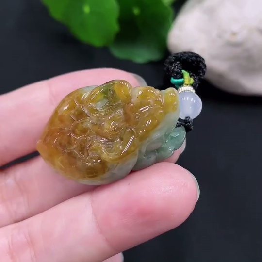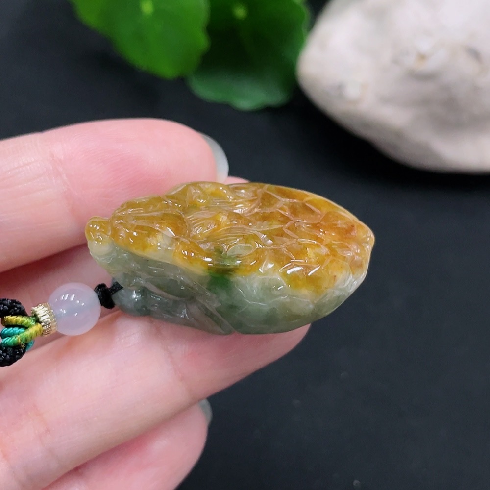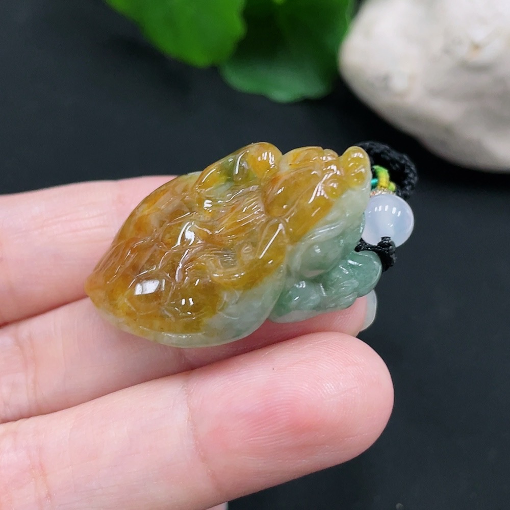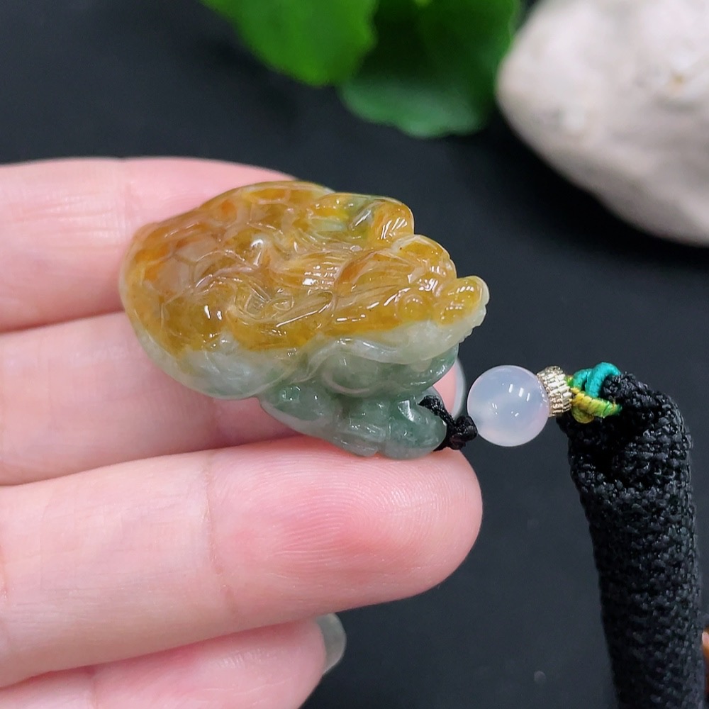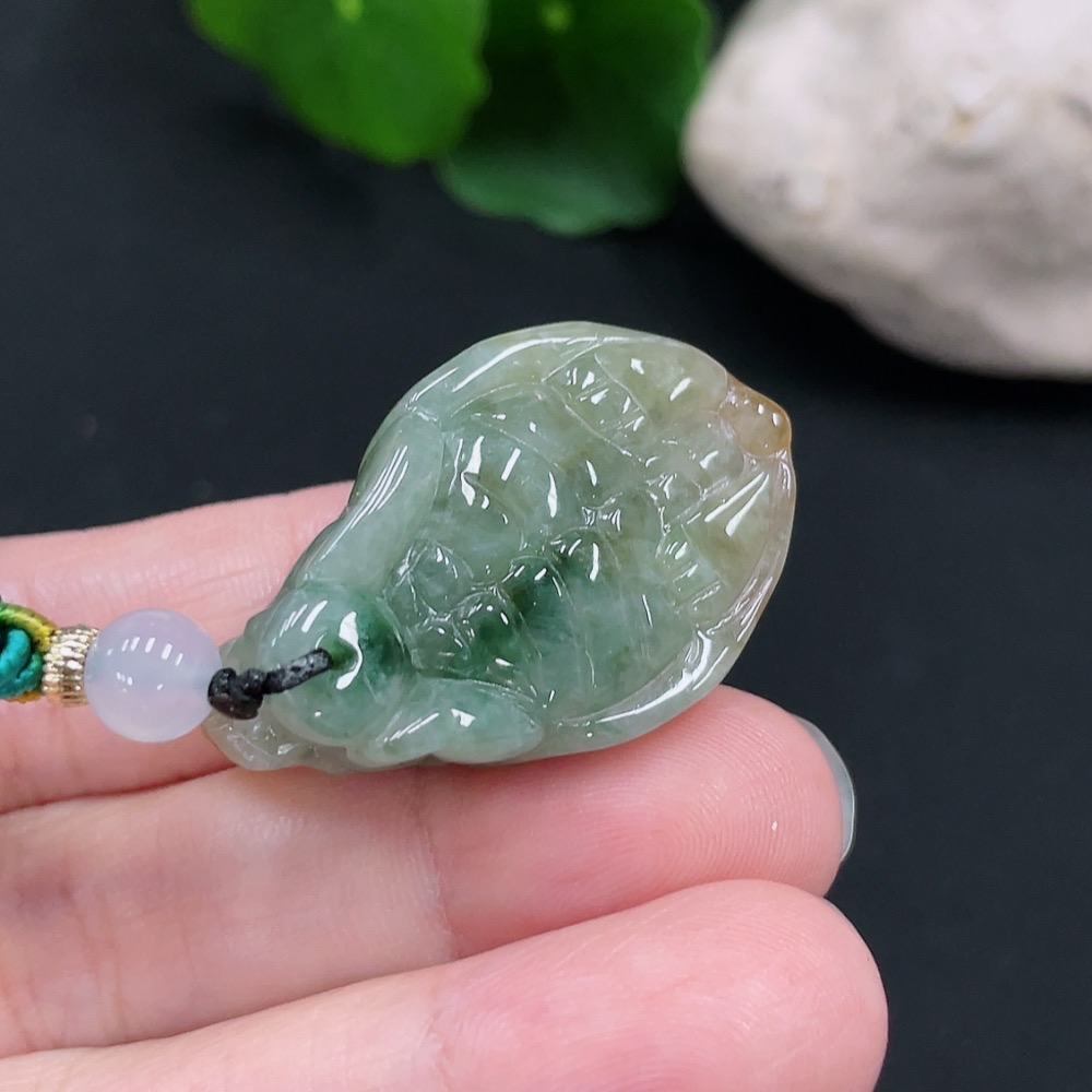 JadeiteDragon Turtle Pendant Total Weight Approx. 16.8g (Color Origin Undetermined) (Matching Beads Non-Grade A) (Including String Weight)