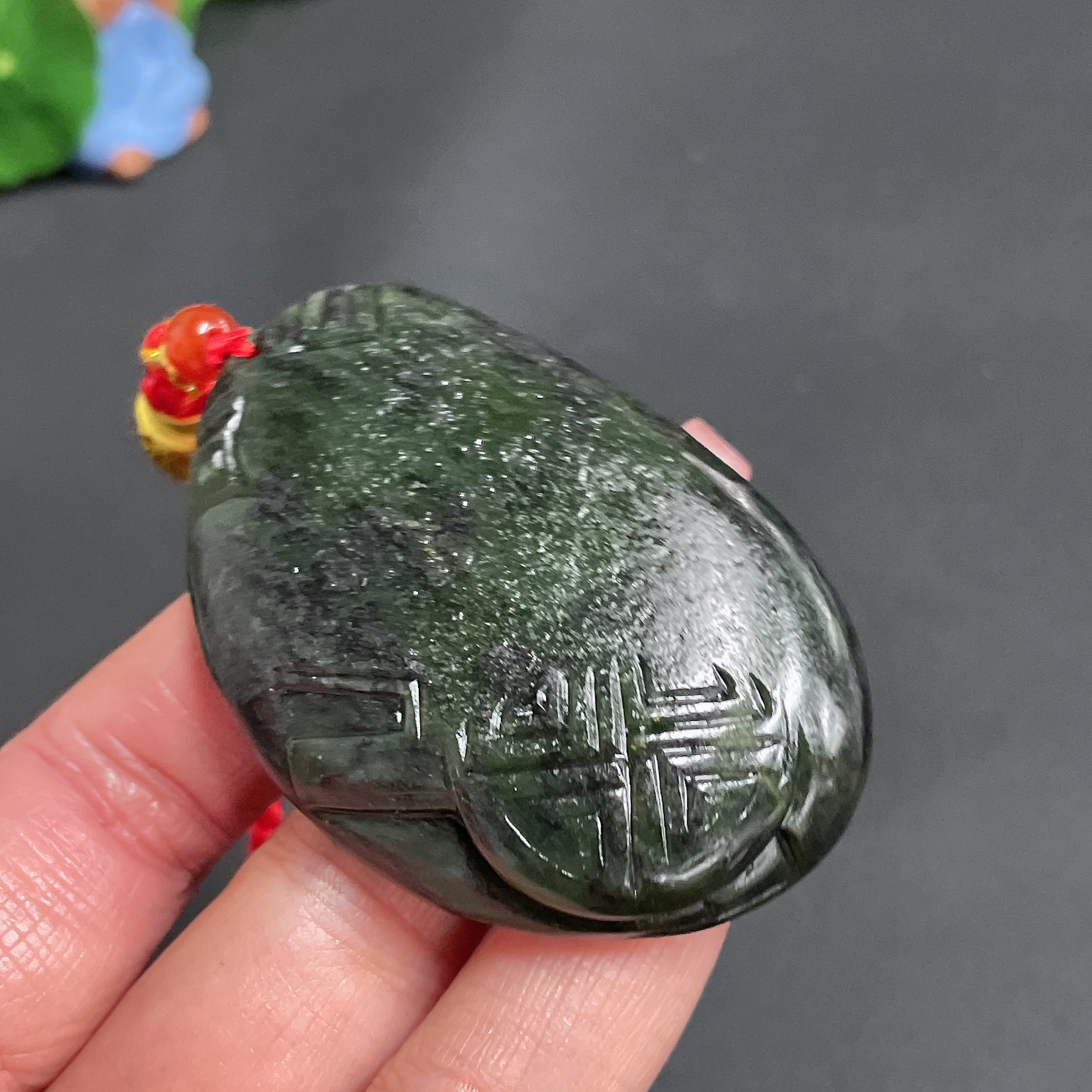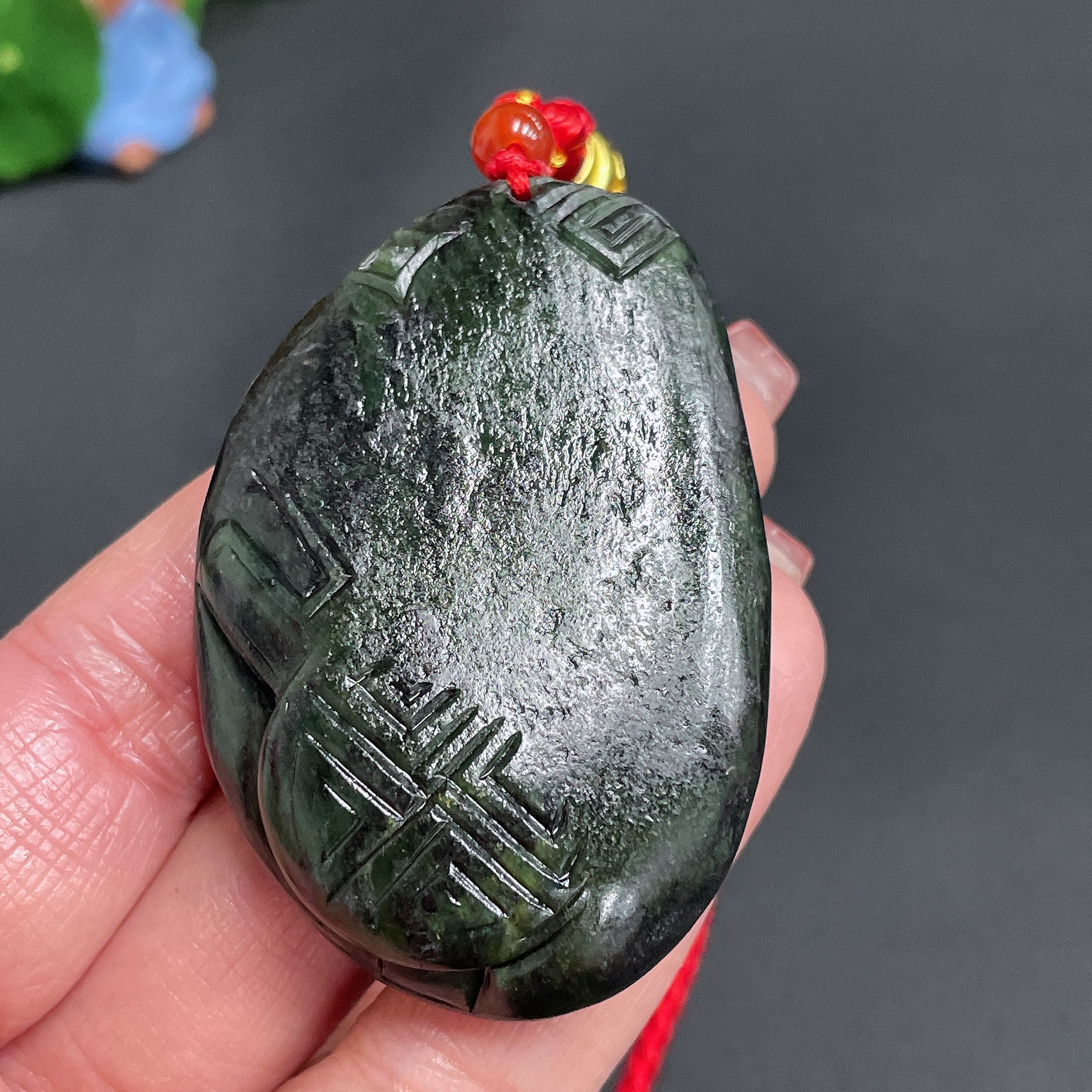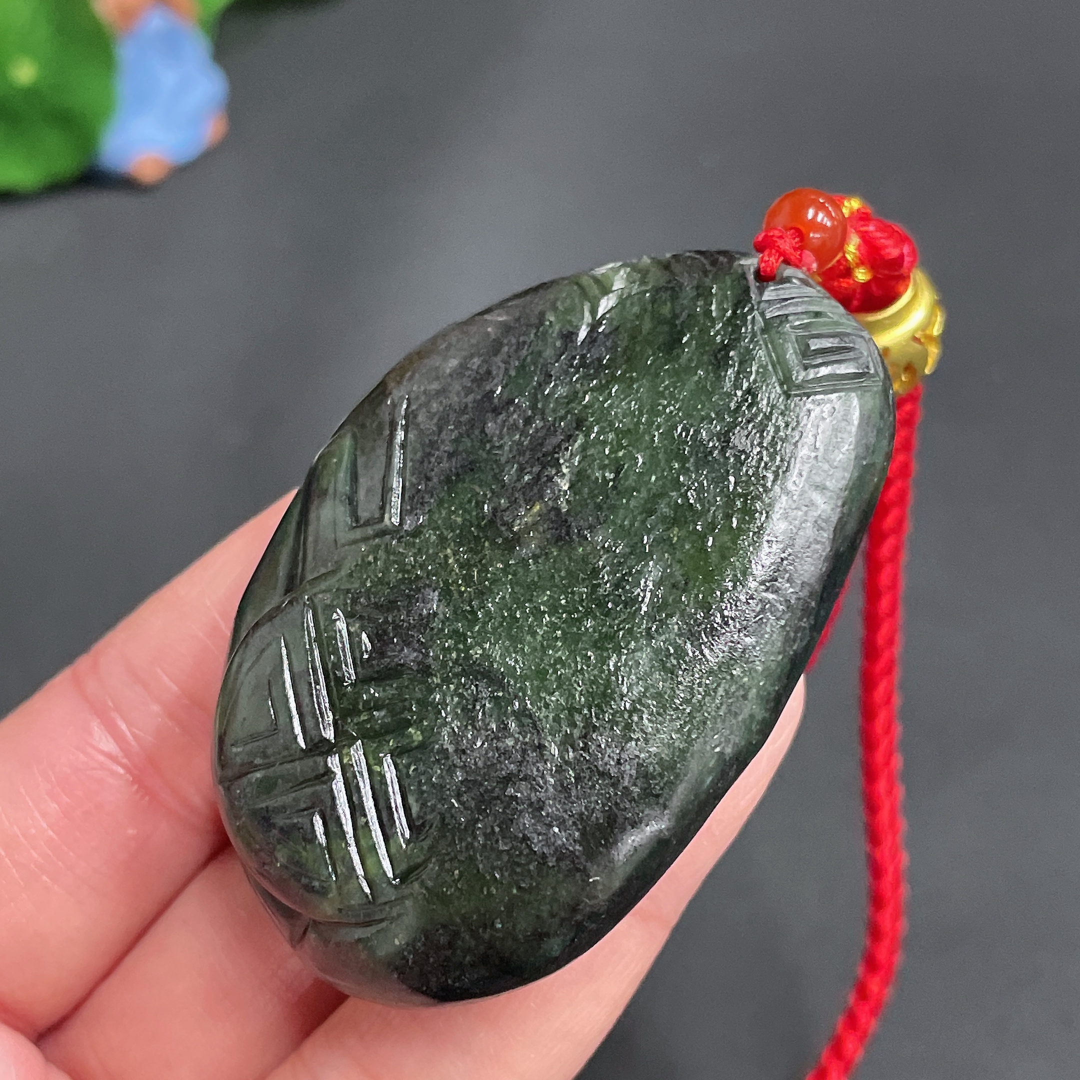 Hetian Jade Handheld Carving, Antique Style, Total Weight Approx. [Including Rope] 51.5g, Beads Not Hetian Jade