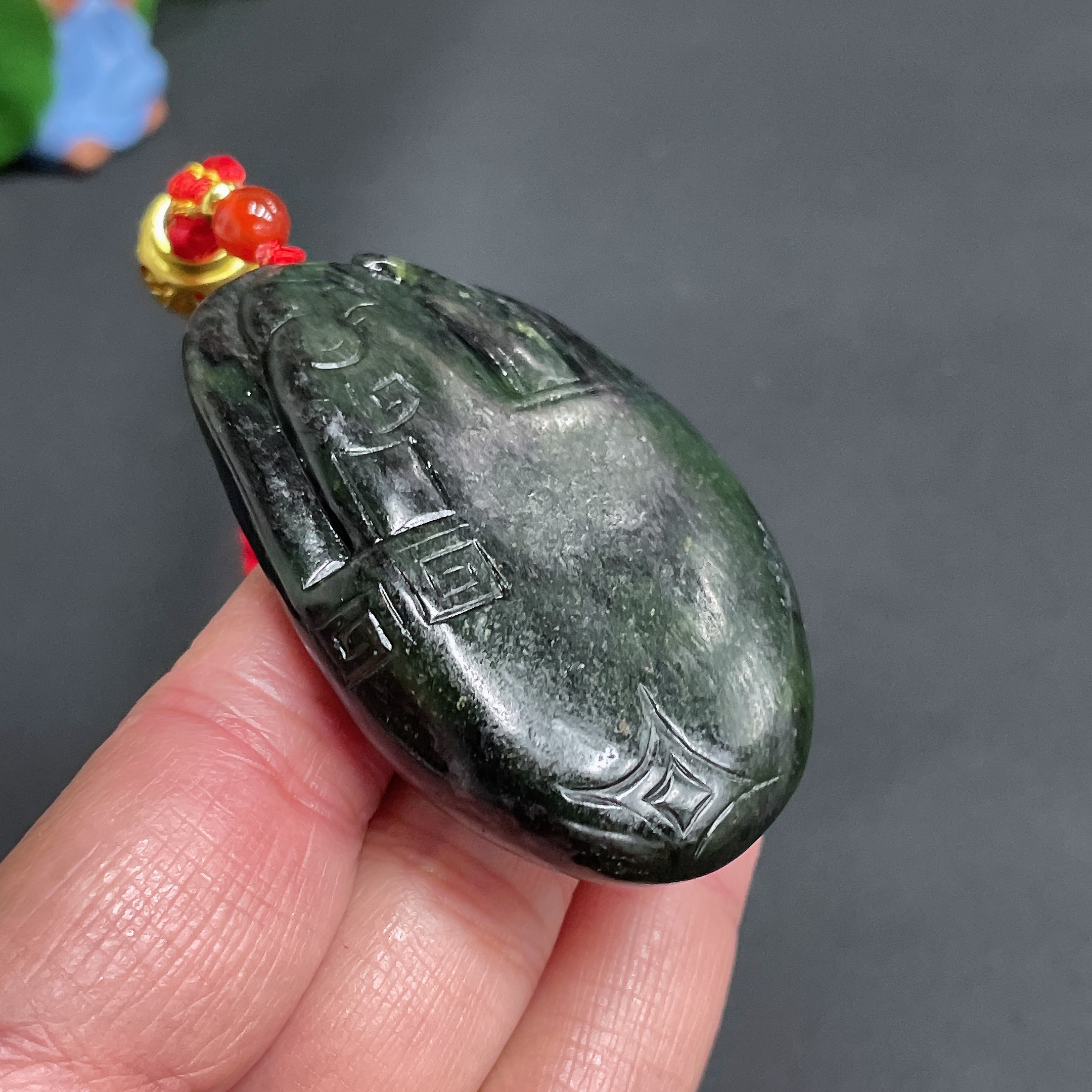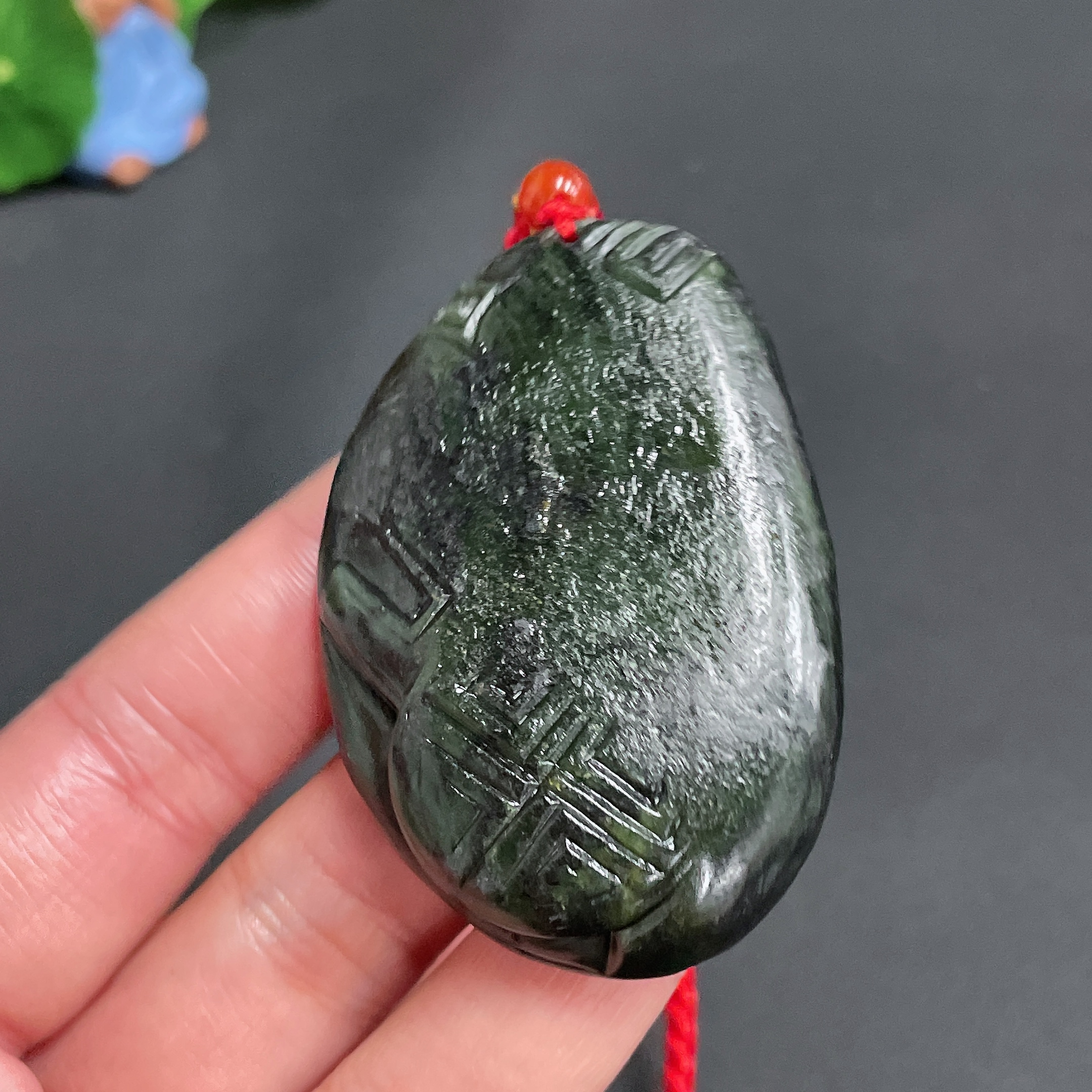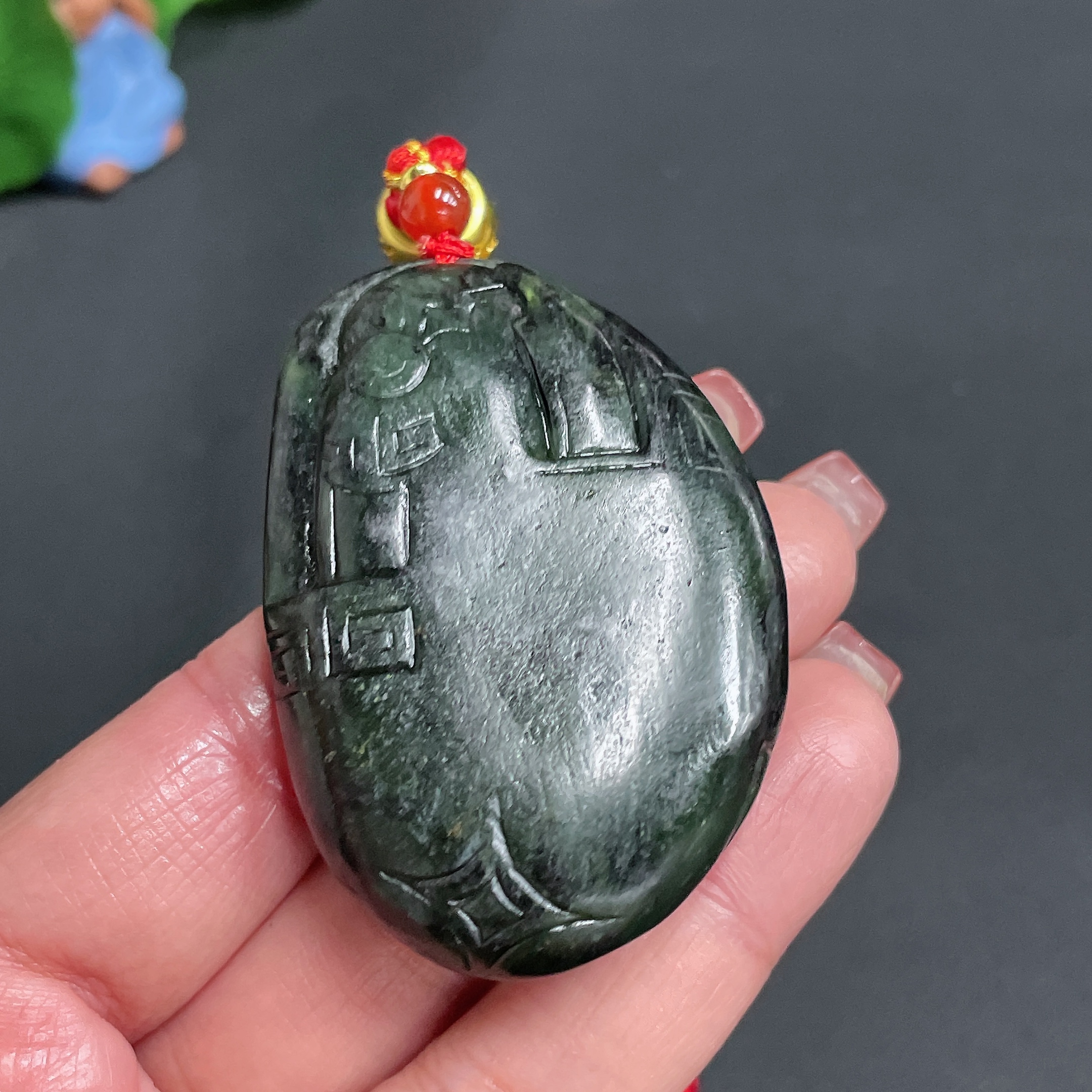 Hetian Jade Handheld Carving, Antique Style, Total Weight Approx. [Including Rope] 51.5g, Beads Not Hetian Jade
