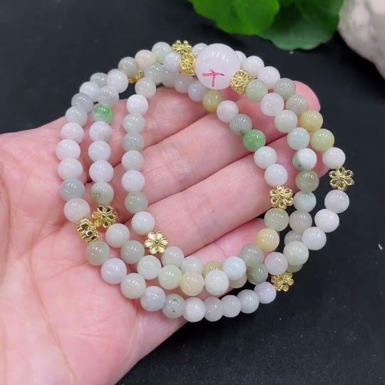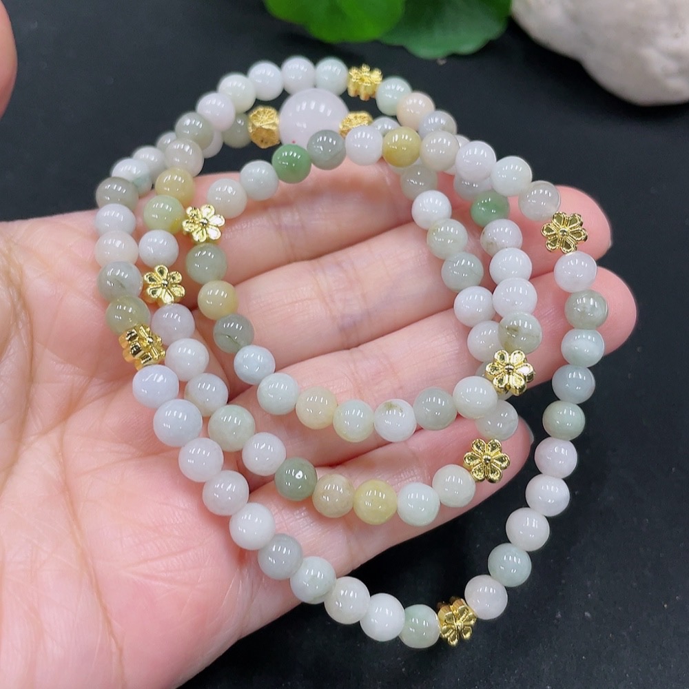 Jadeite Bracelet Total Weight Approx.35g (Beads Not Grade A) (Non-gold Inlaid)