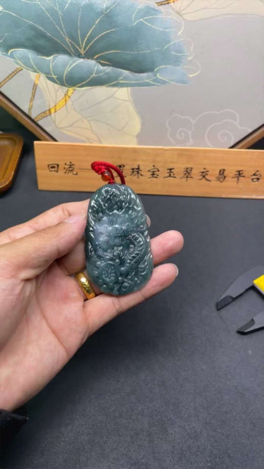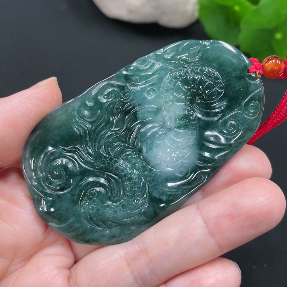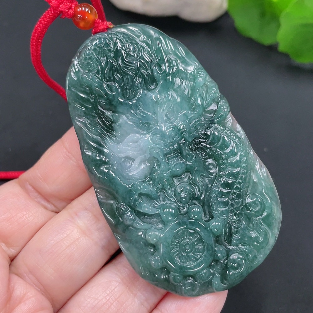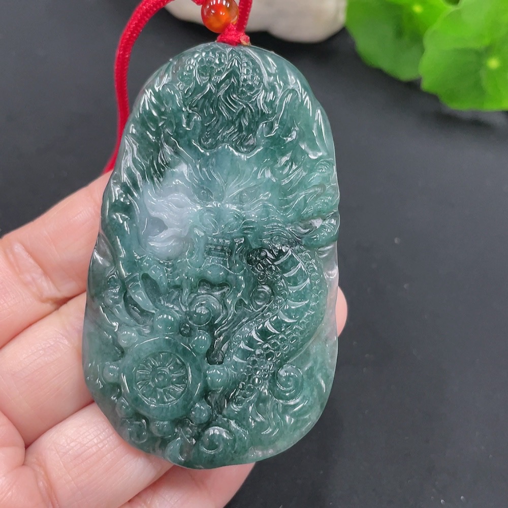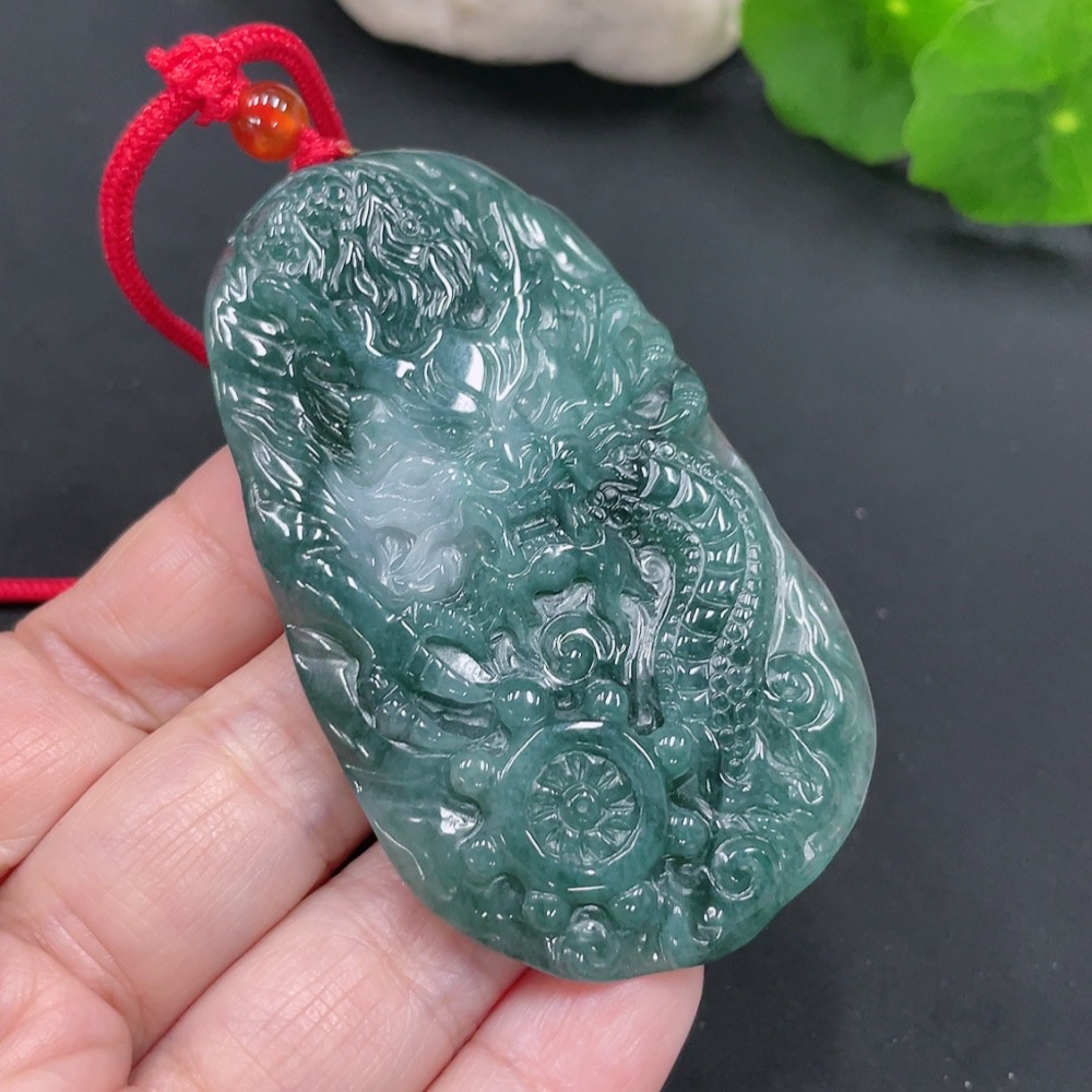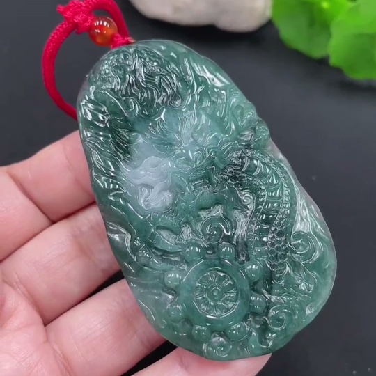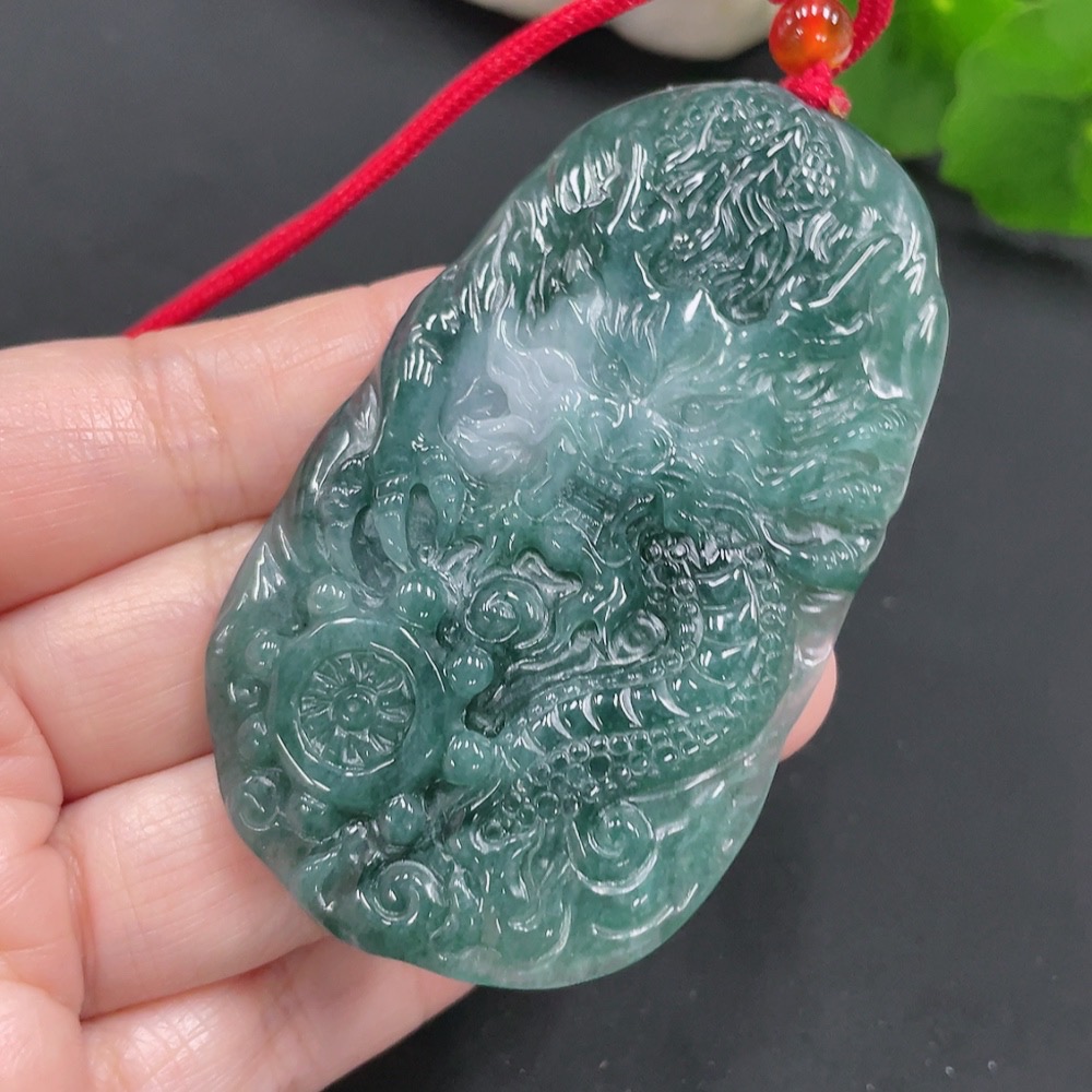 Jadeite Dragon Pendant Total Weight Approx. 39g (Including Rope Weight) (Matching Beads Non-Grade A)