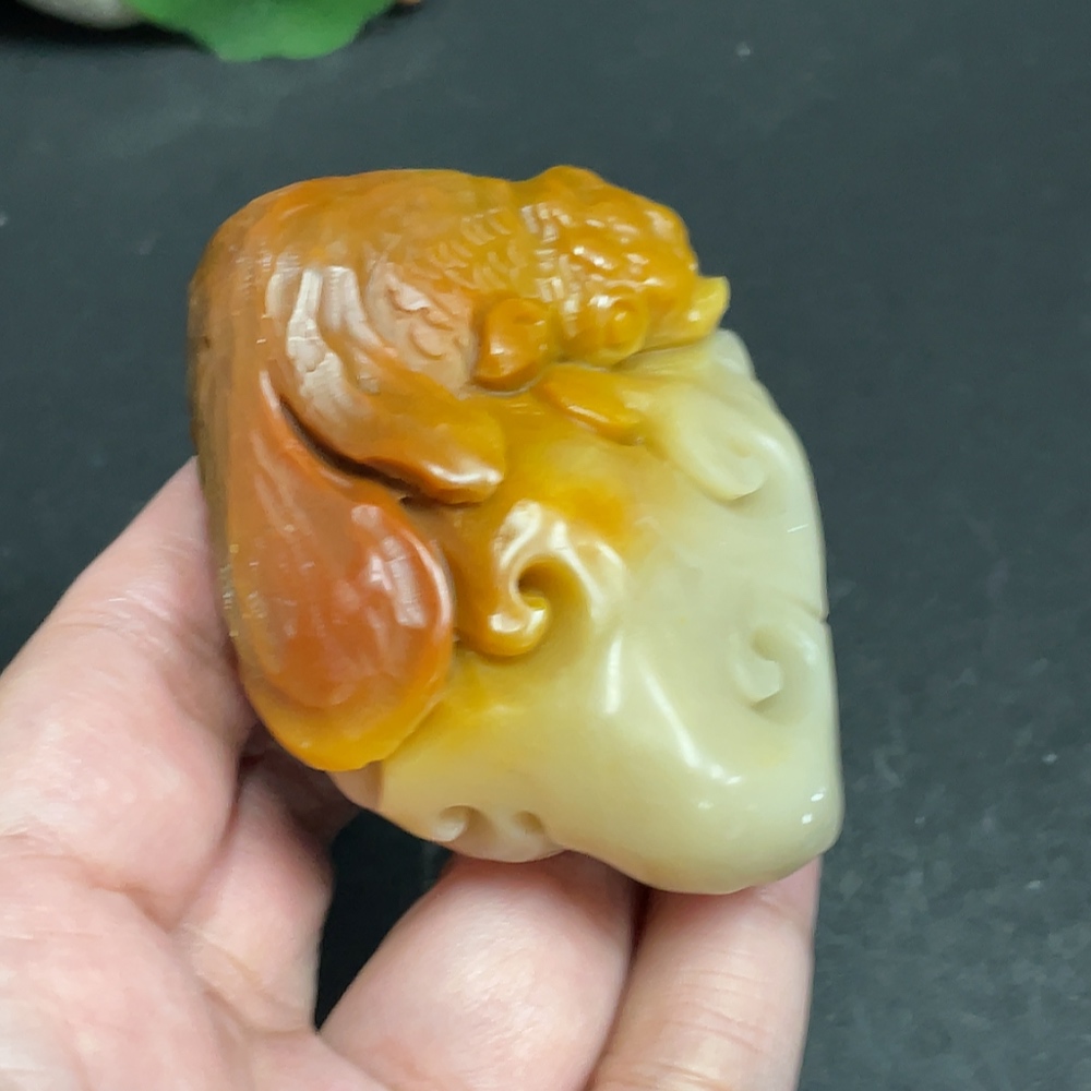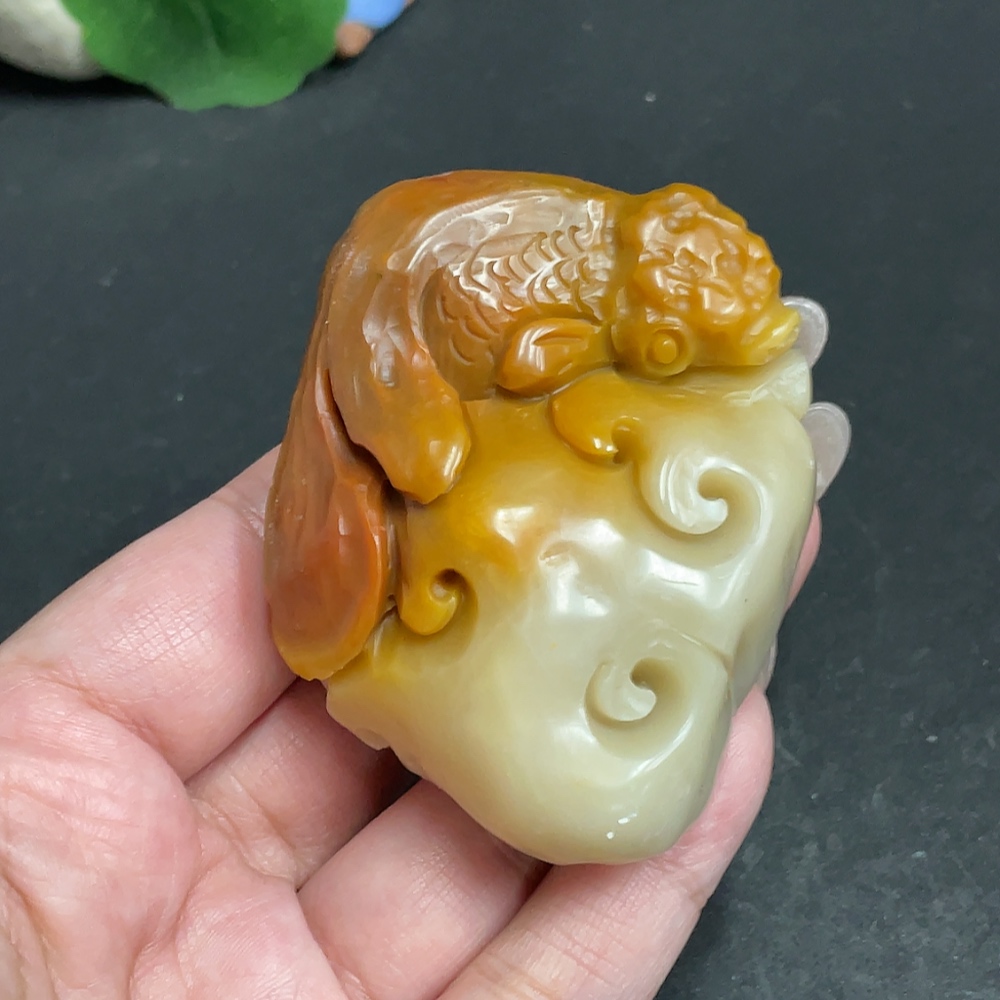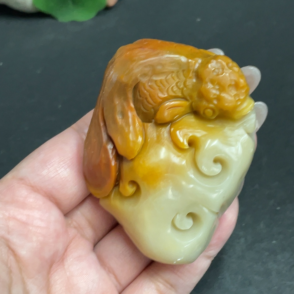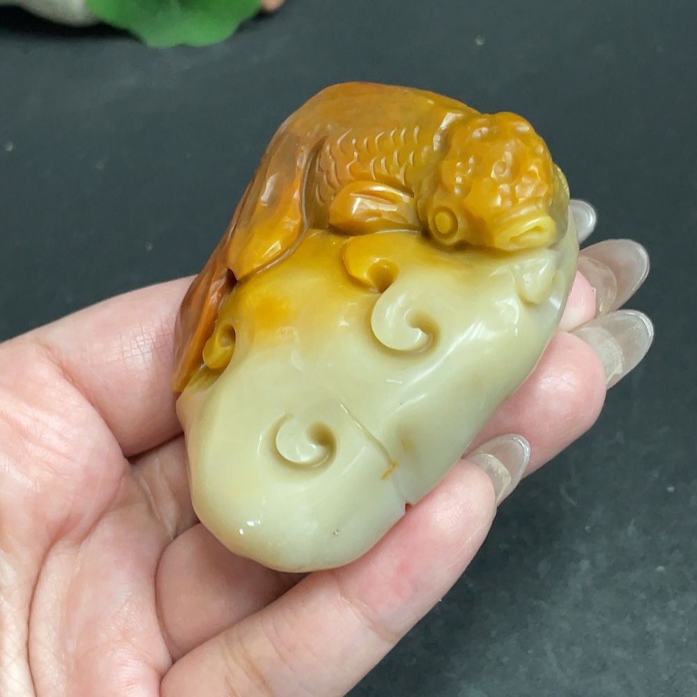 Shoushan Stone Handheld Carving "Abundance Every Year" Total Weight: Approx. 120.5g