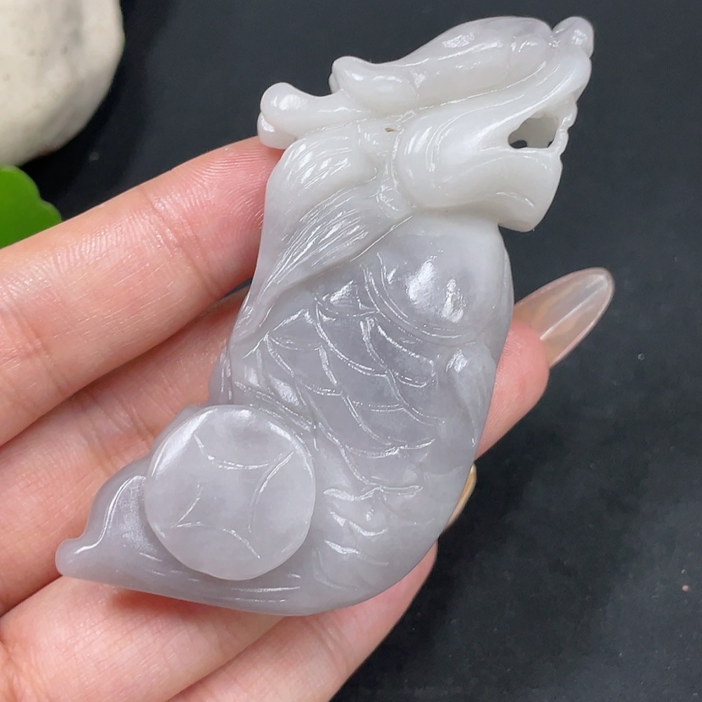 Hetian Jade Pendant Dragon Fish Total Weight: Approx. 54.3g