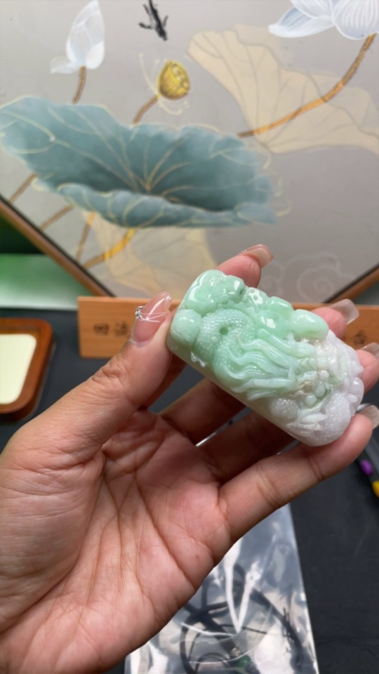 Jadeite Dragon Pendant with Cord, Total Weight Approx. 53g