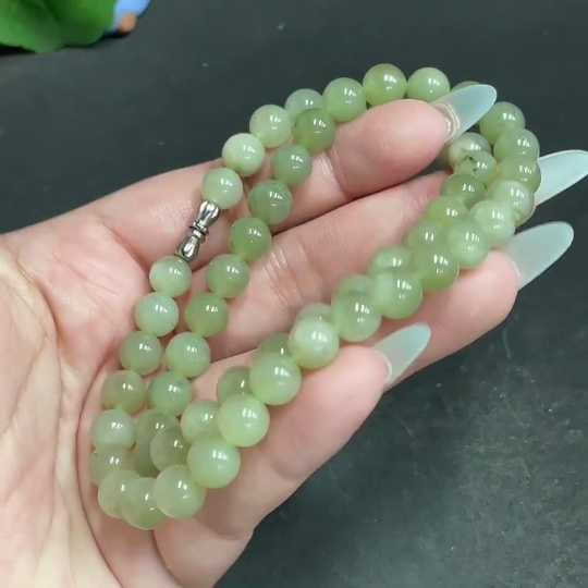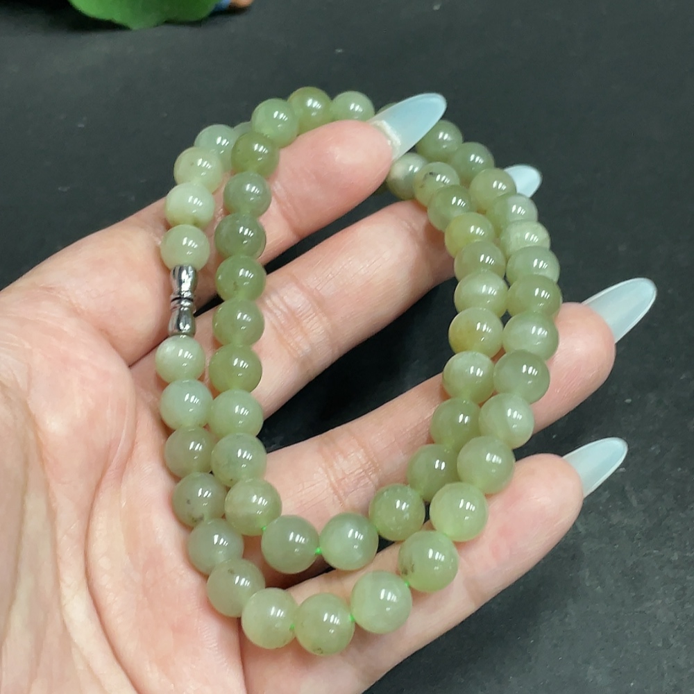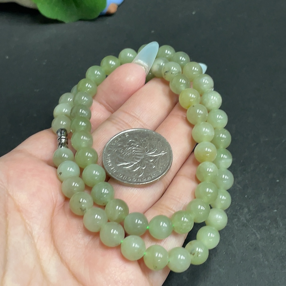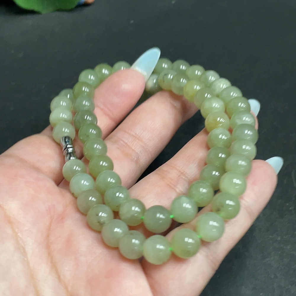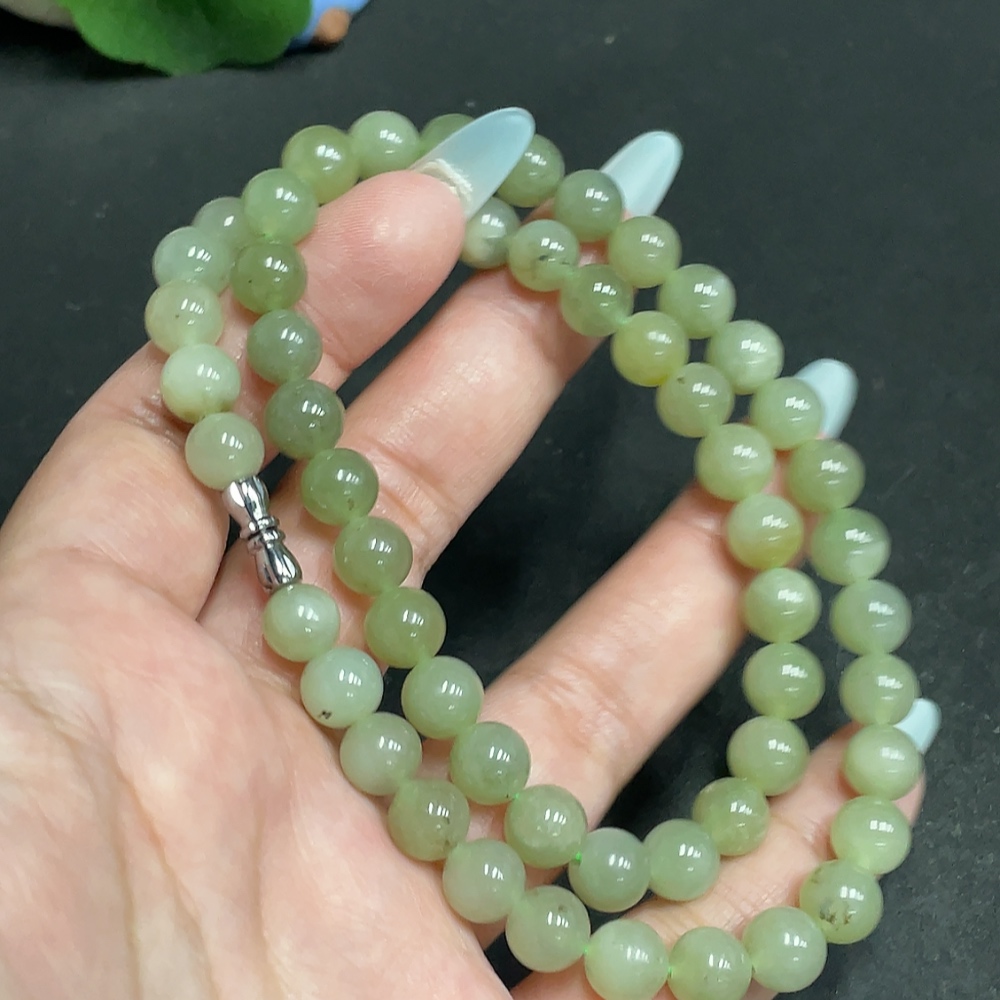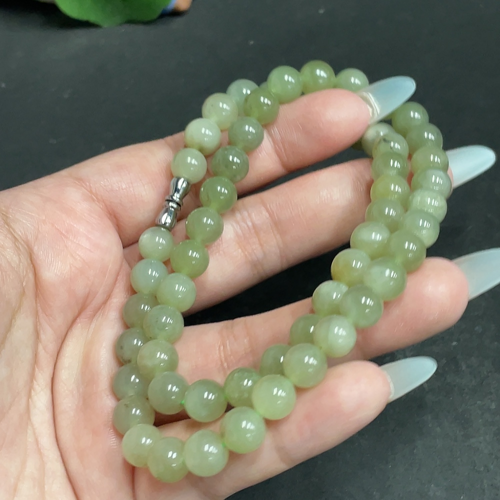 Hetian Jade Bead Necklace, Approx. 7.8mm, Total Weight Approx. 45.1g